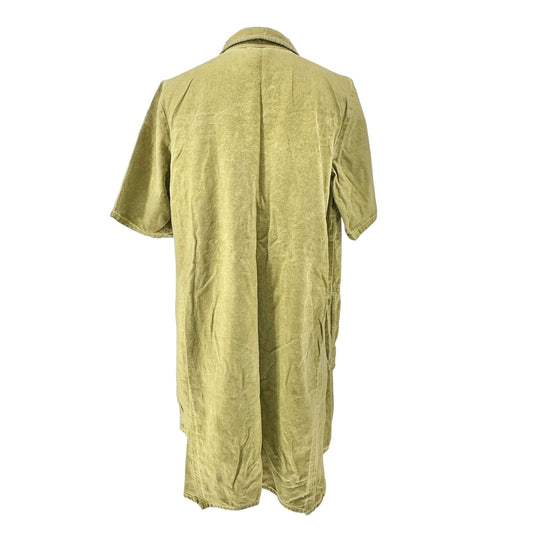 Lori Goldstein LOGO Shirt Dress Womens L Pea Green Button Front Short Sleeve