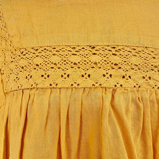 Cat & Jack Dress Girls 5T Crochet Detail Ruffle Hem Yellow Cotton Long Sleeves
