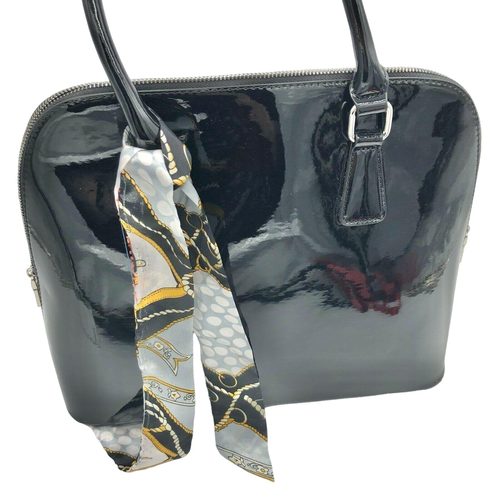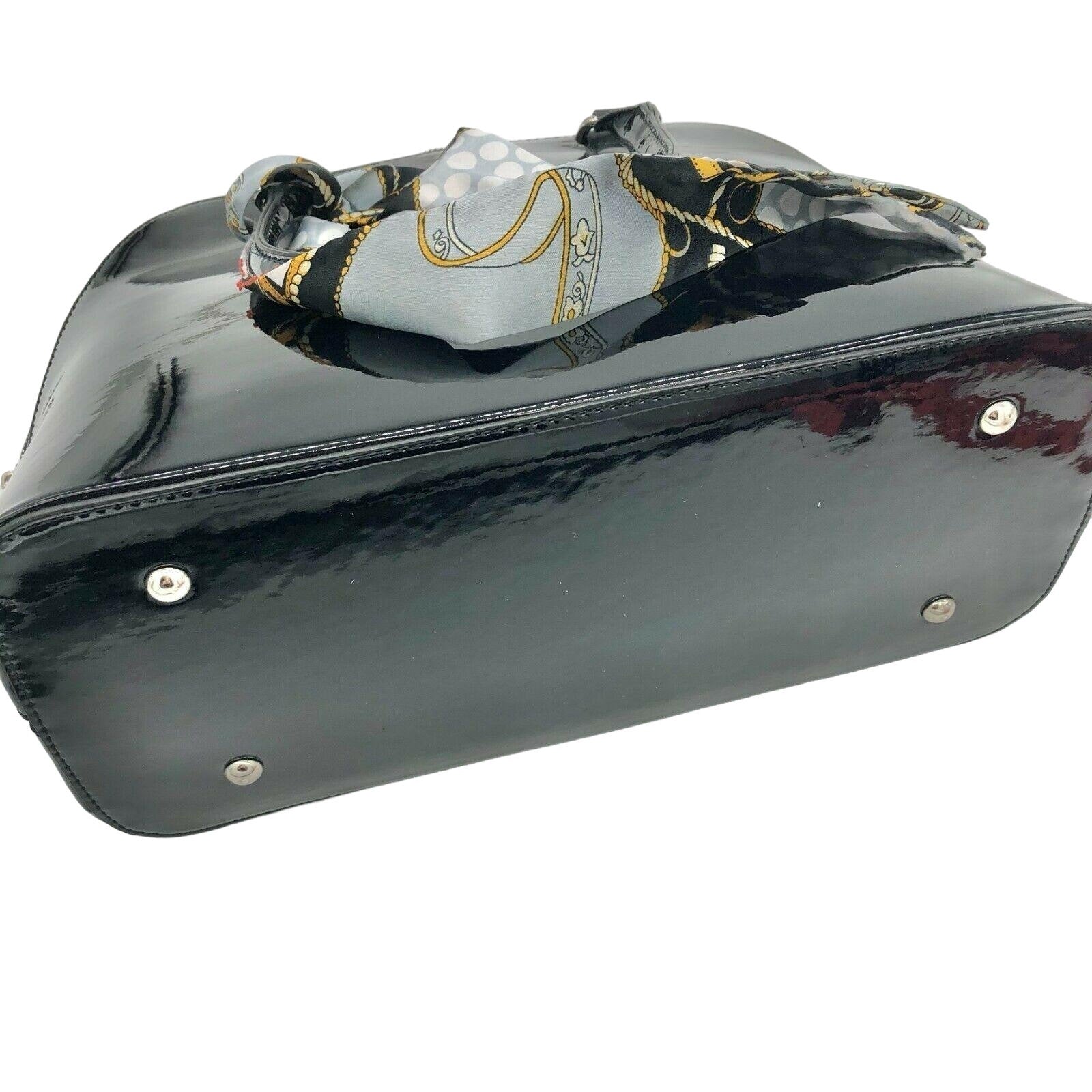 Adrienne Vittadini Dome Satchel Black Patent Isabella Collection Matching Scarf