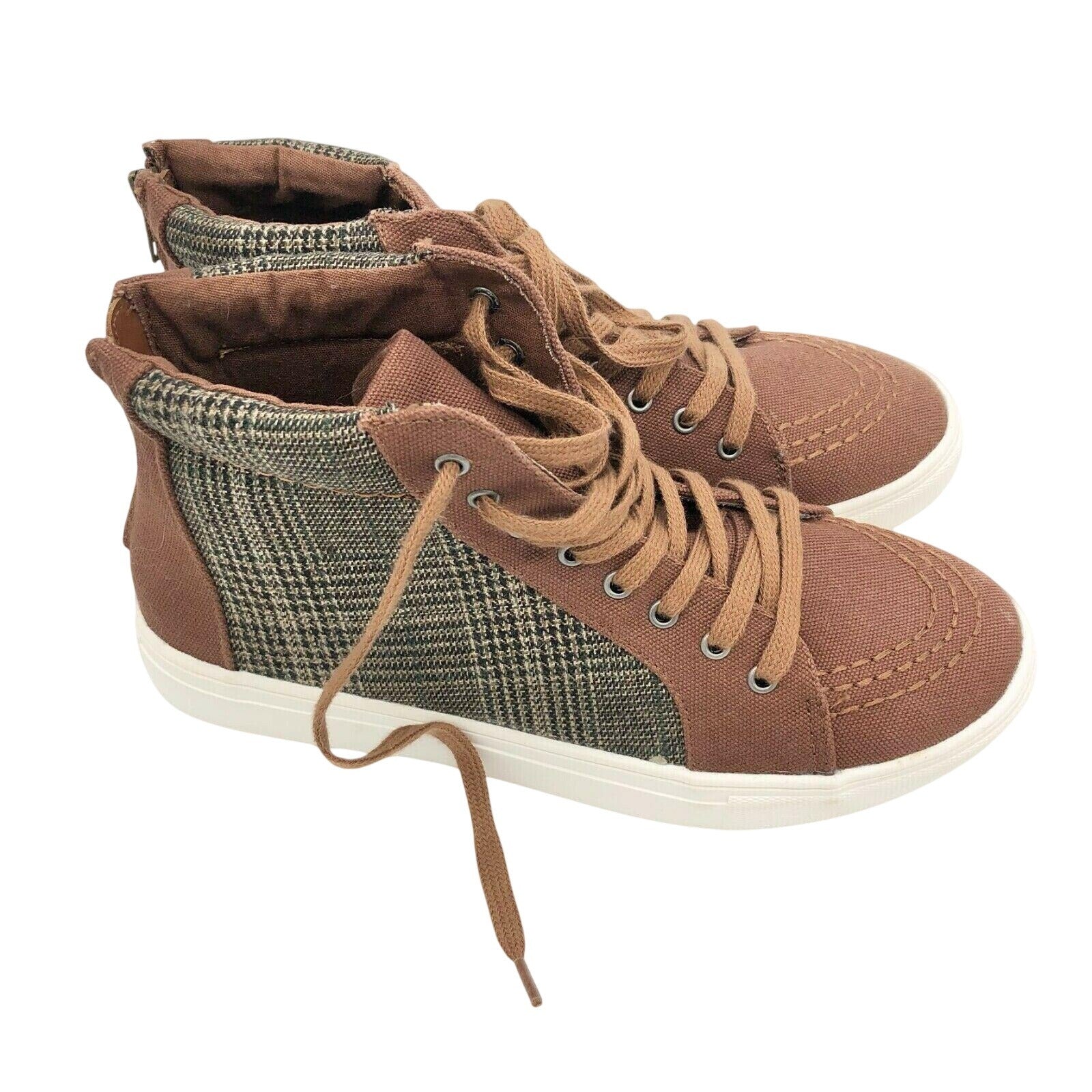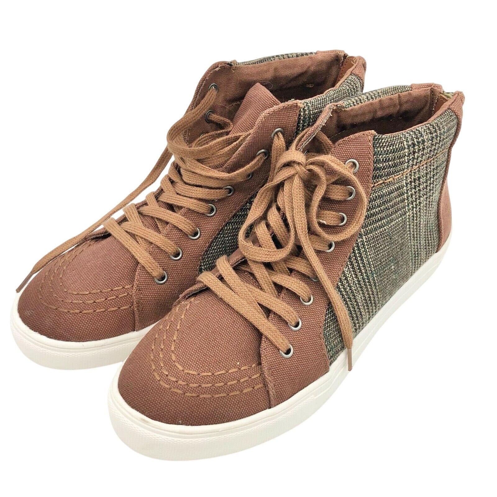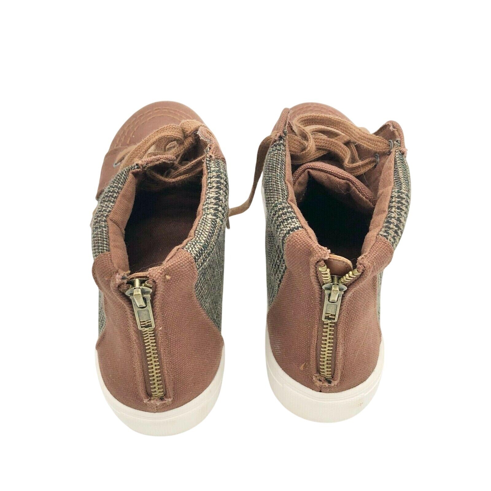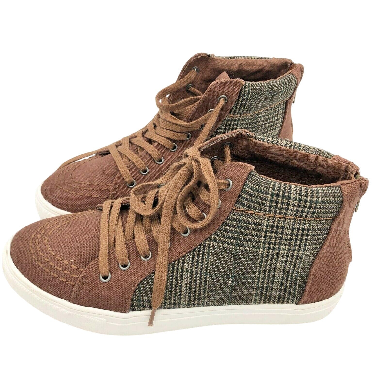 American Eagle Brown Plaid Hi Top Sneakers Womens 10 Zip Back Tie Front