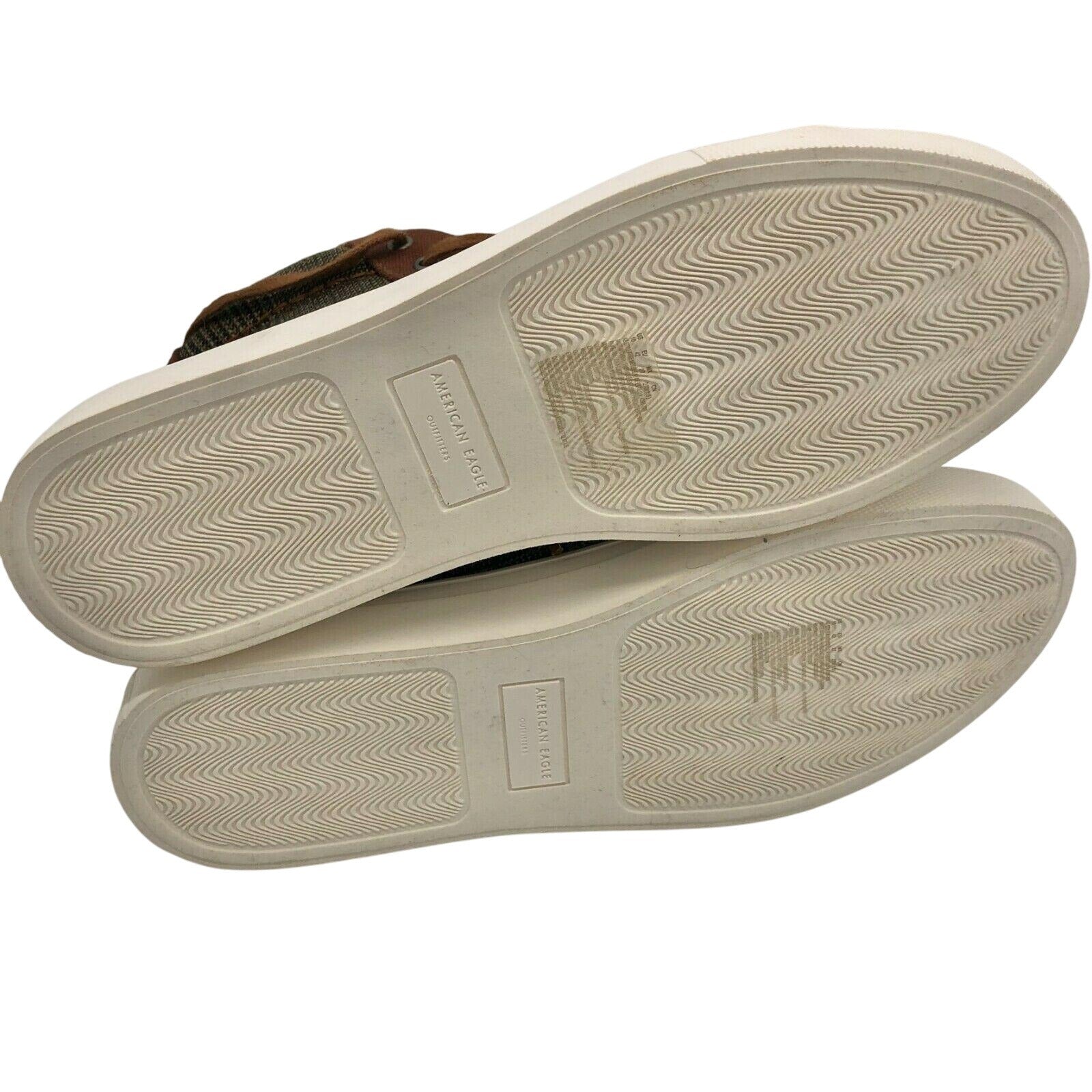 No need for boring shoes when these American Eagle brown and plaid high top size 10 sneakers are available! They even have zip back for easy on and off!