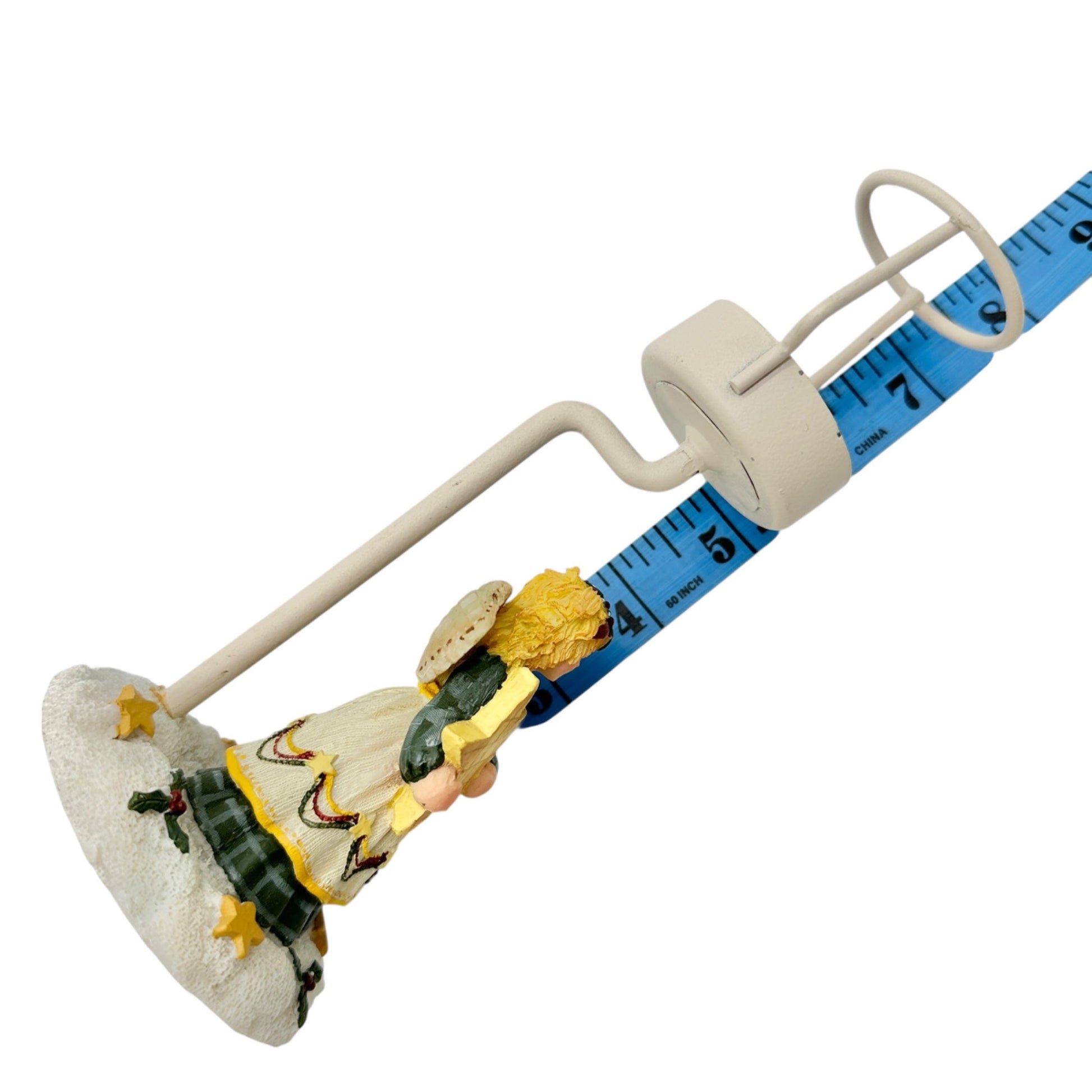 This charming angel lamp casts a warm glow, inviting a serene holiday spirit. Crafted with intricate details, the angel holds a star, surrounded by festive accents. A glittered lampshade adds a luminous touch, perfect for adorning a cozy corner or mantel. Its petite size makes it a delicate addition to seasonal decor.