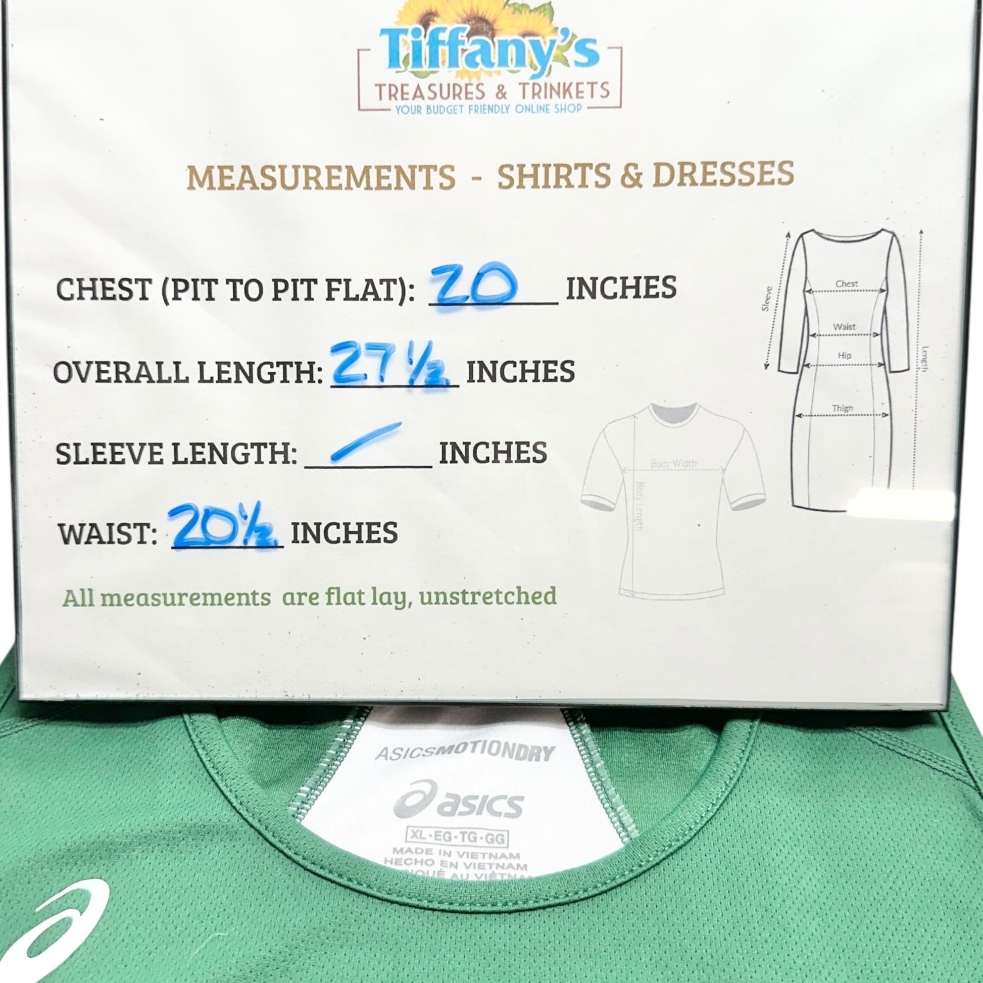 Chest (pit to pit flat) = 20 inches