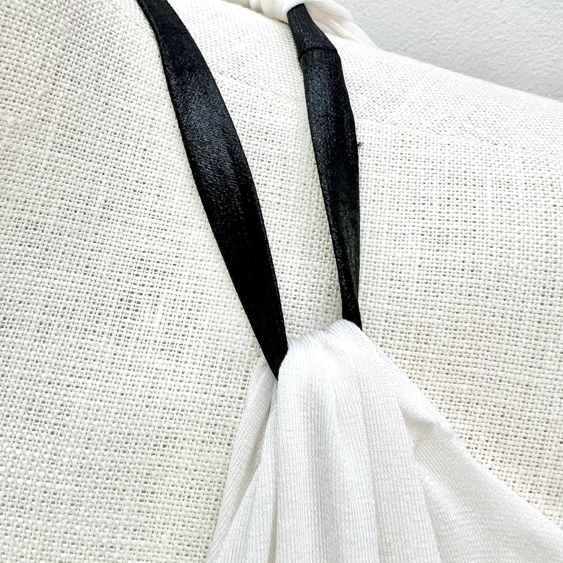 BCBGMaxazria Women's Saige Wrap Dress 0 Off White Black Trim Above Knee