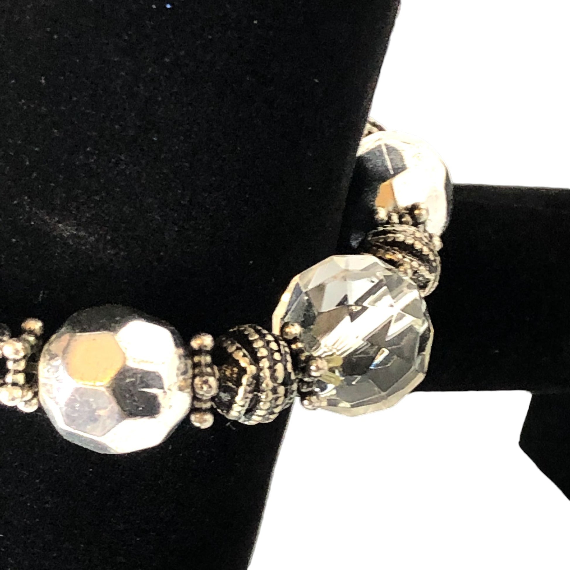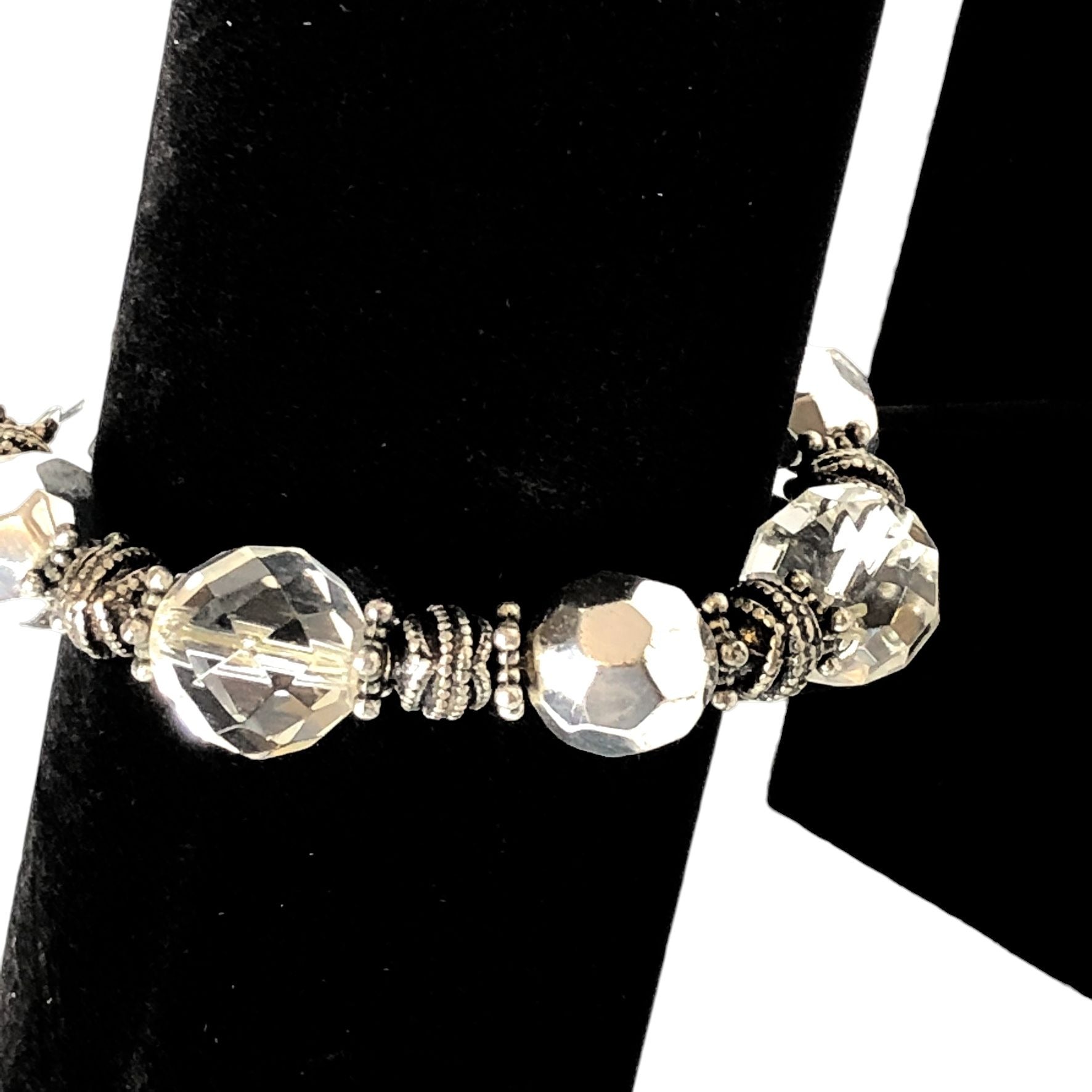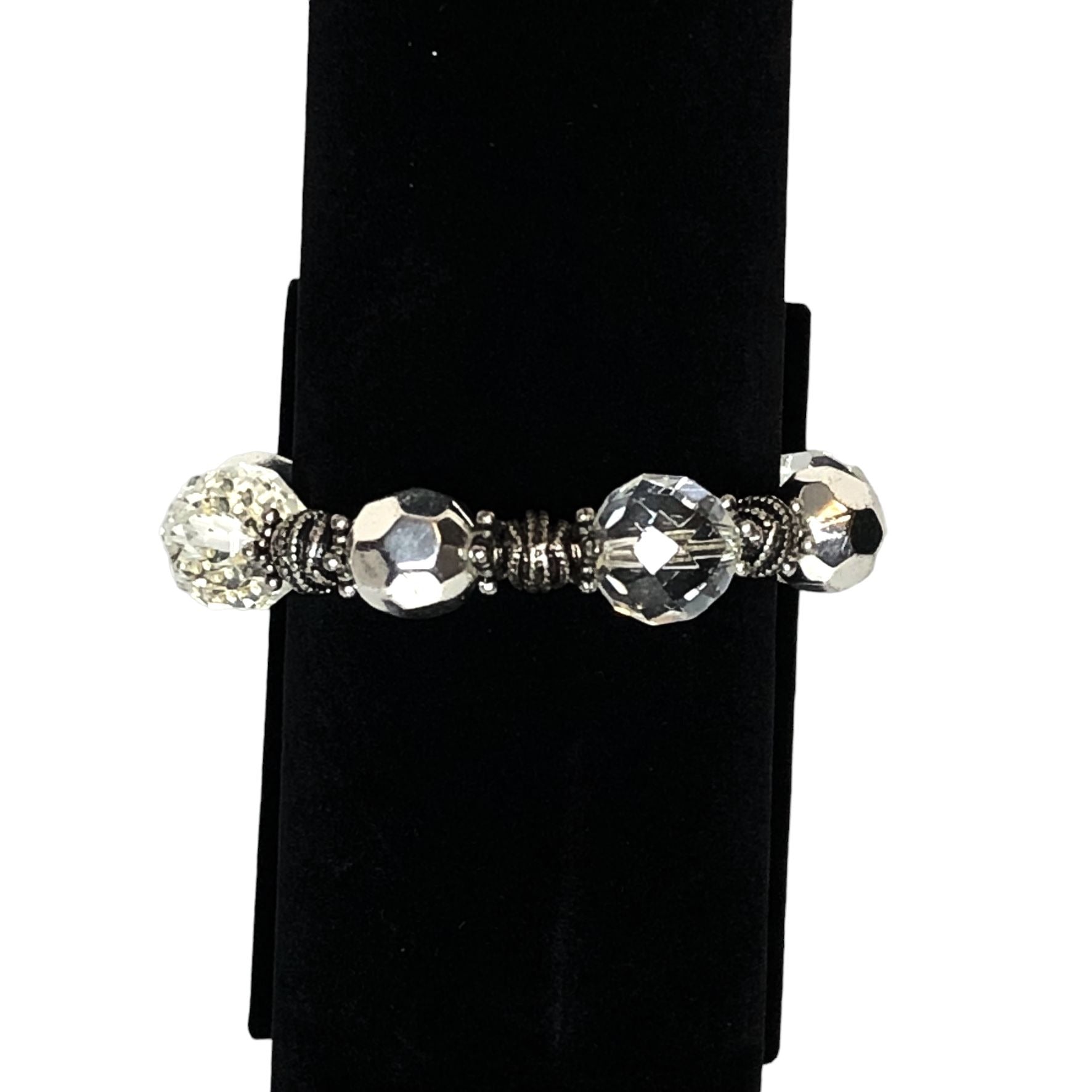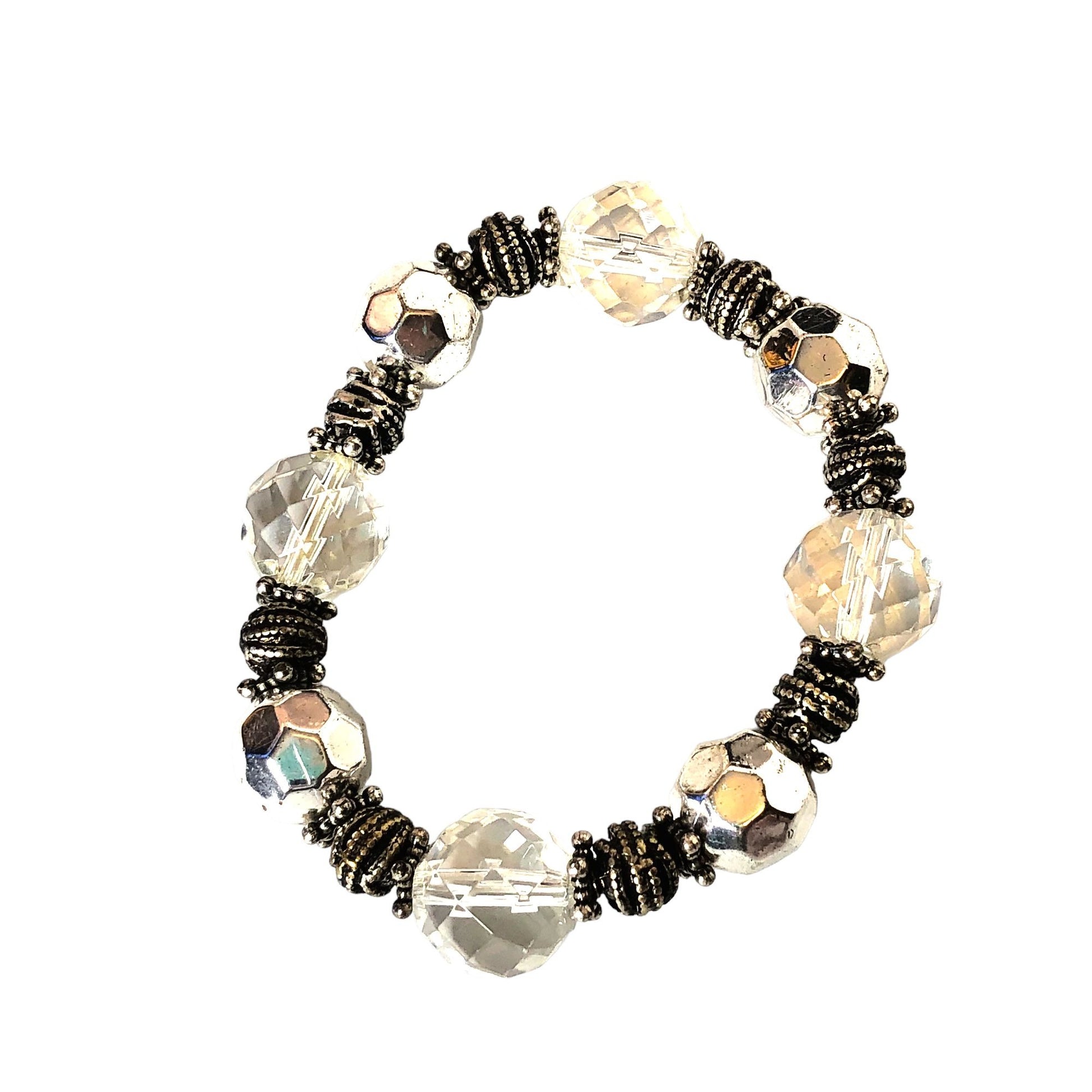 Beaded Stretch Bracelet Silver & Crystal Beads
