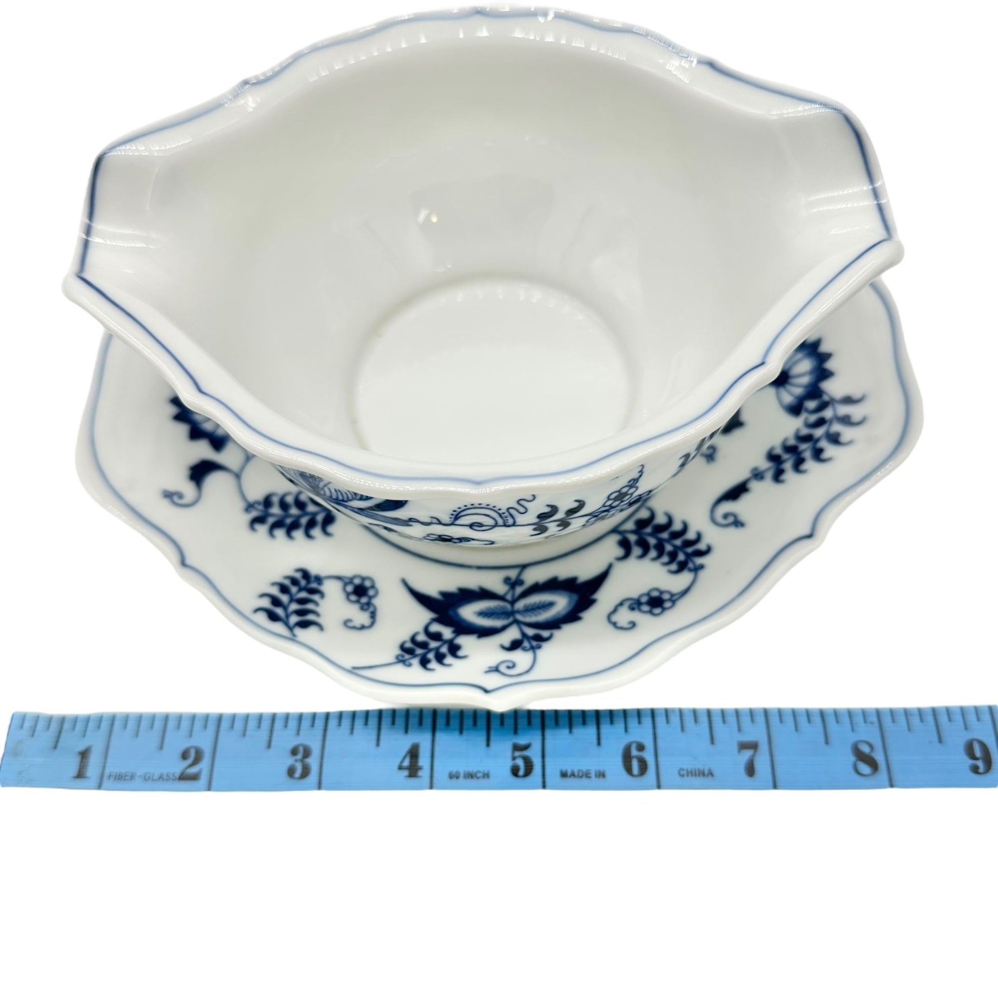 Blue Danube Double Spout Gravy Boat With Plate White Blue Floral Porcelain Vtg