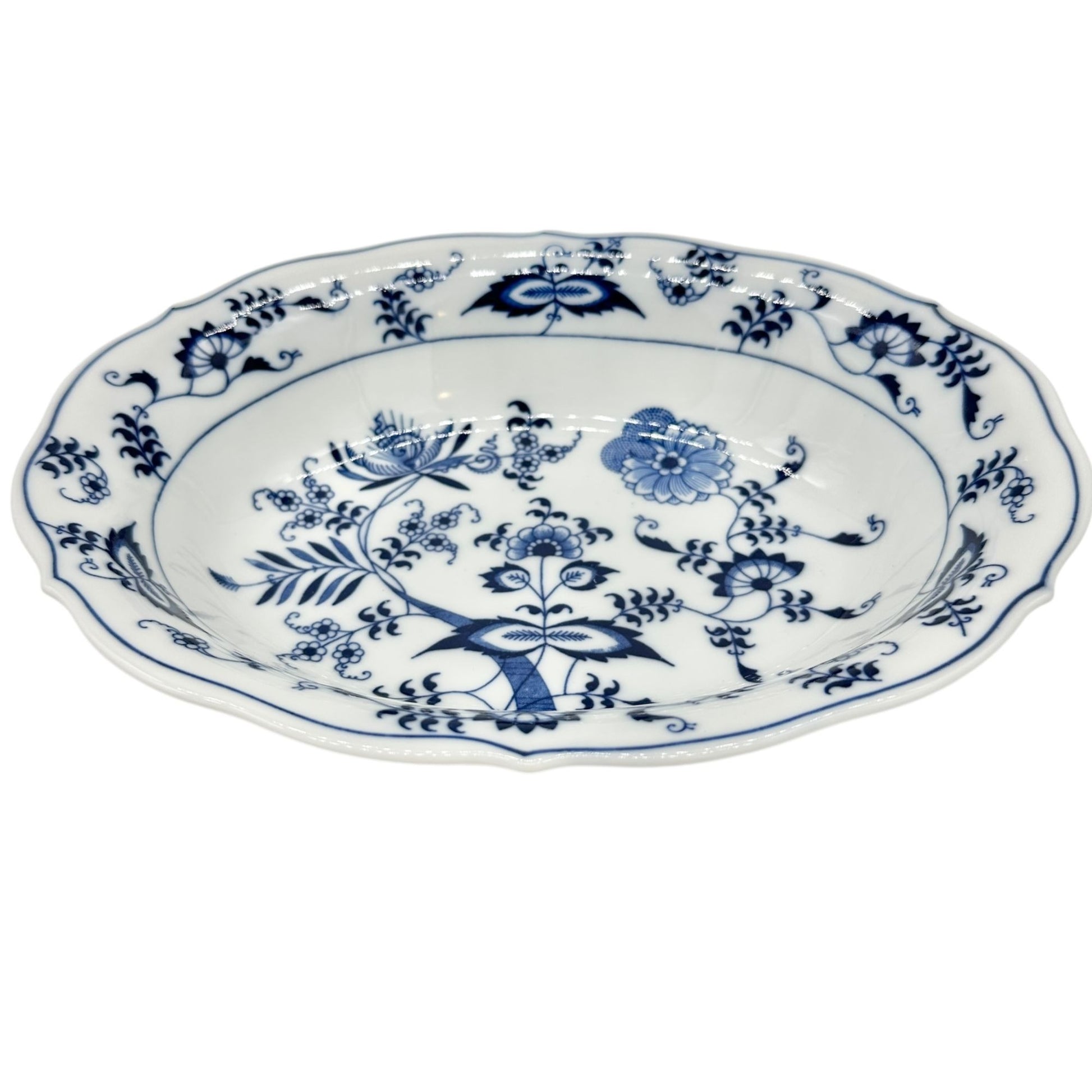 Blue Danube Oval Serving Bowl Floral Pattern Porcelain Scalloped Edge White Blue