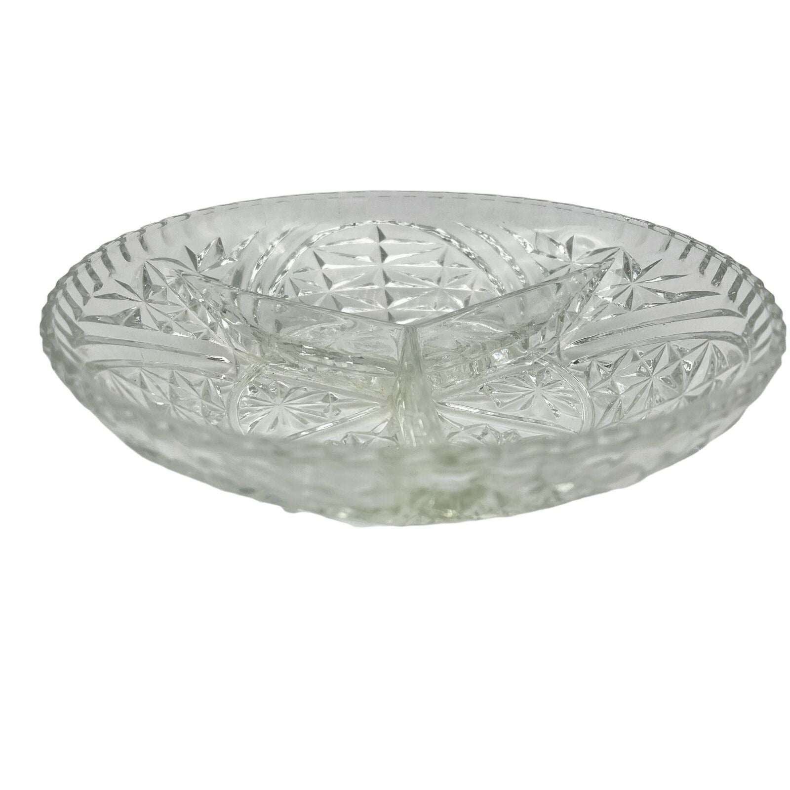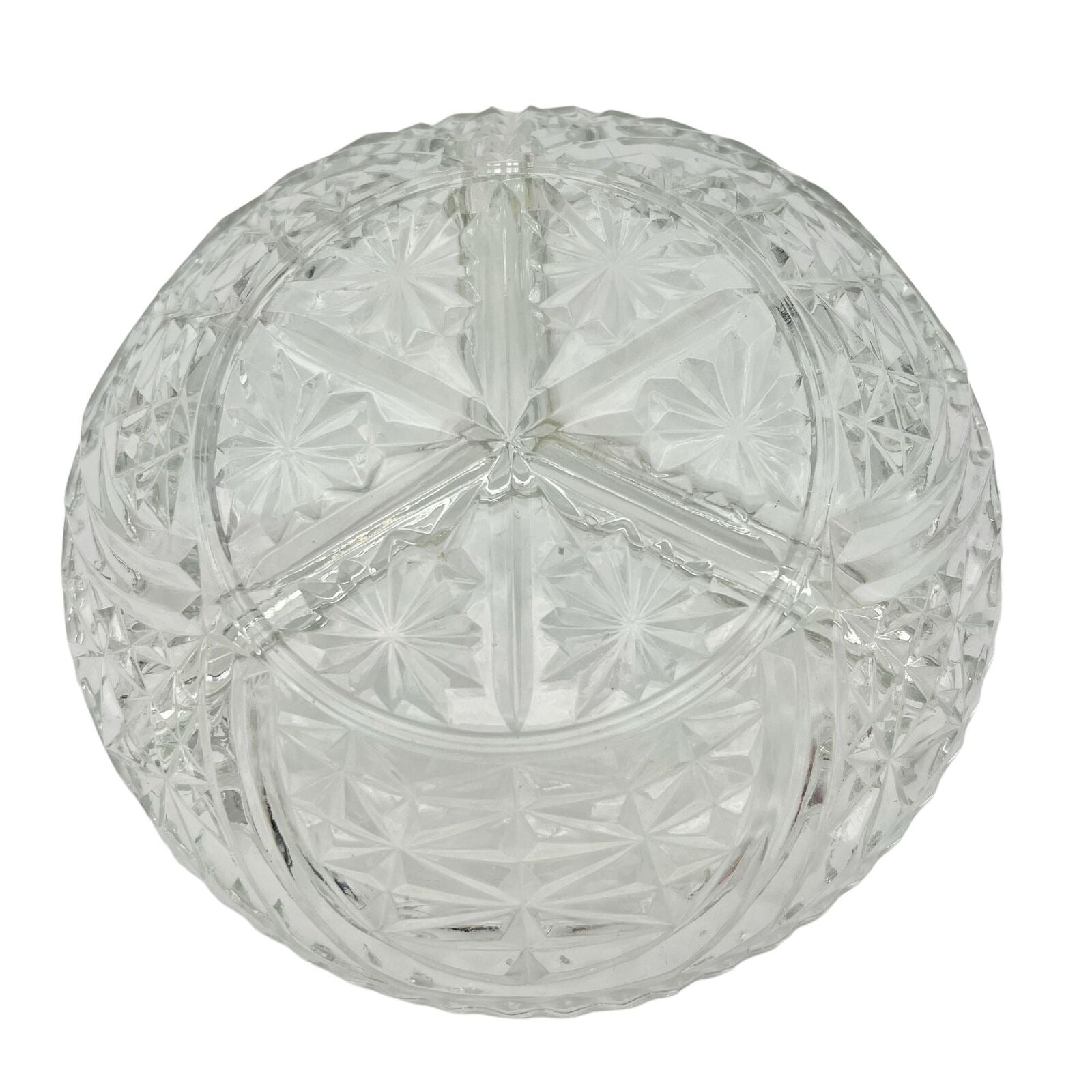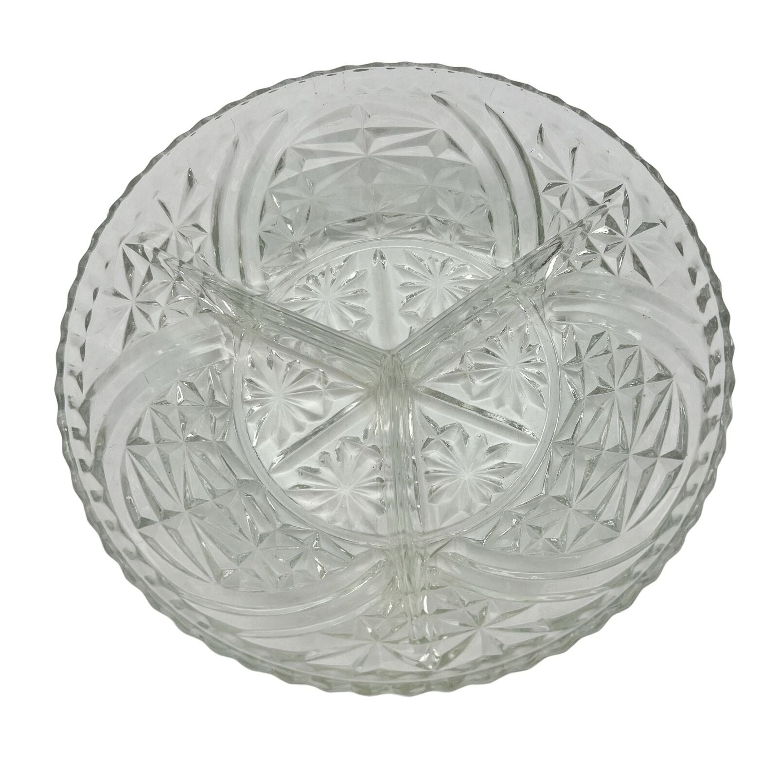Bowl Serving Dish 7.5 in Clear Faceted Glass 3 Sections