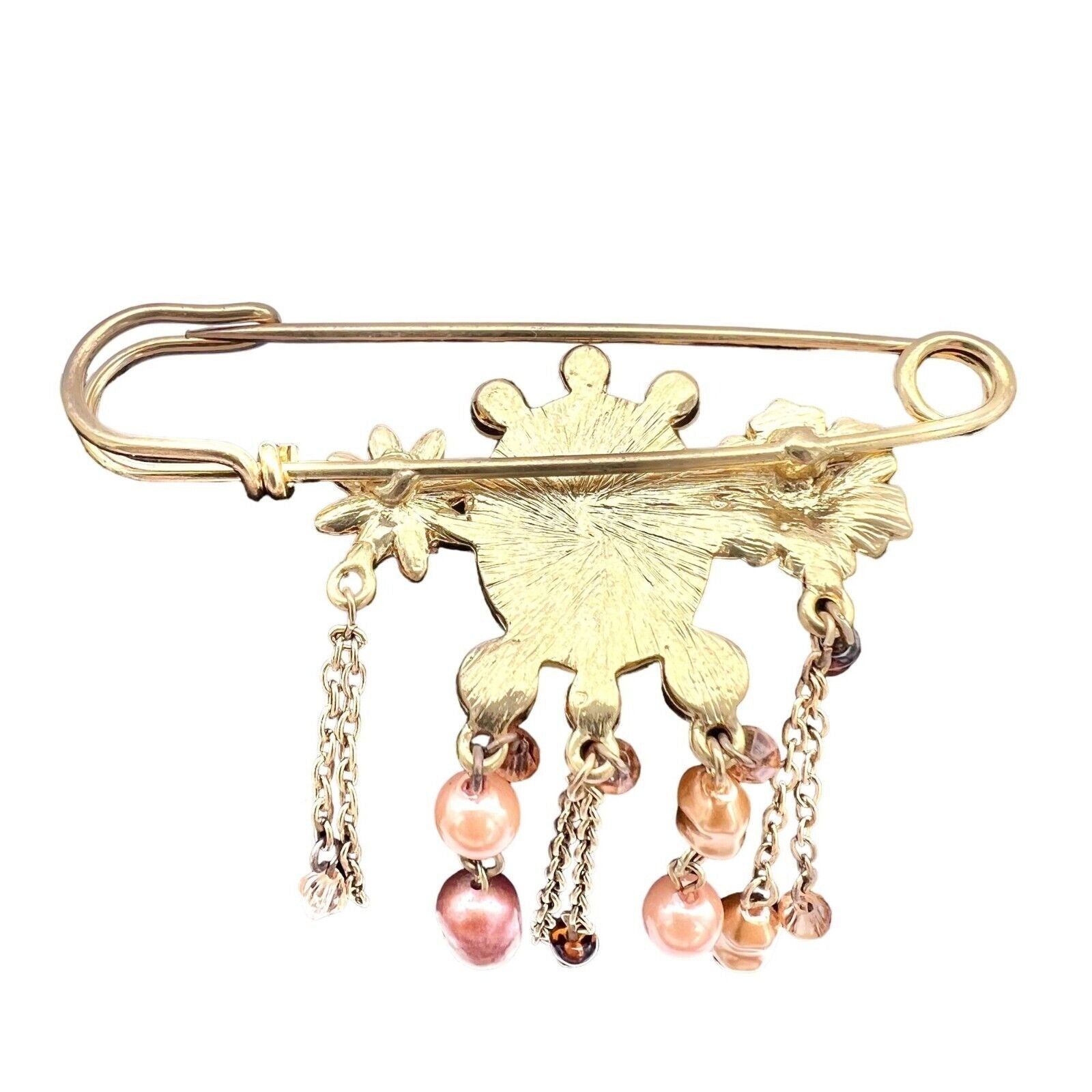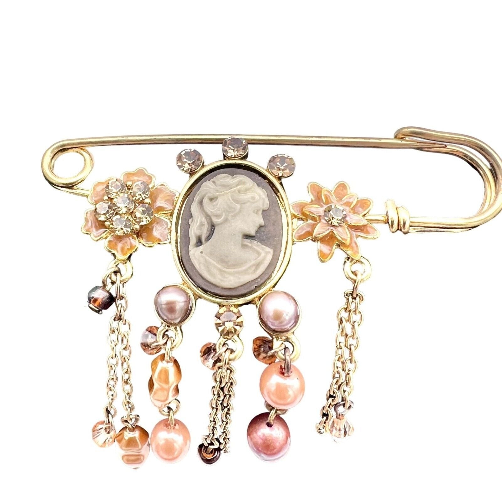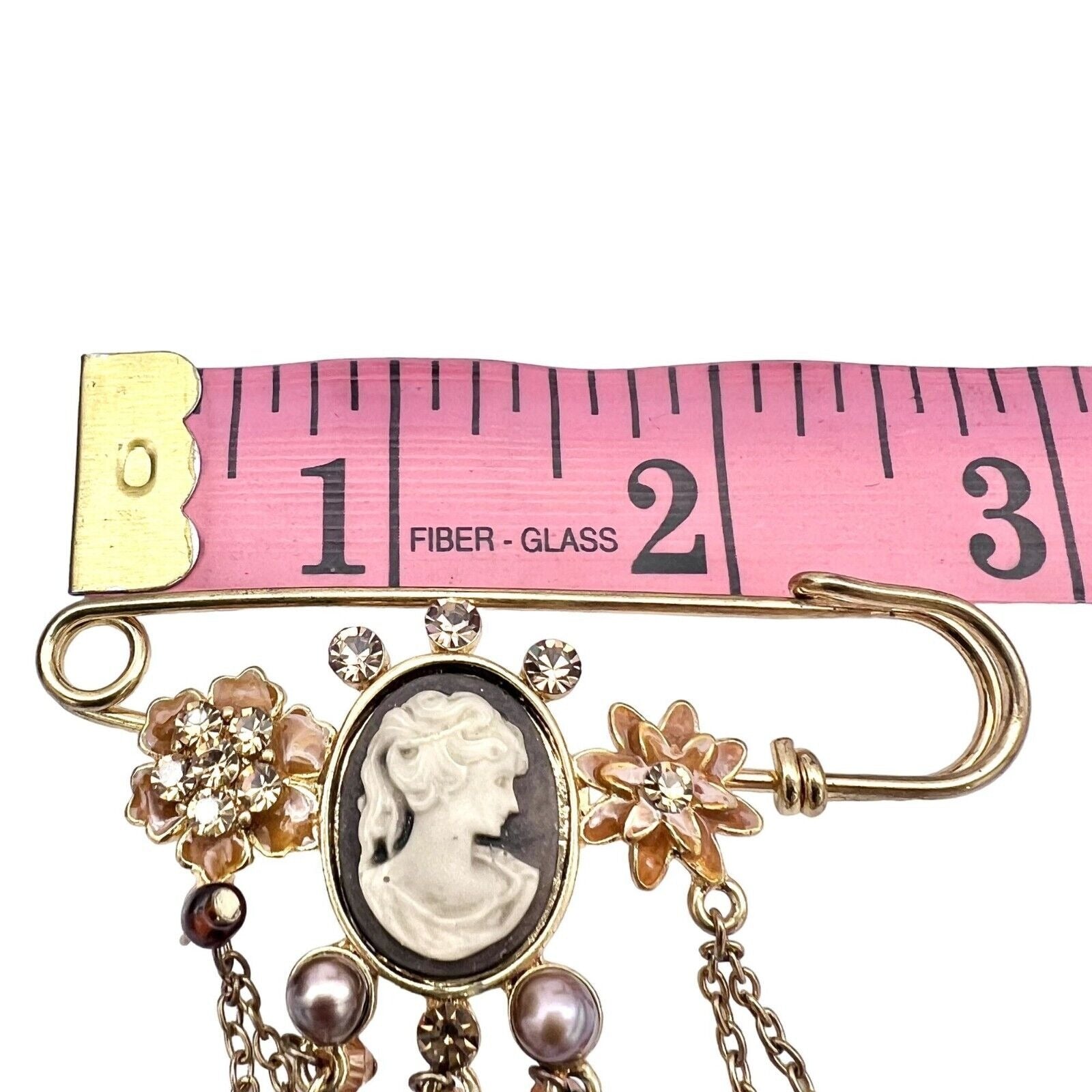 Brooch Pin 3 inch Goldtone Cameo Beads Rhinestones NWOT