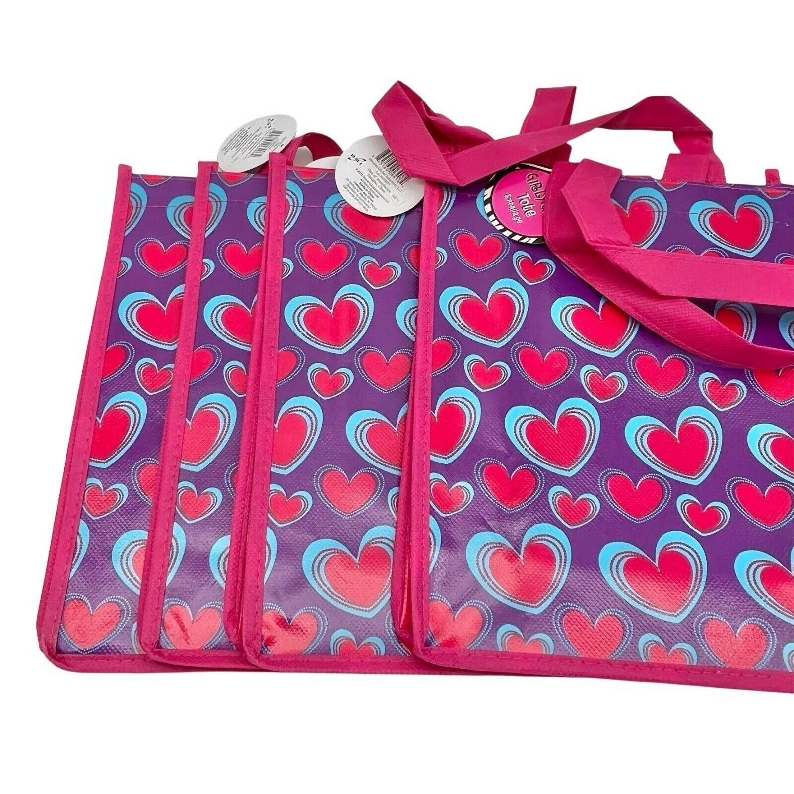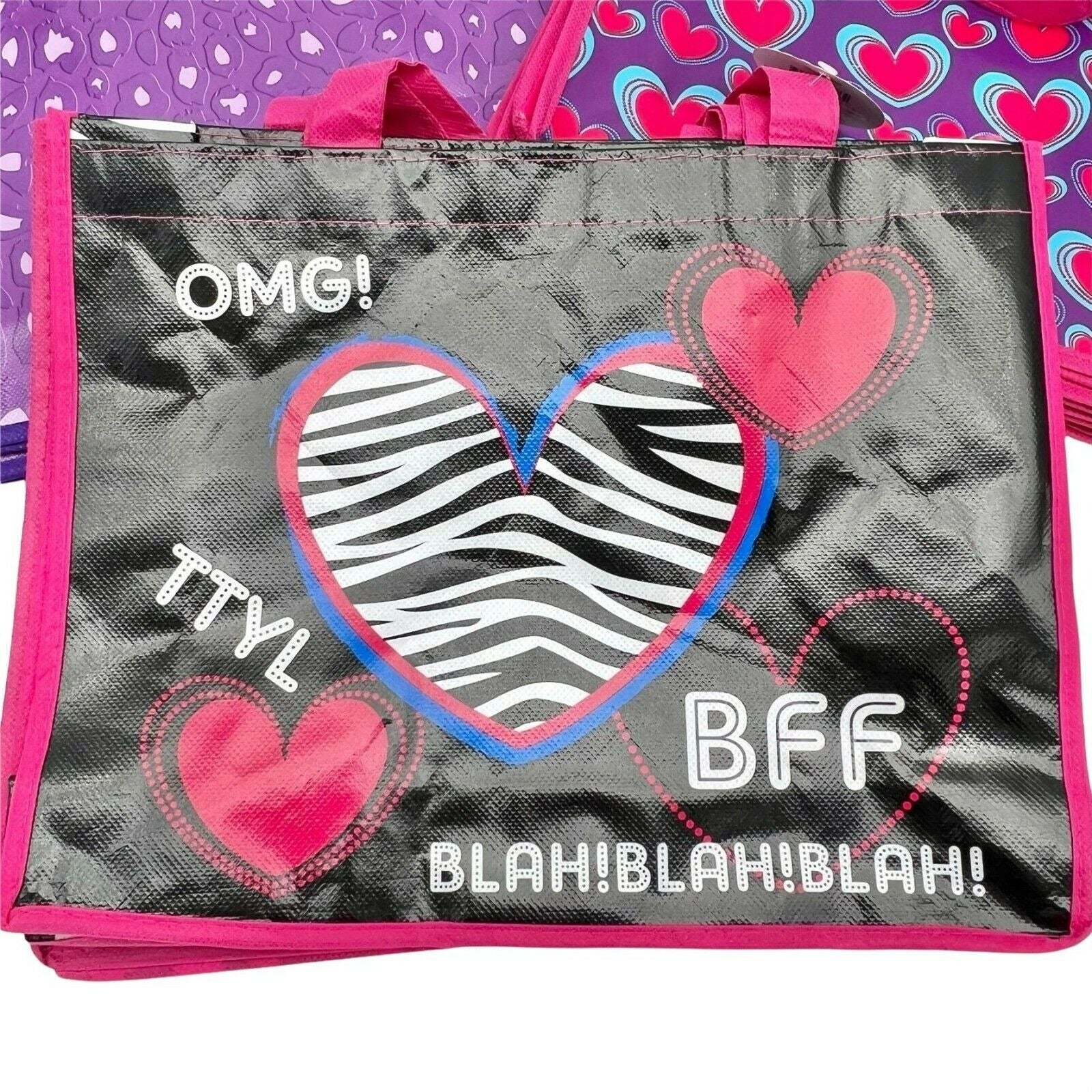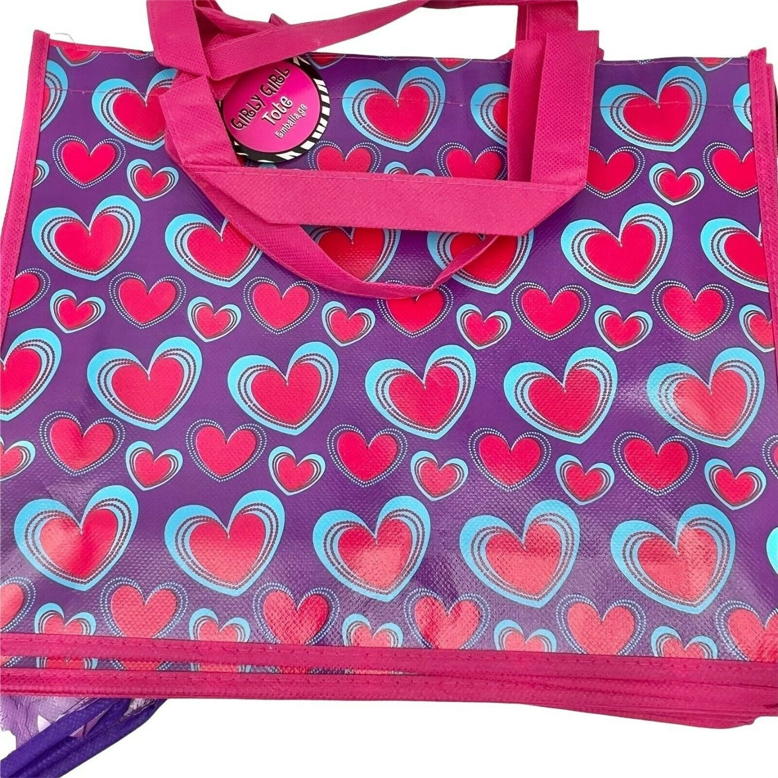 Bundle of 12 Girly Girl Tote Bags Hearts Valentines Purple Pink Reusable NWT