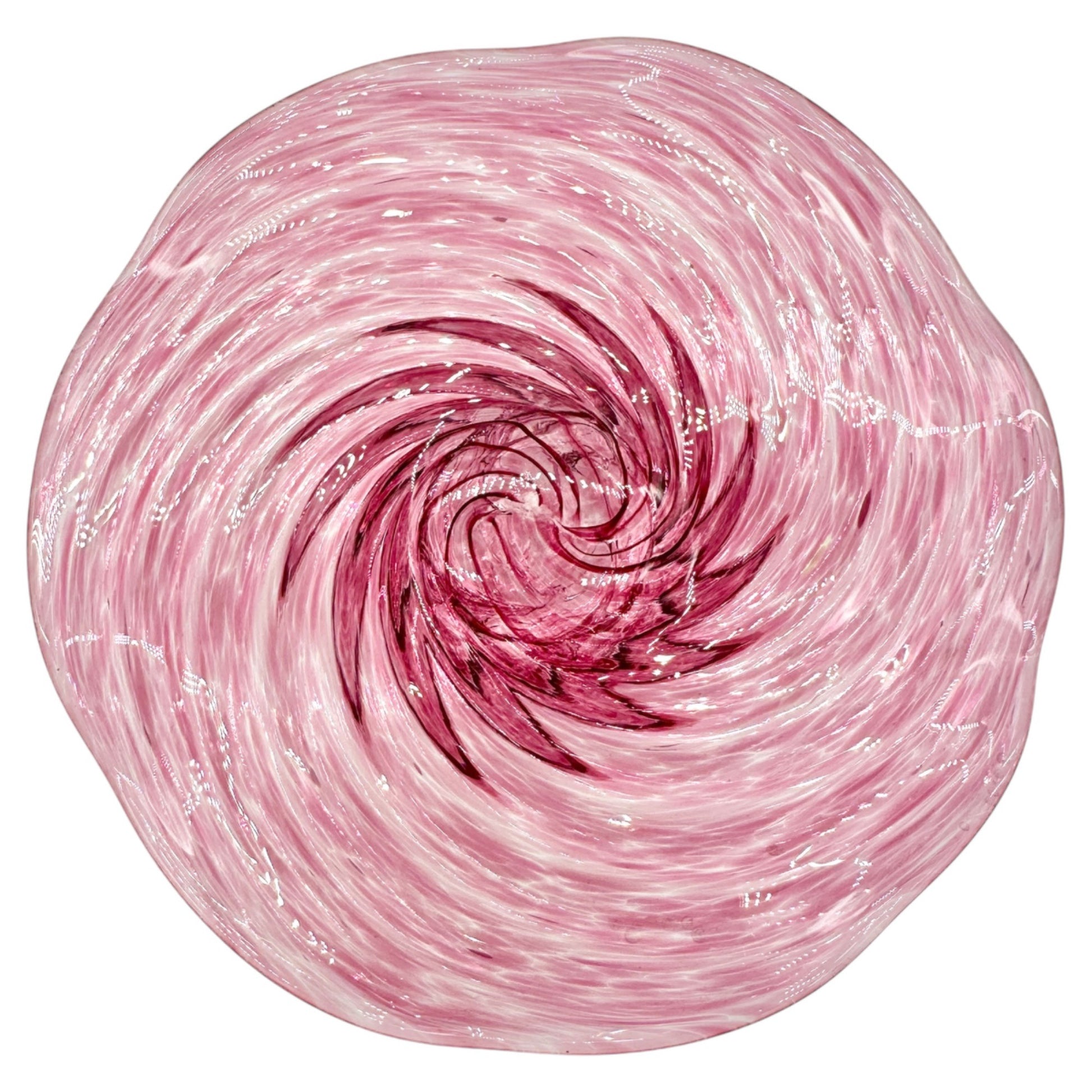 In a quaint glass studio in 2001, Alex Andriani meticulously crafted this pink swirl pedestal cake stand. Its rippling design and vibrant hues evoke a sense of whimsy, making it an enchanting centerpiece for your table. A testament to artistry and imagination, this piece blends beauty and function seamlessly.