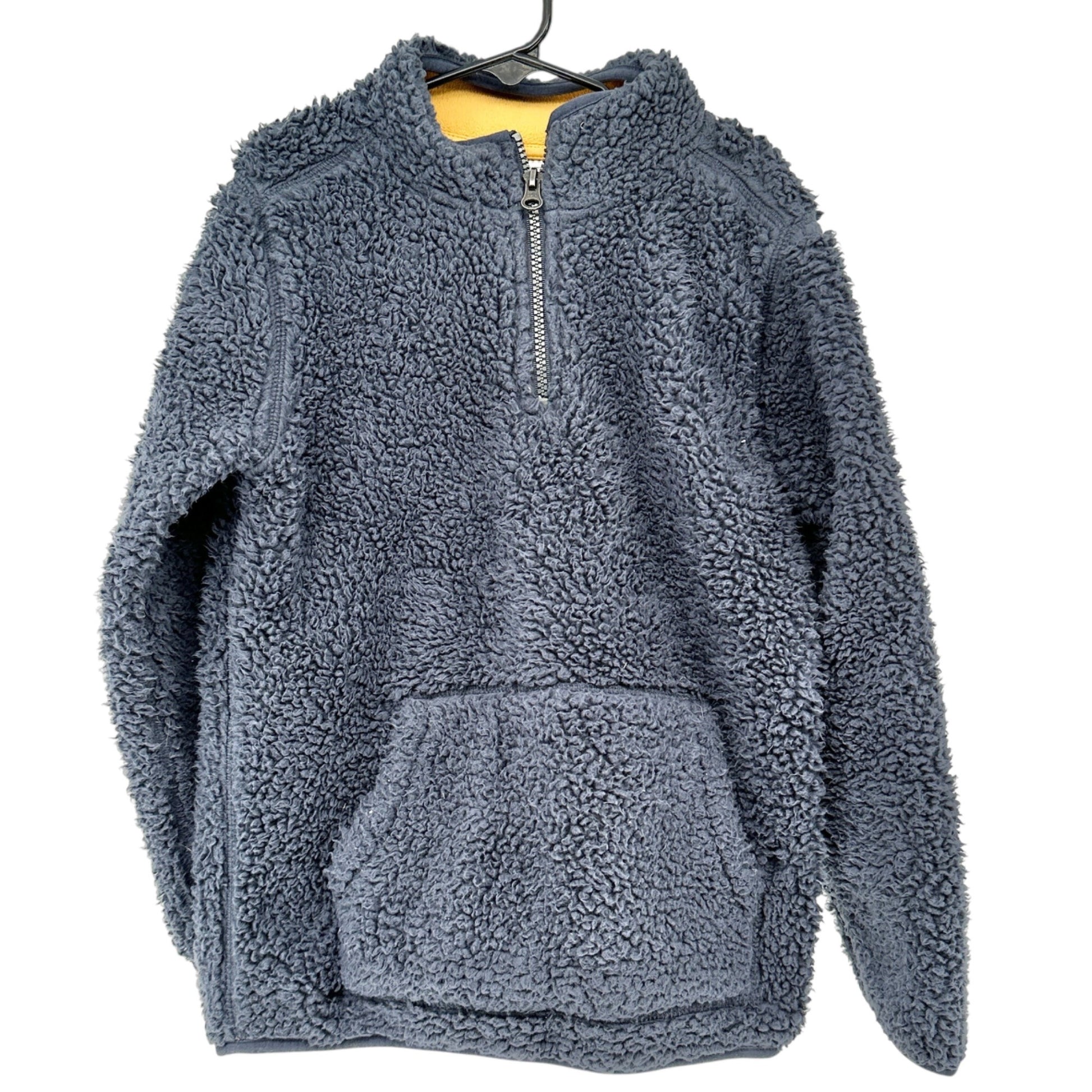 Carters Kid Sherpa Pullover Size 8/8A Gray Yellow Quarter-Zip LS Kangaroo Pocket