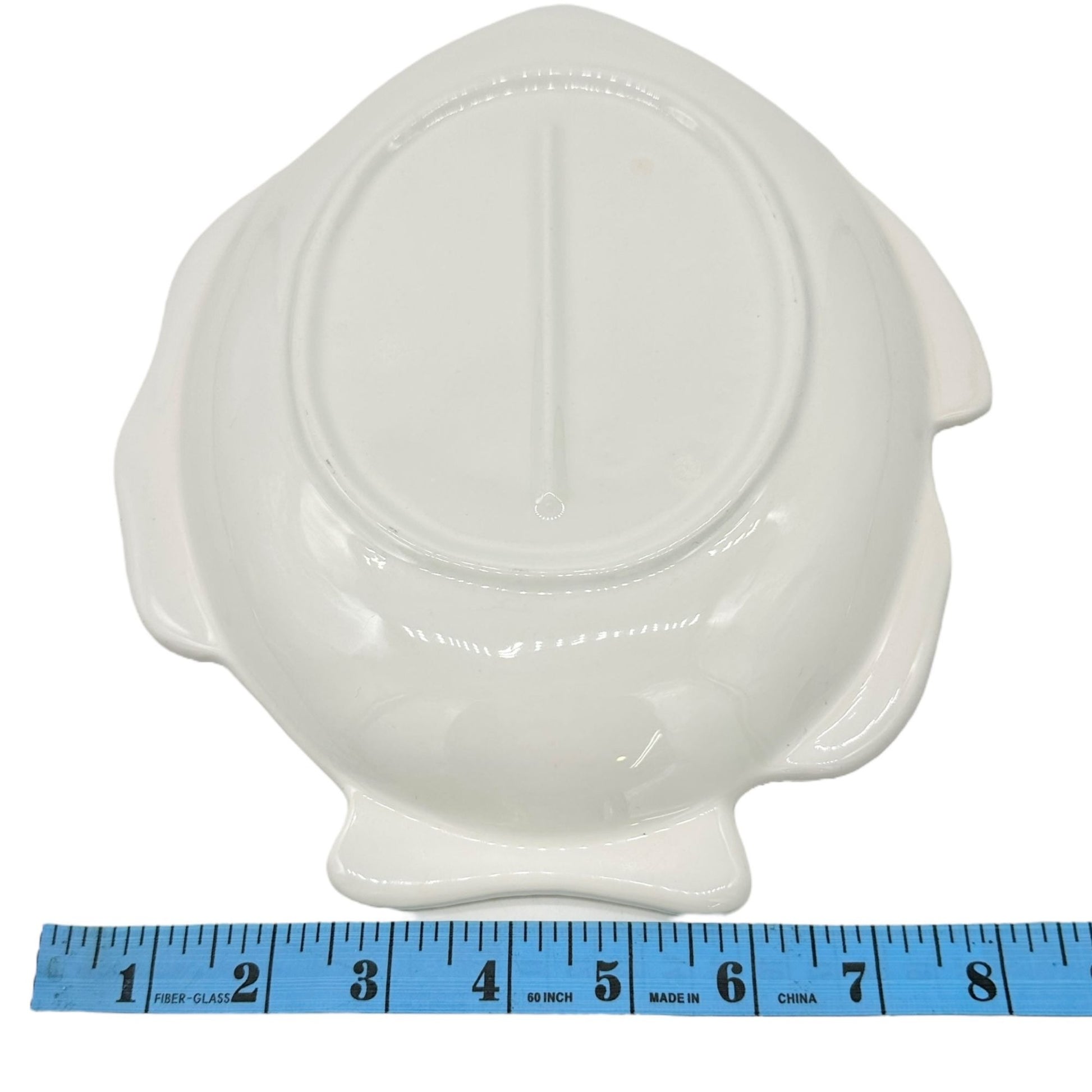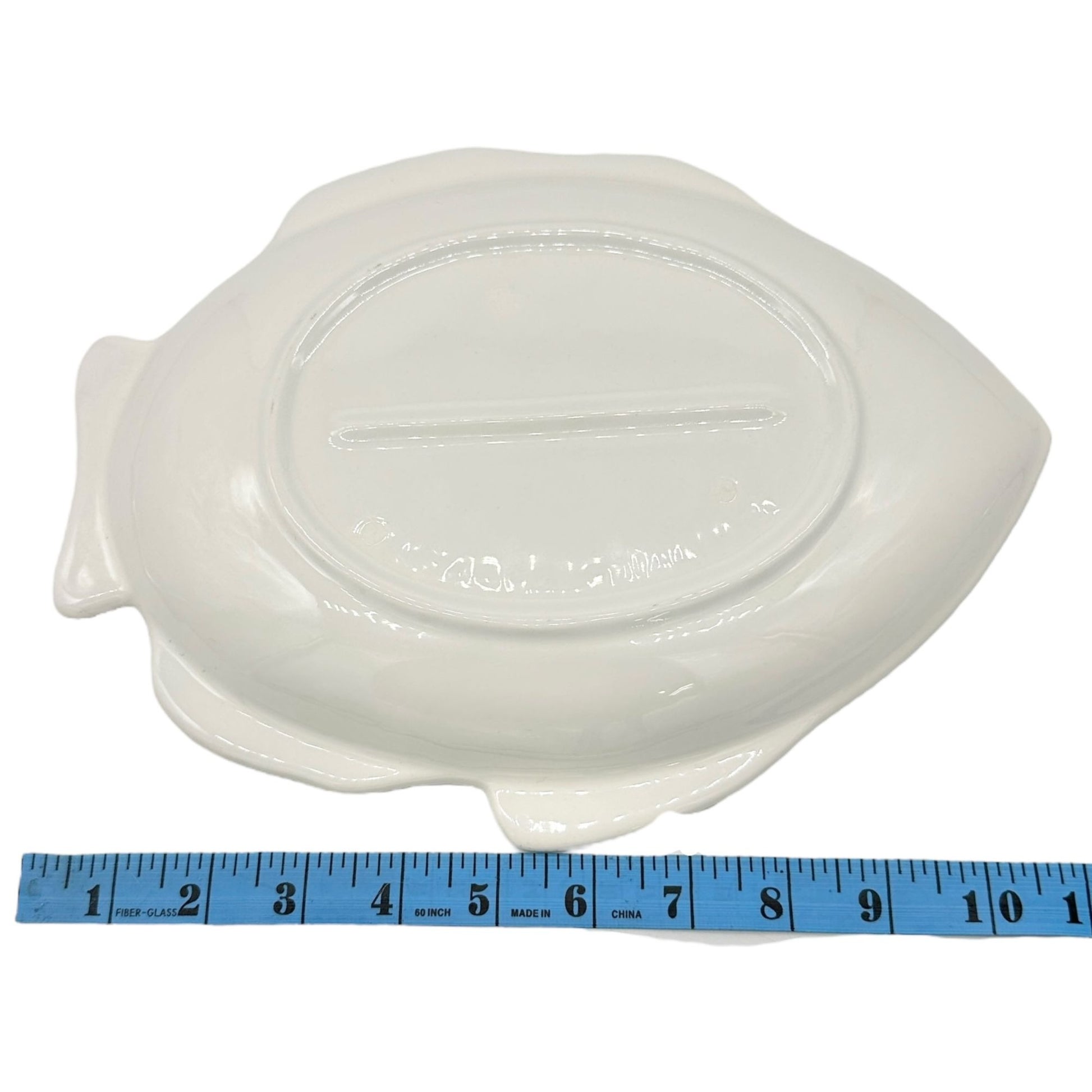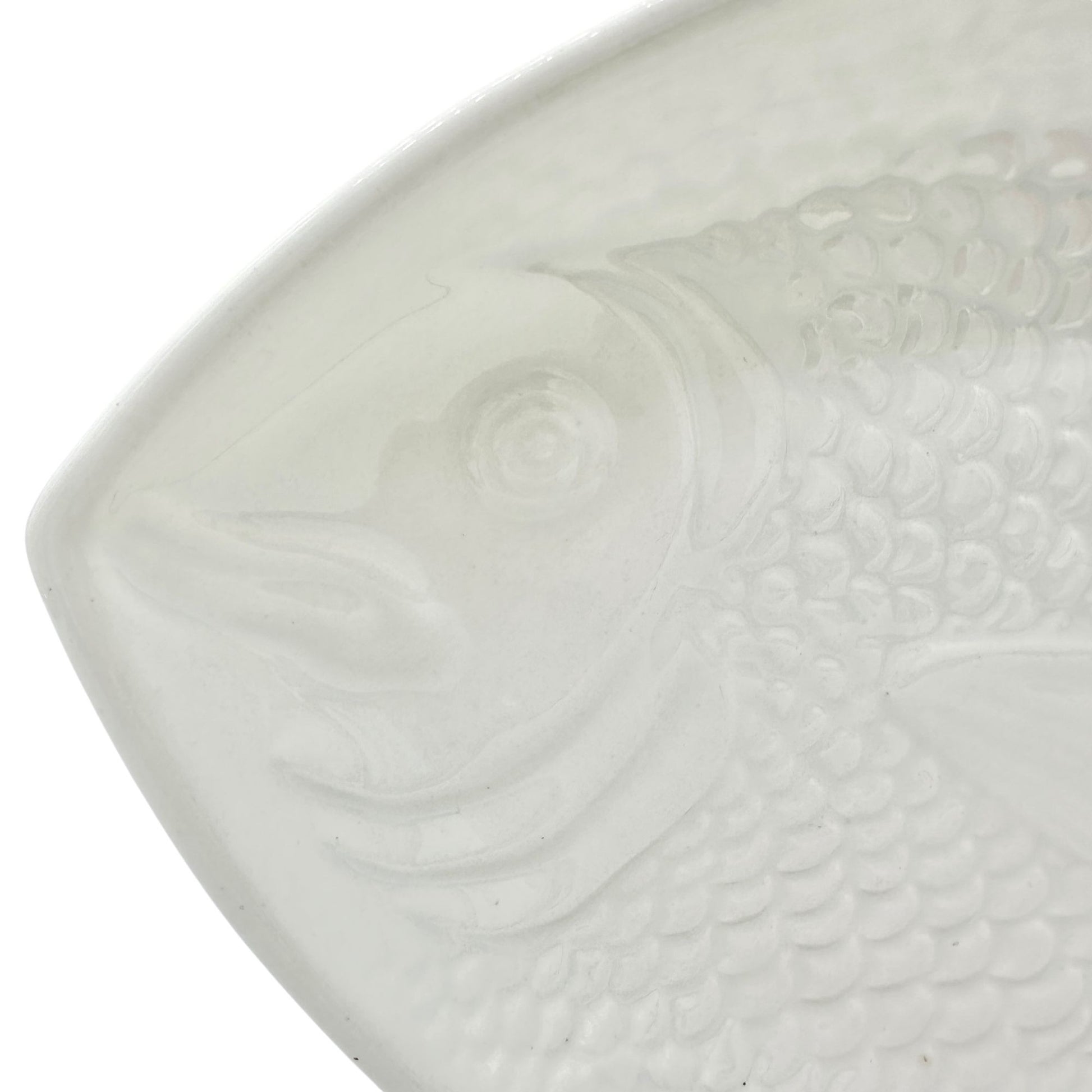 Ceramic Fish-Shaped Serving Plate White Embossed Design Vtg Coastal Home Decor