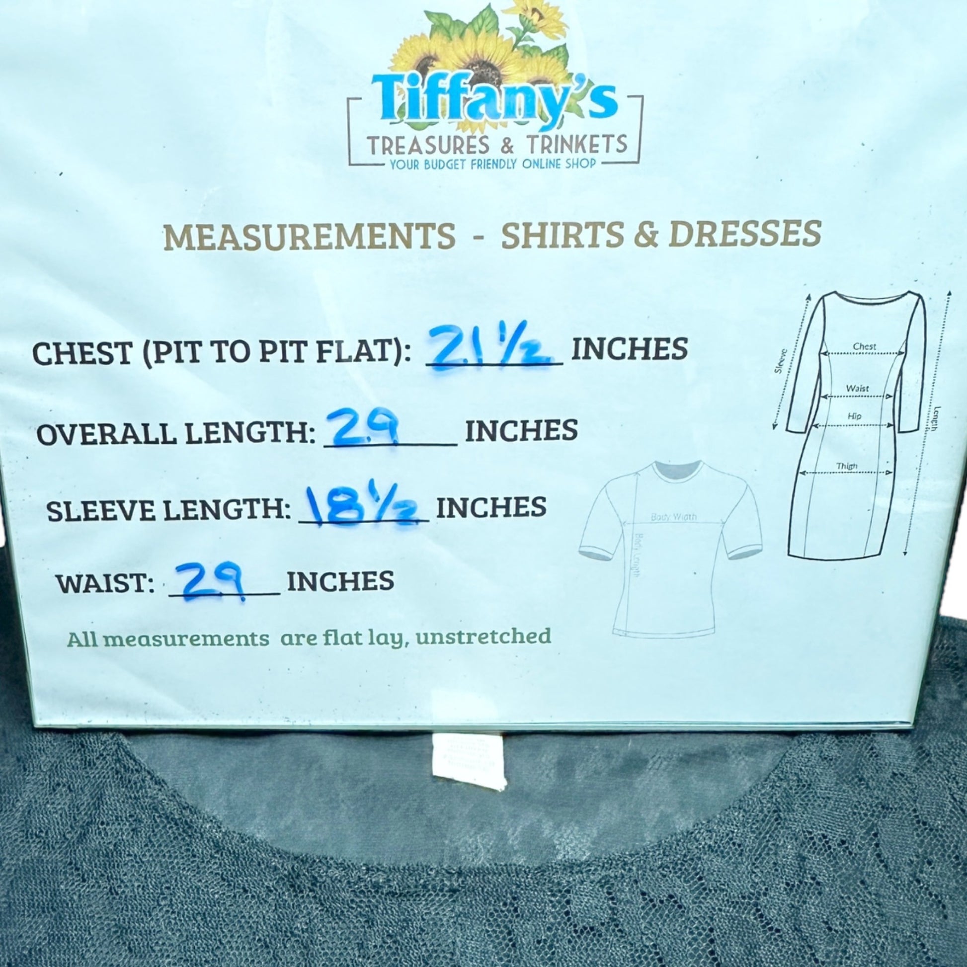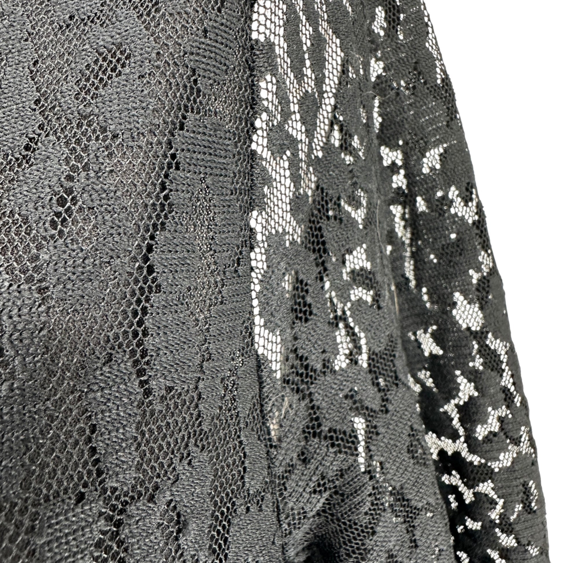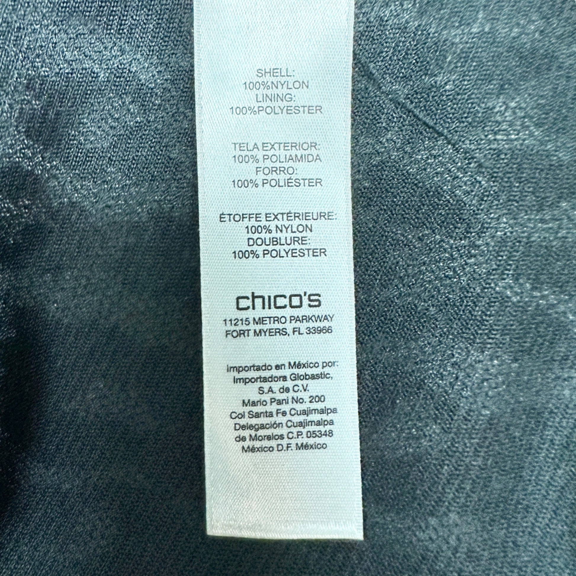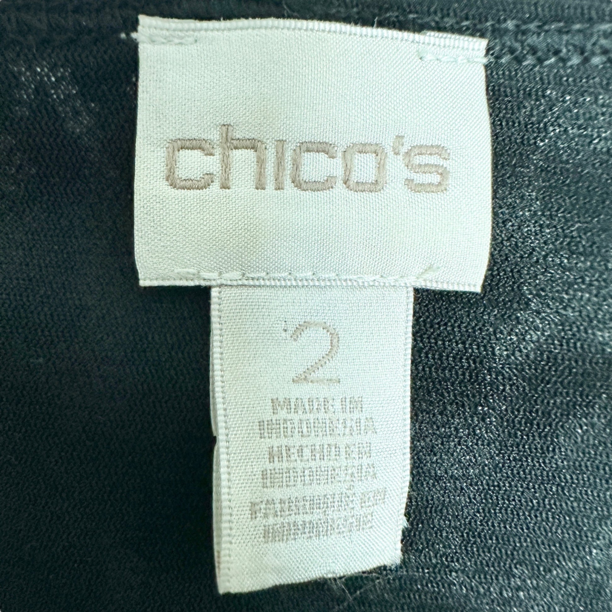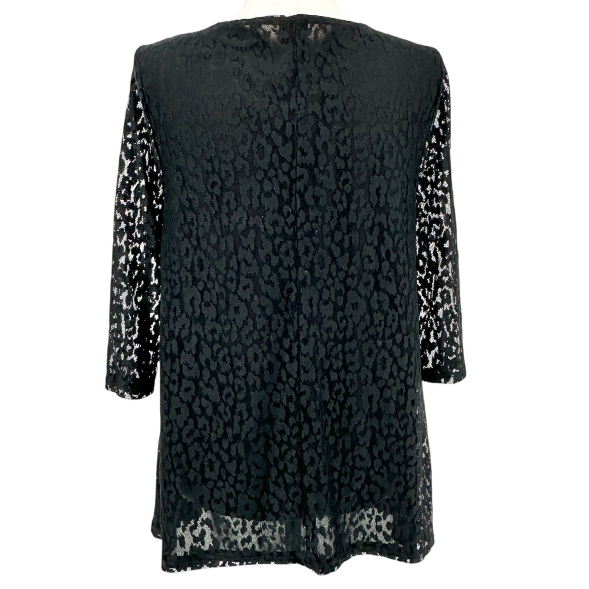 Chicos Burnout Tunic Top Size 2 L 12 Black Lace Sheer 3/4 Sleeves Nylon Poly