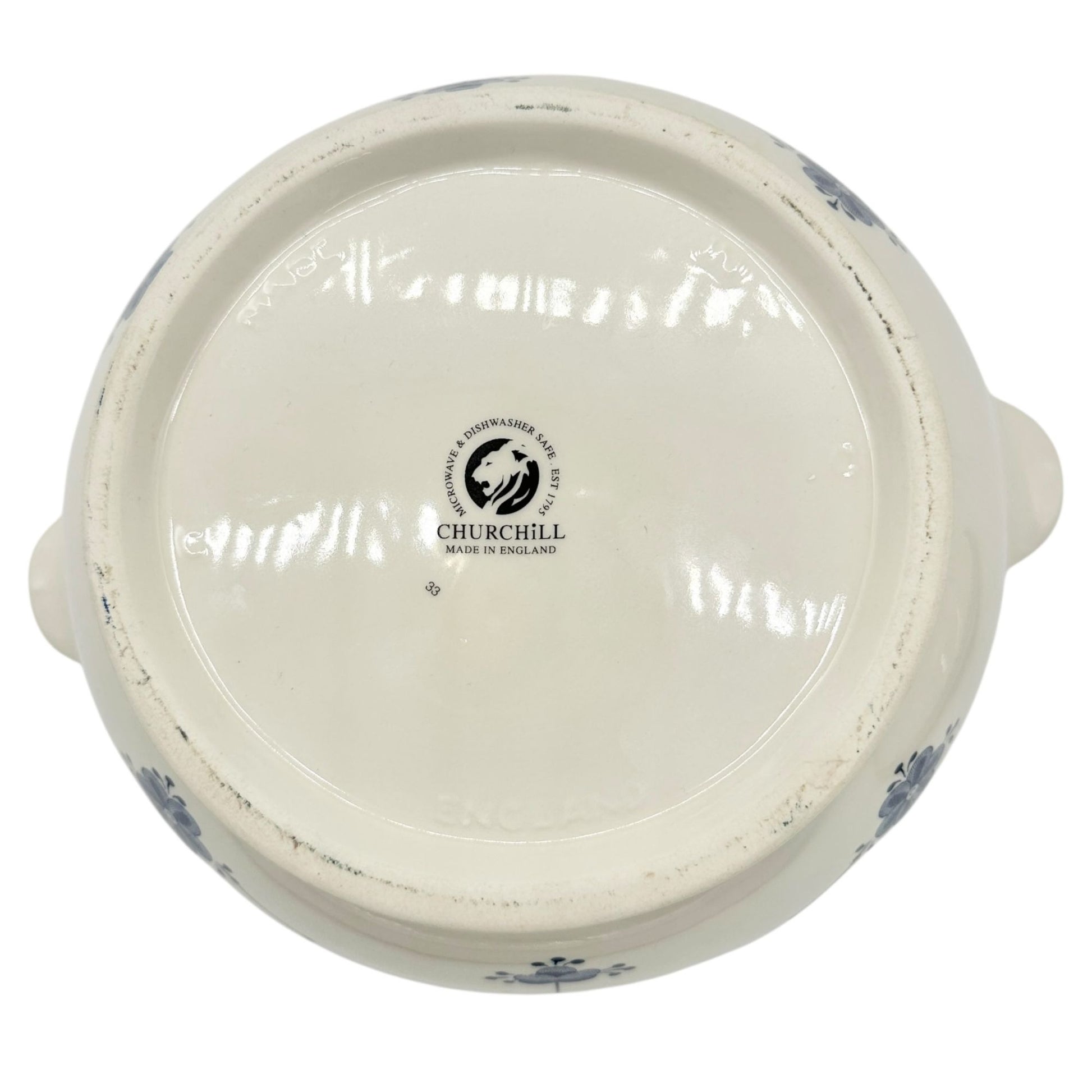 Churchill Serving Bowl with Lid 8 inch Diameter White Blue Floral Design England
