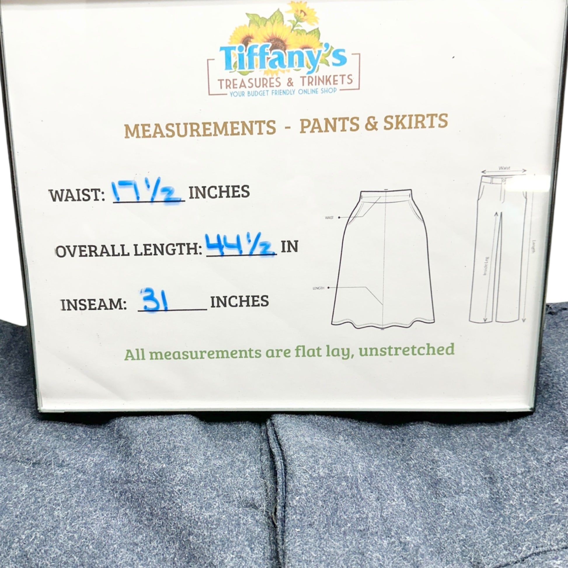 • Waist size: 17.5 inches, inseam: 31 inches, overall length: 44 inches