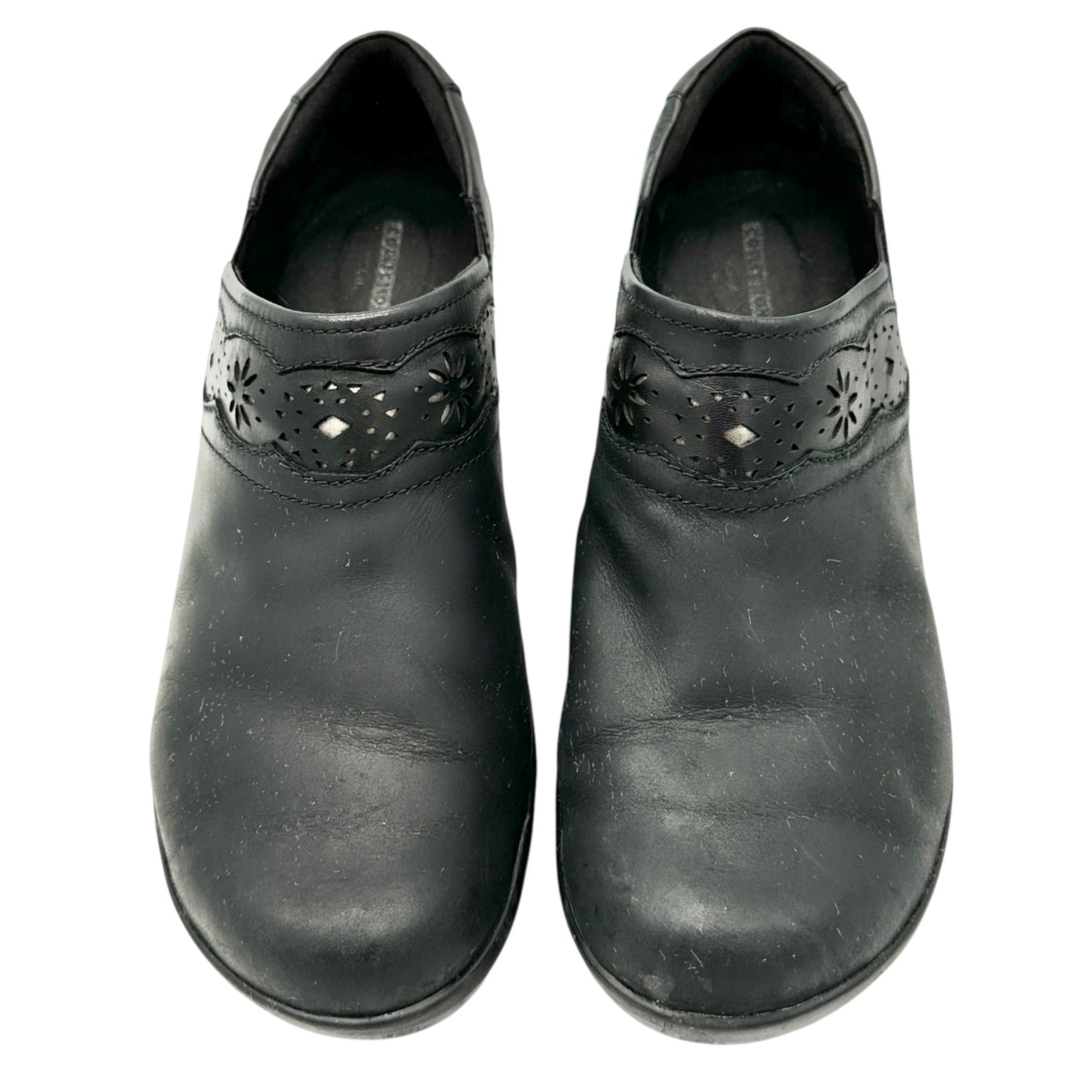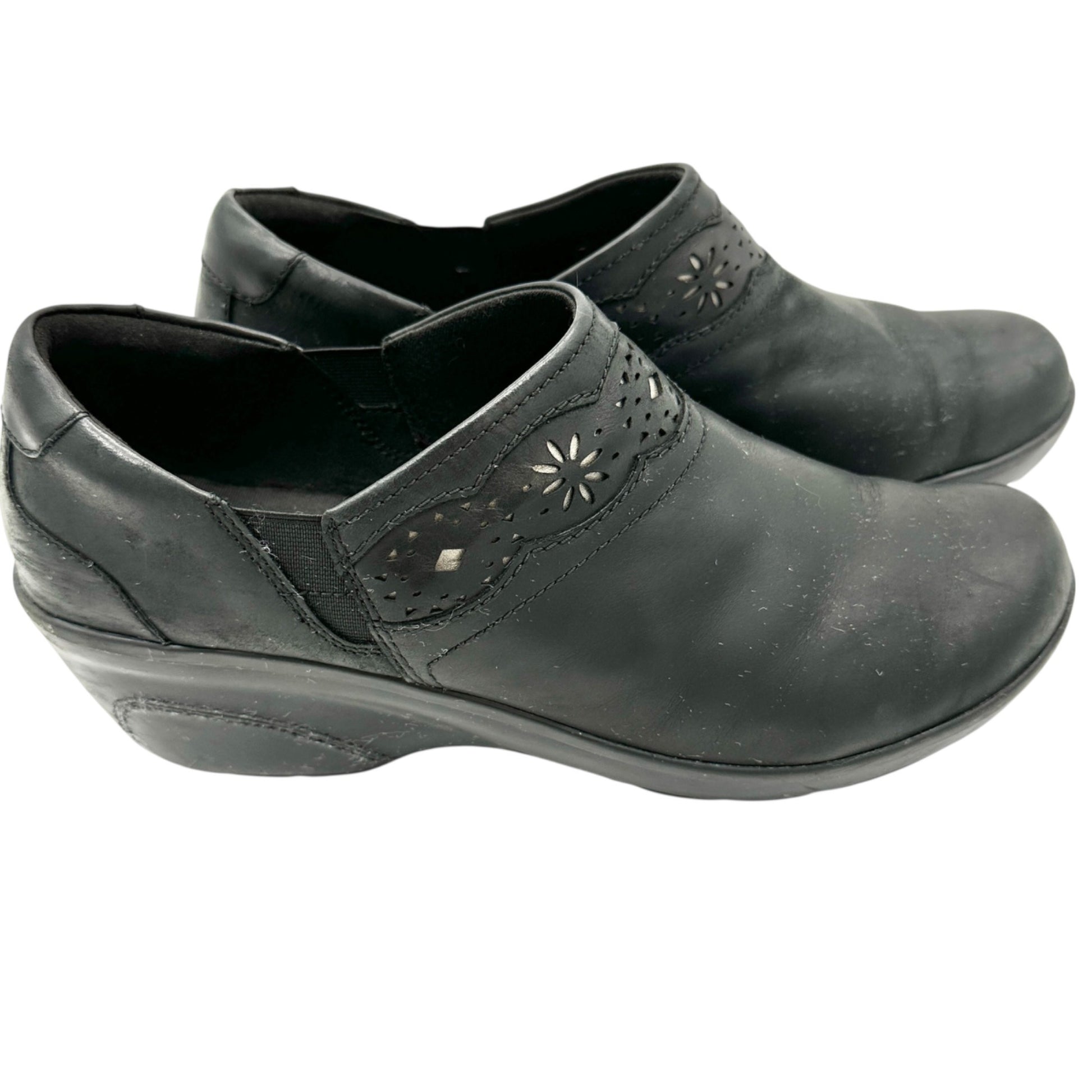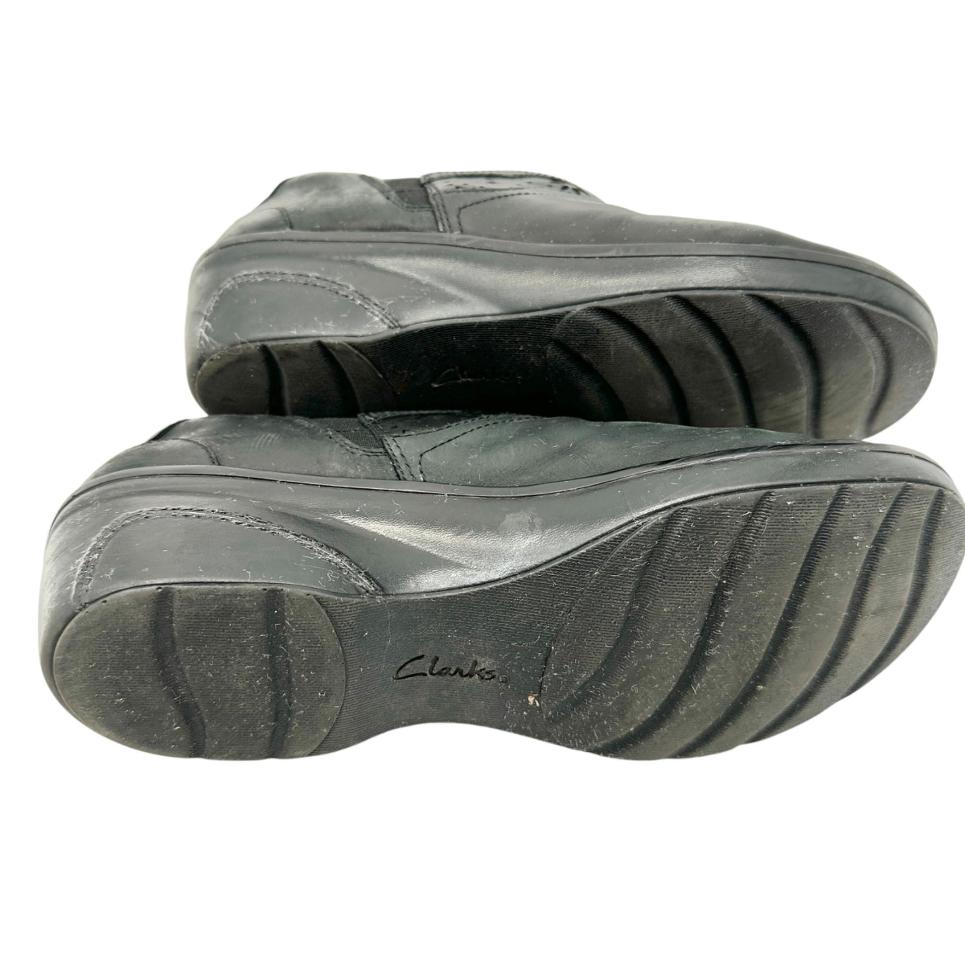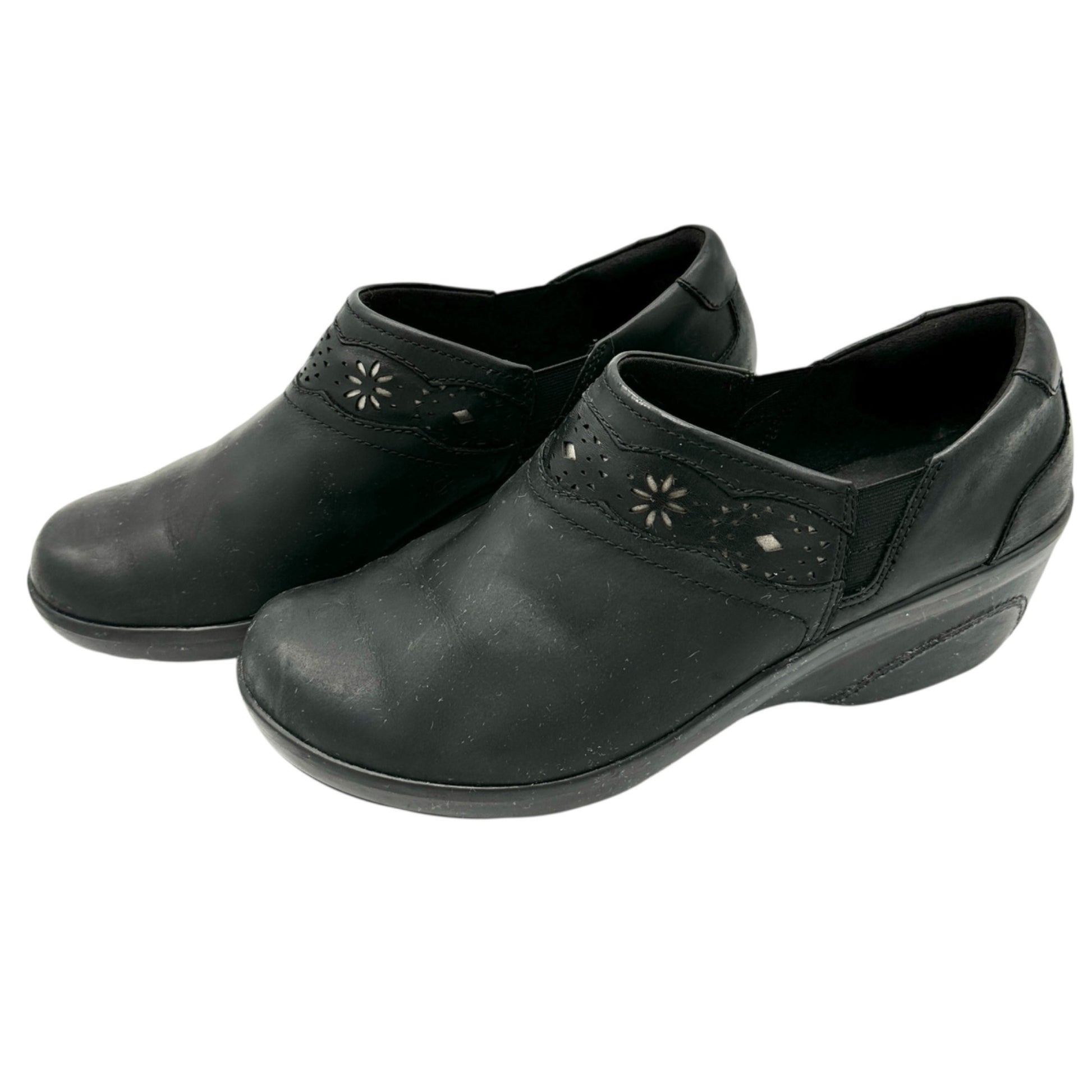 Collection by Clarks Marion Helen Clogs Womens 9.5W Black Leather Wedge Slip Ons