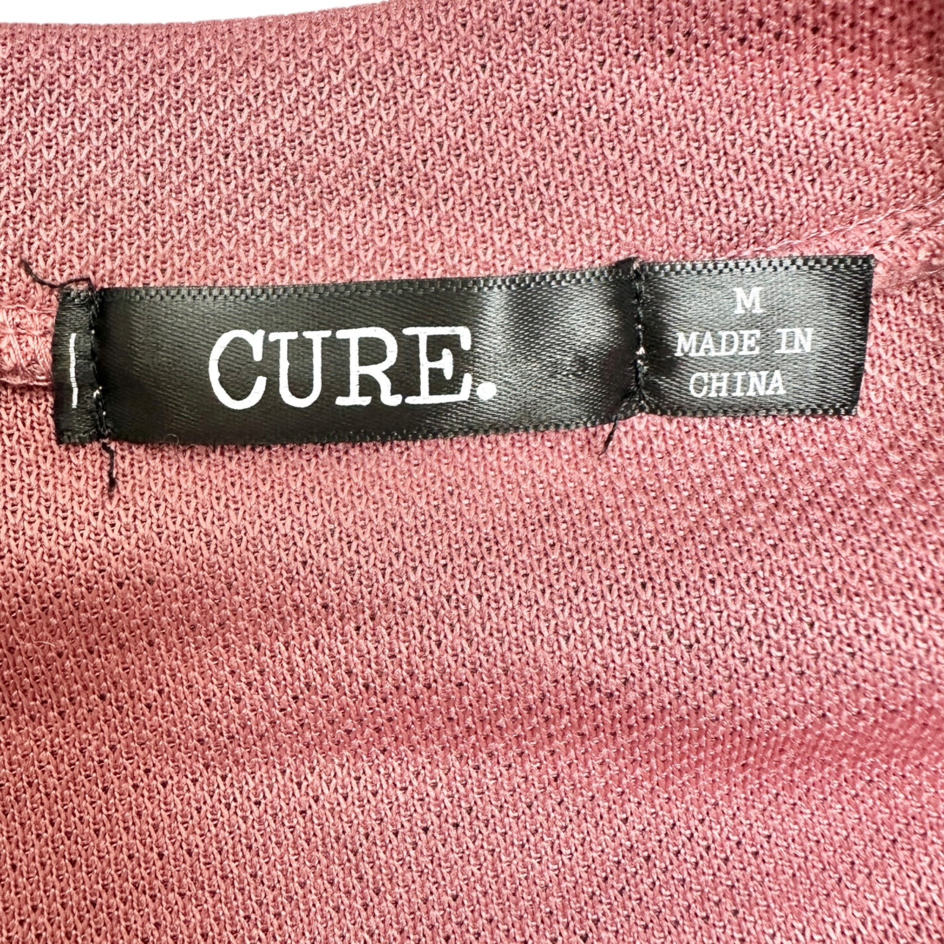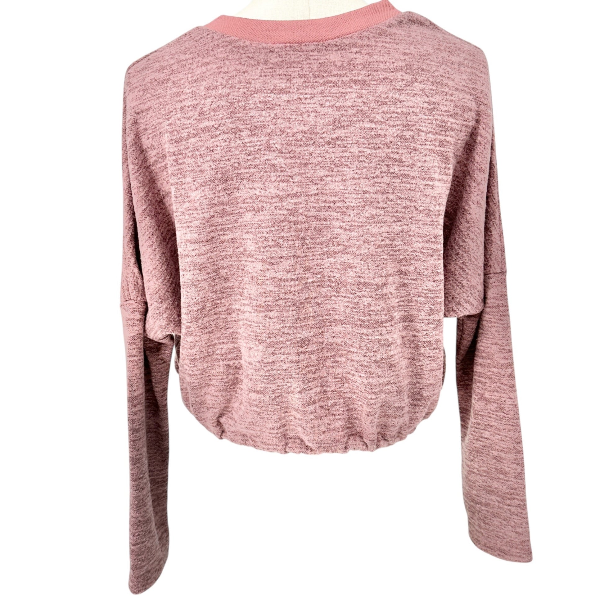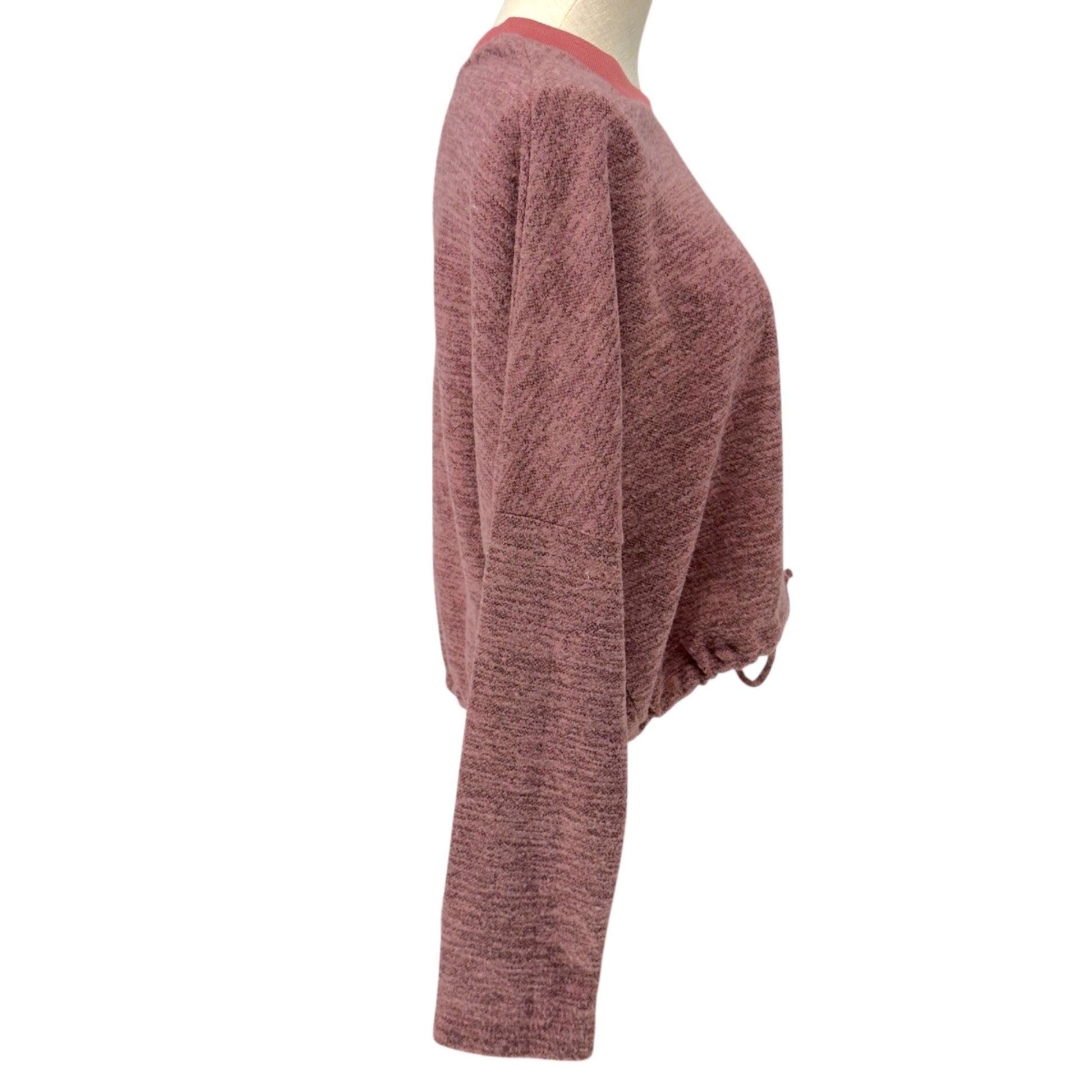 Cure Drawstring Hem Crop Top Womens M Heathered Pink Long Sleeve Polyester Blend