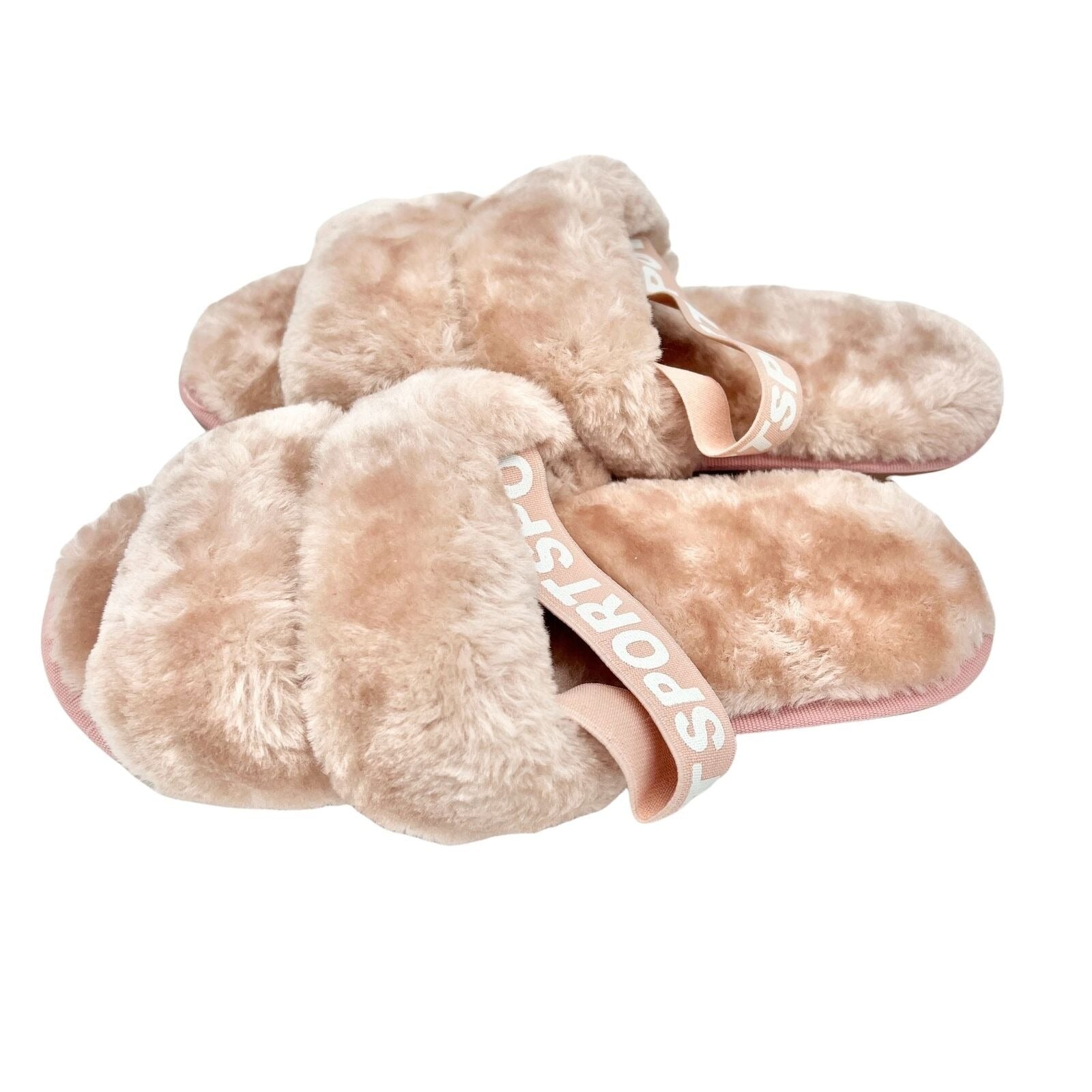 Womens Size 43 Pink Sport Fluffy Slingback Slippers - fuzzy and fun, these slippers feature a sole that can be worn outside if needed as well as inside.
