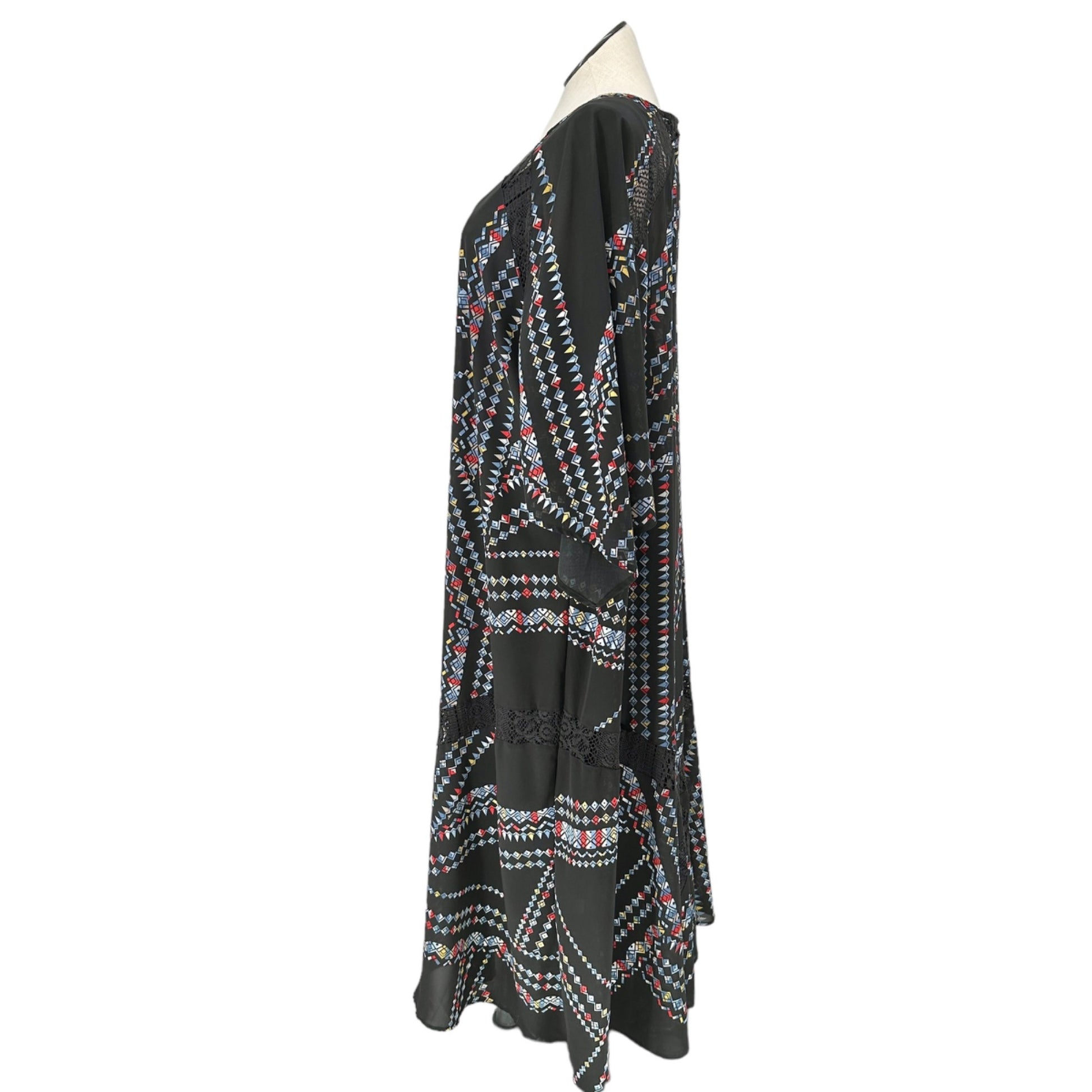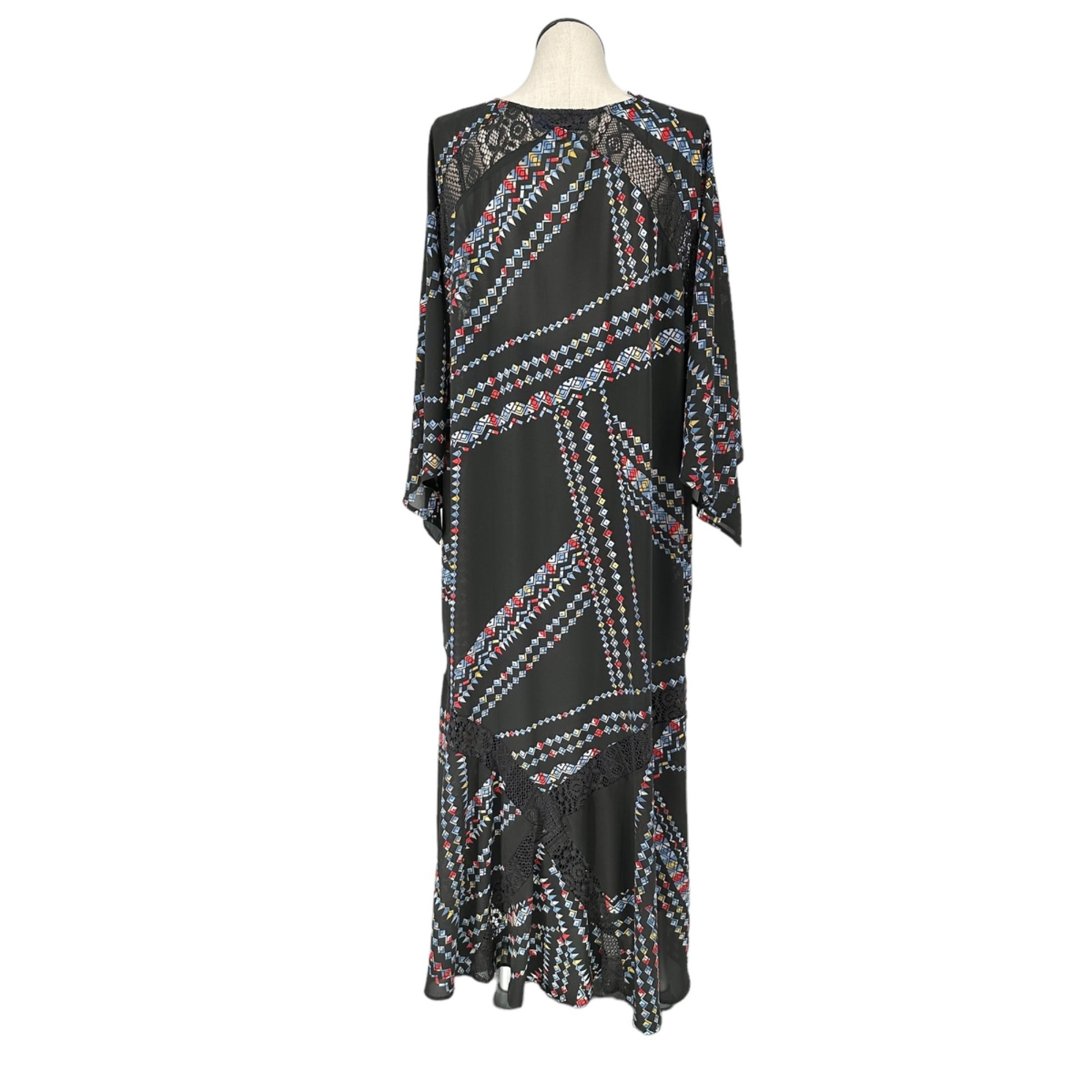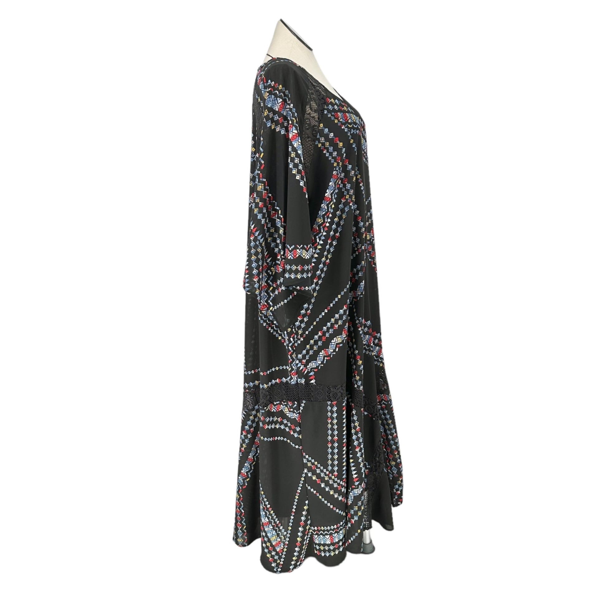 Denim 24/7 2pc Maxi Dress Womens 28W Black with Multicolor Geometric Pattern - stylish dress for the plus sized woman.