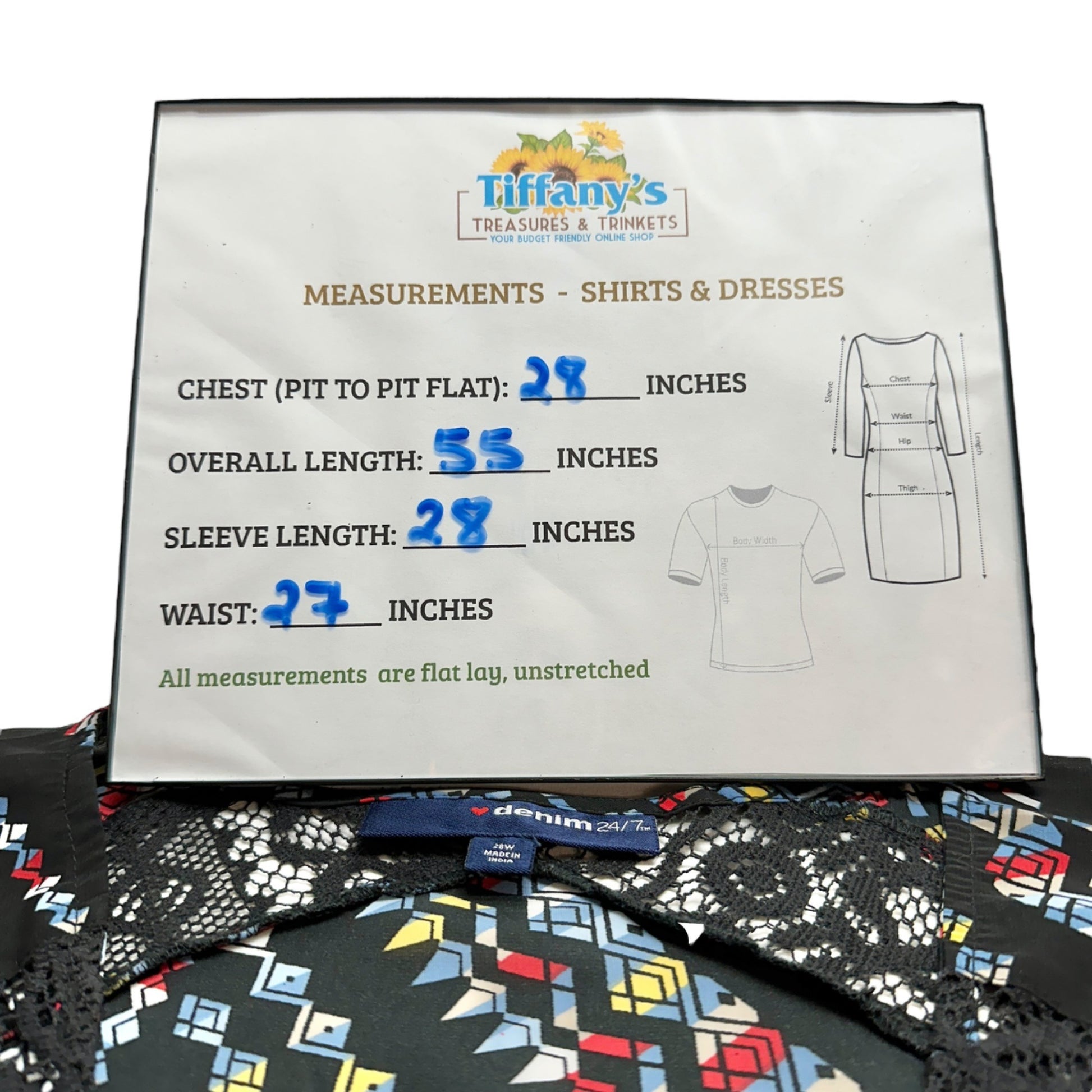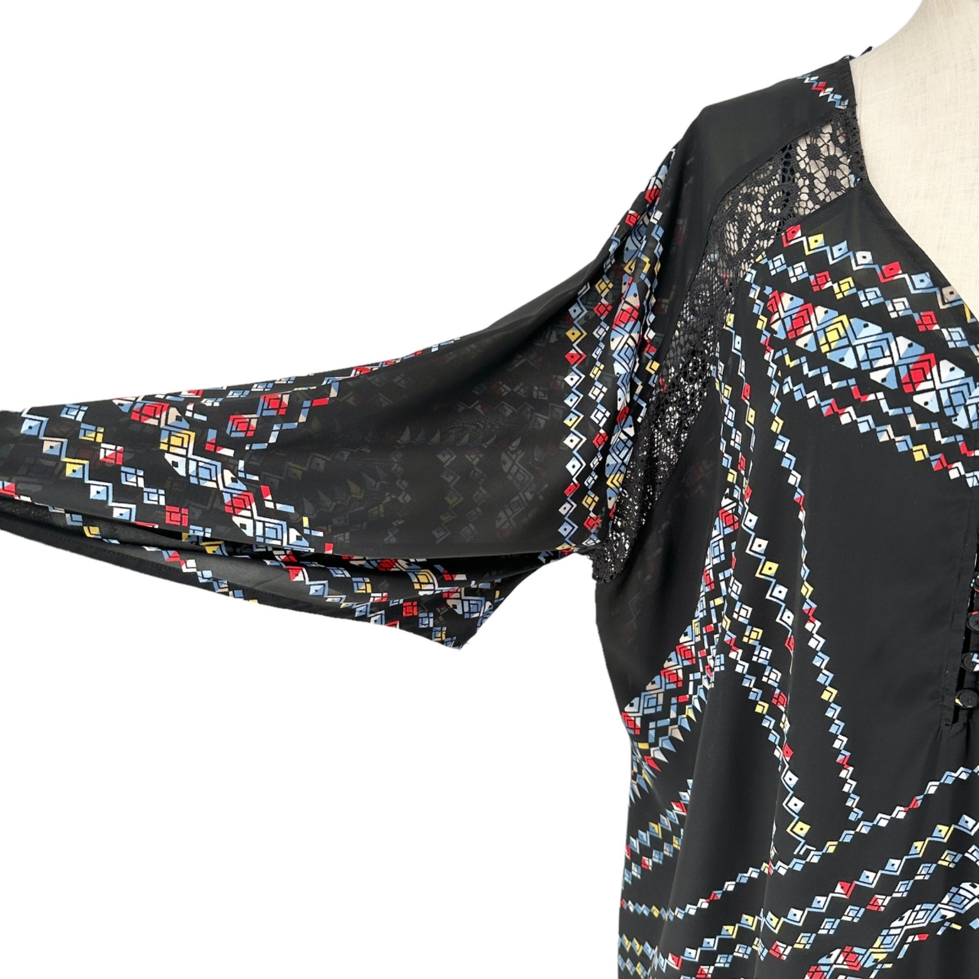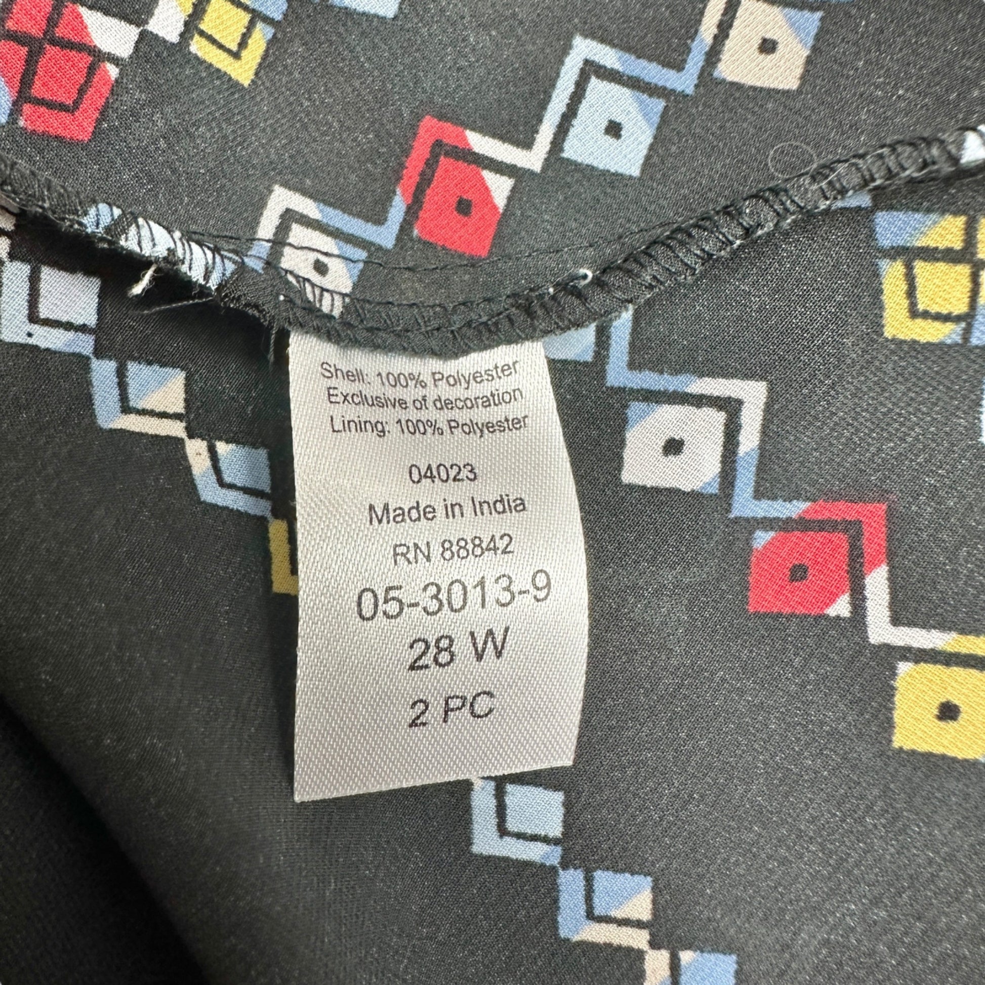 Denim 24/7 2pc Maxi Dress Womens 28W Black with Multicolor Geometric Pattern - stylish dress for the plus sized woman.