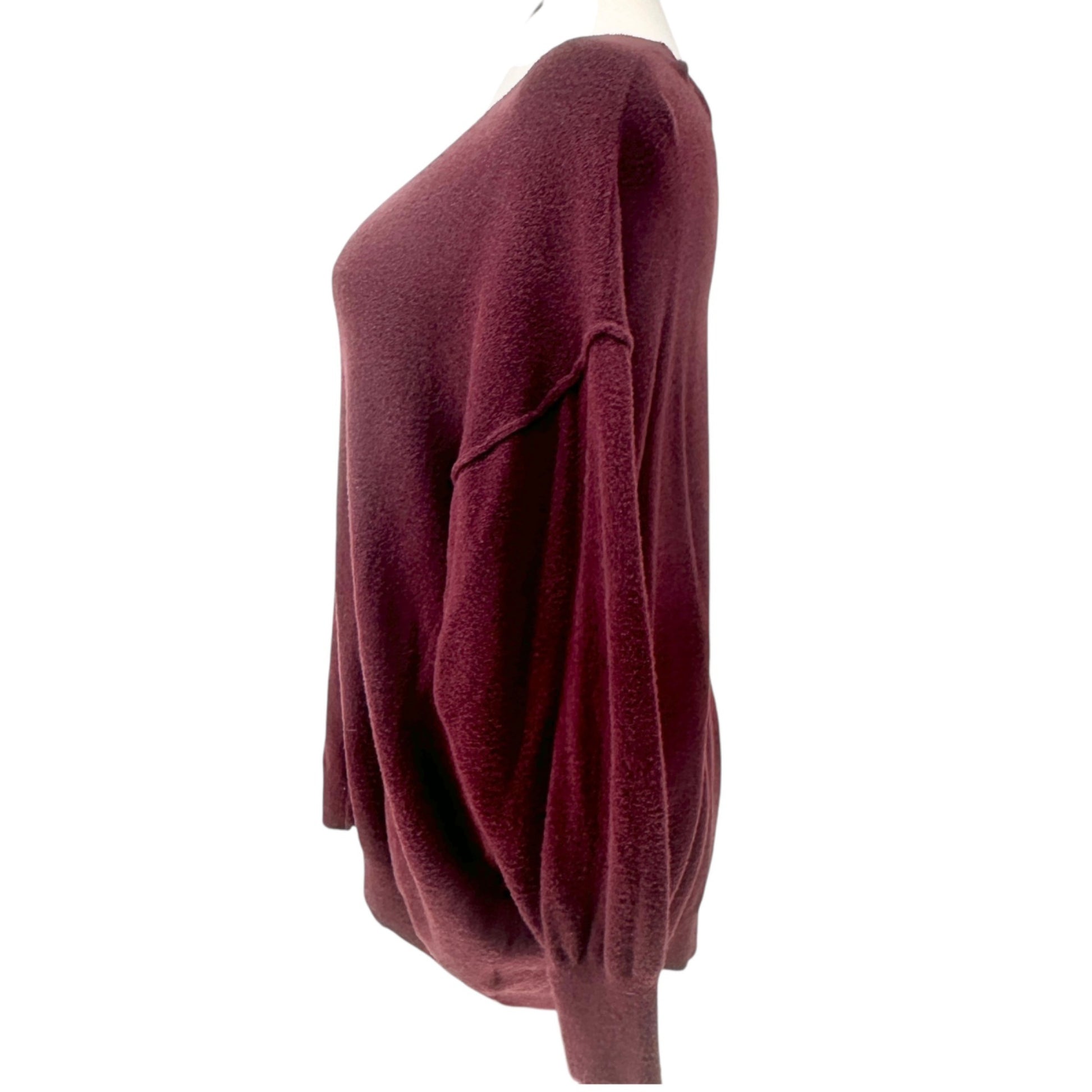 Wrap yourself in the cozy embrace of this plush Dex Plus sweater. Its deep wine hue and flattering oversized design bring a blend of elegance and comfort, perfect for cooler days. The soft, luxurious fabric feels like a gentle hug against your skin, while its stylish V-neck adds an effortless charm.