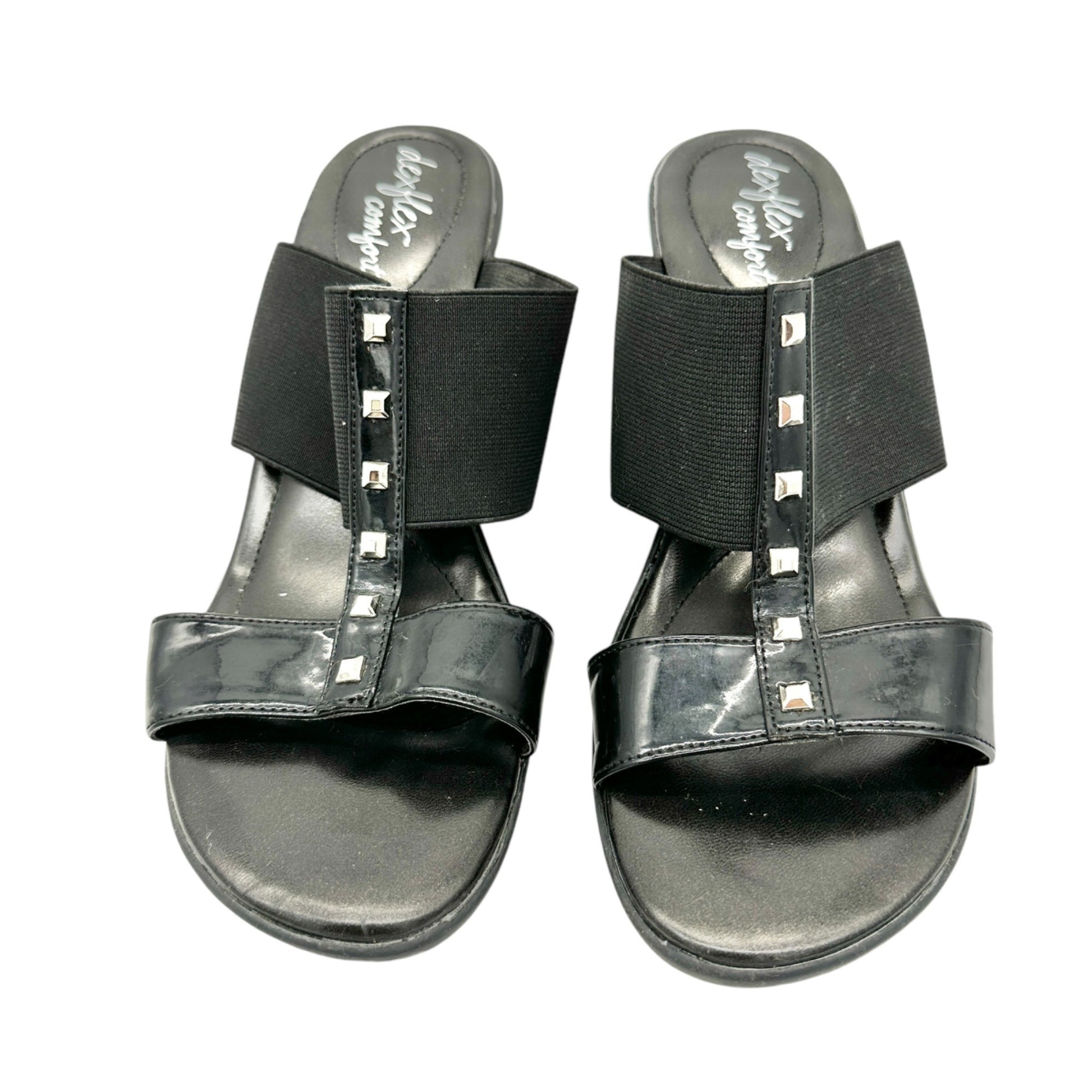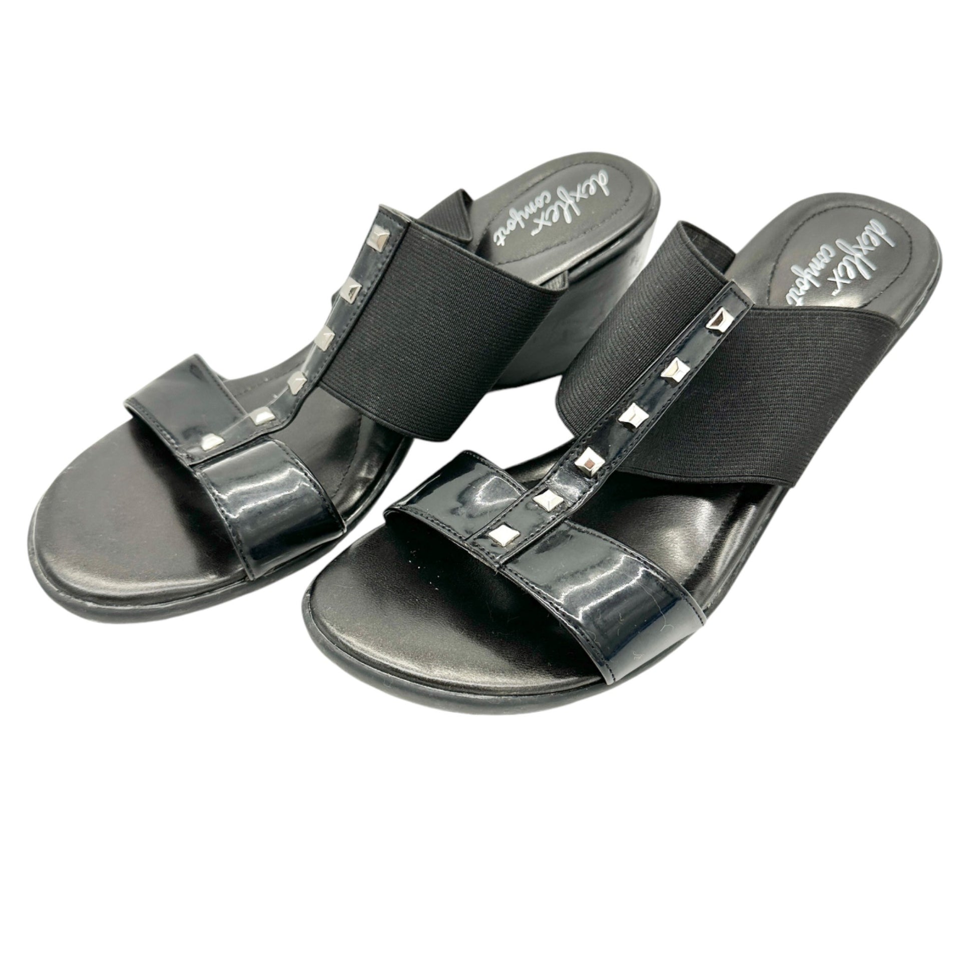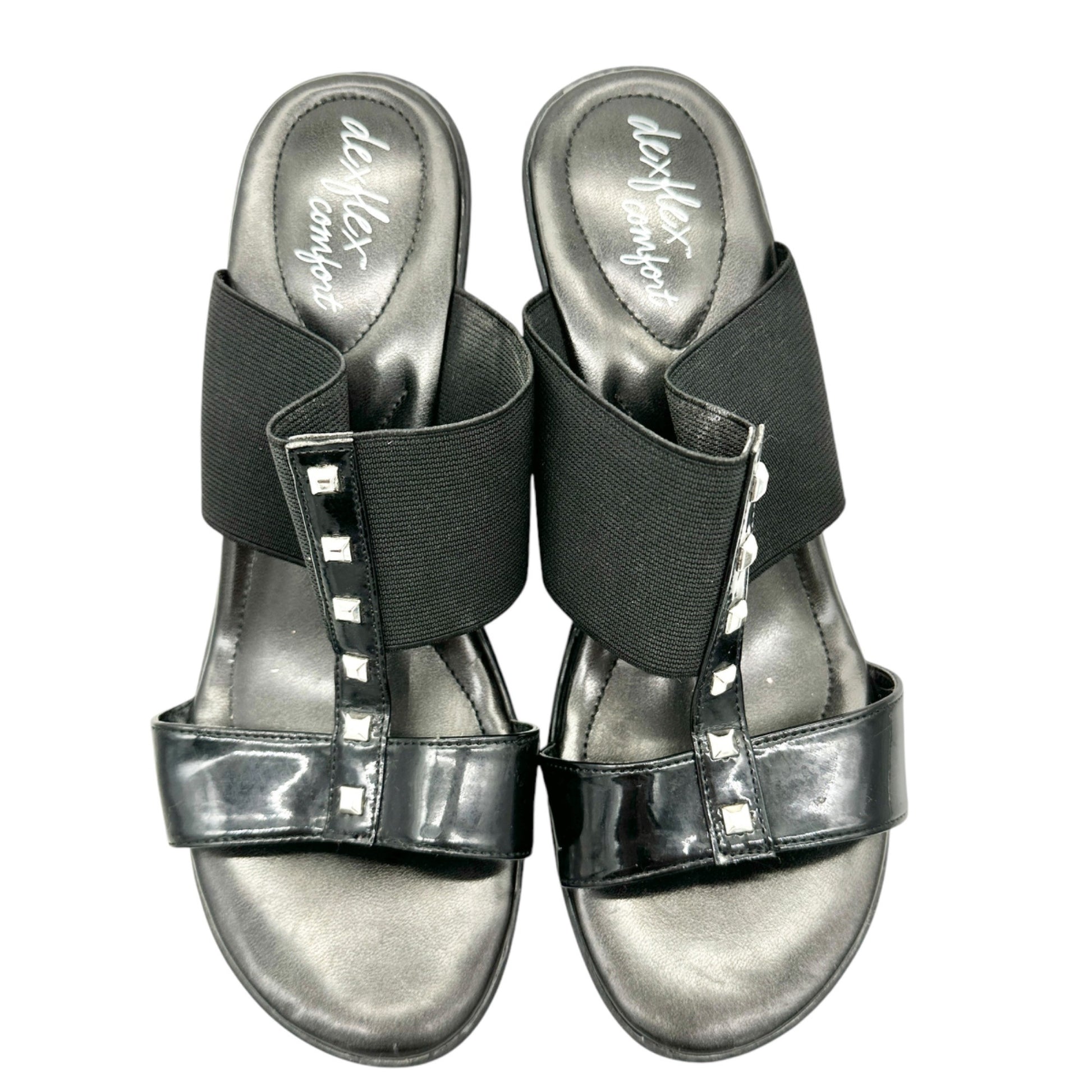 Dexflex Comfort Sandals Size 9 Black 2.5 inch Wedge Heels Studded Straps Slip On