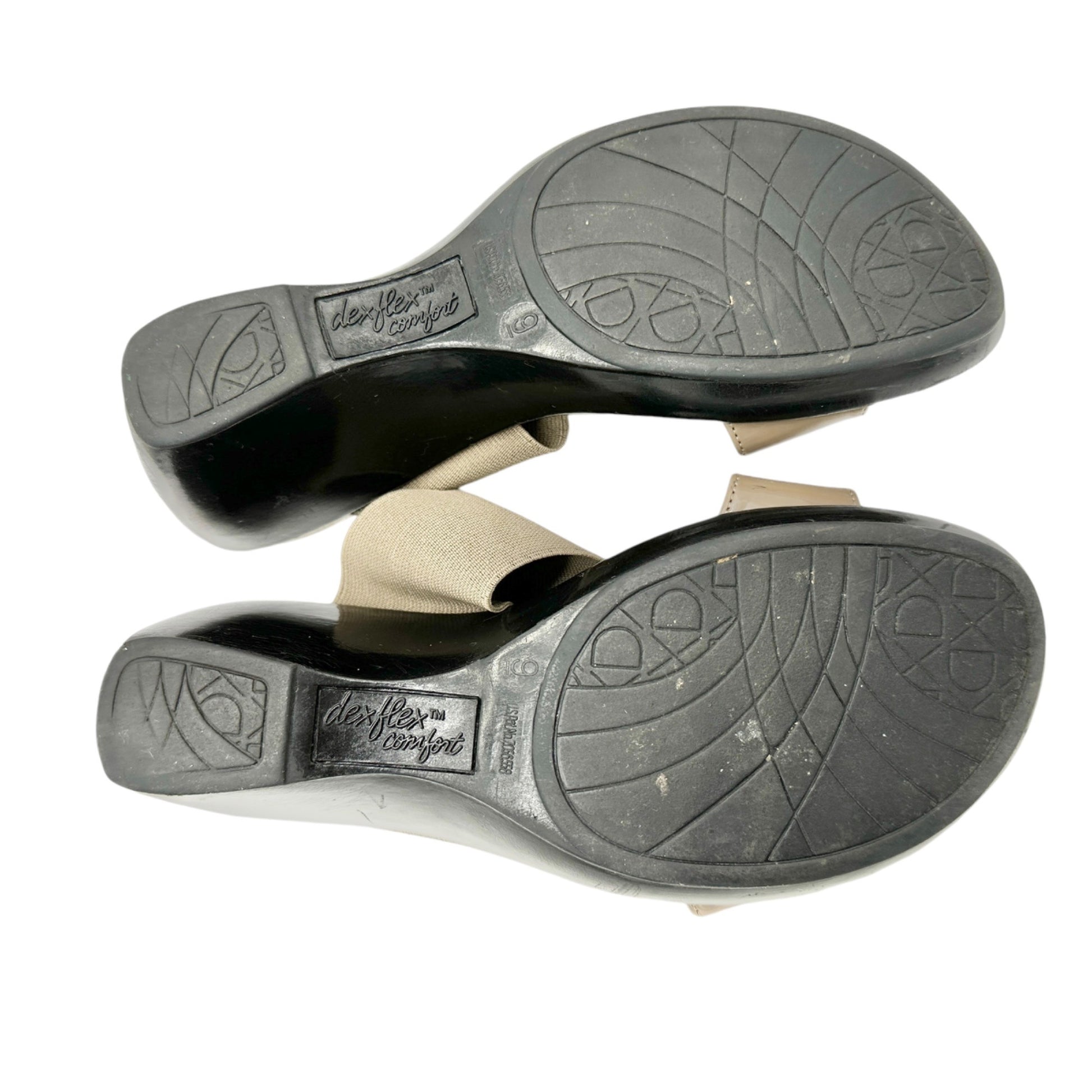 Dexflex Comfort Sandals Size 9 Taupe 2.5 inch Black Wedge Heels Studded Slip On