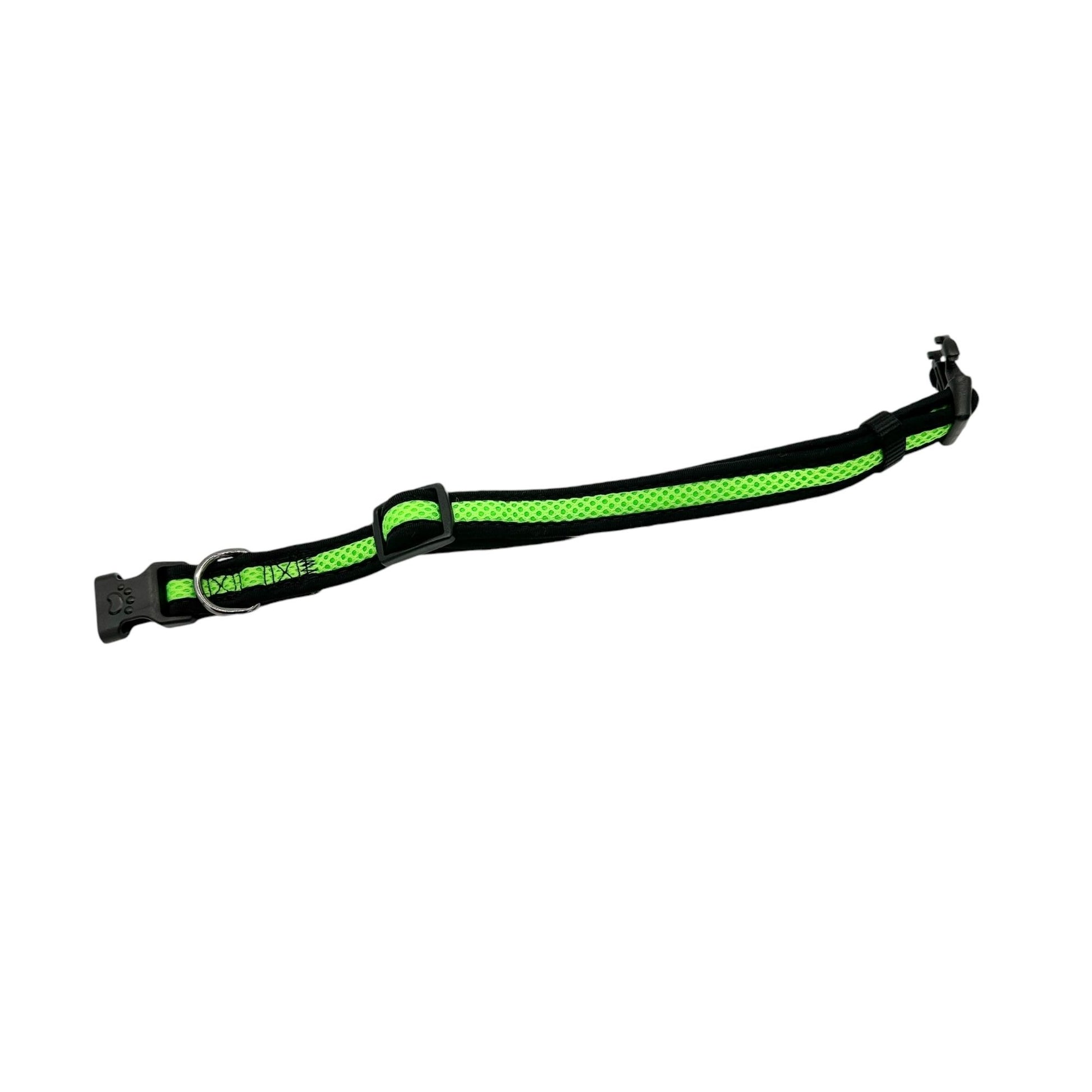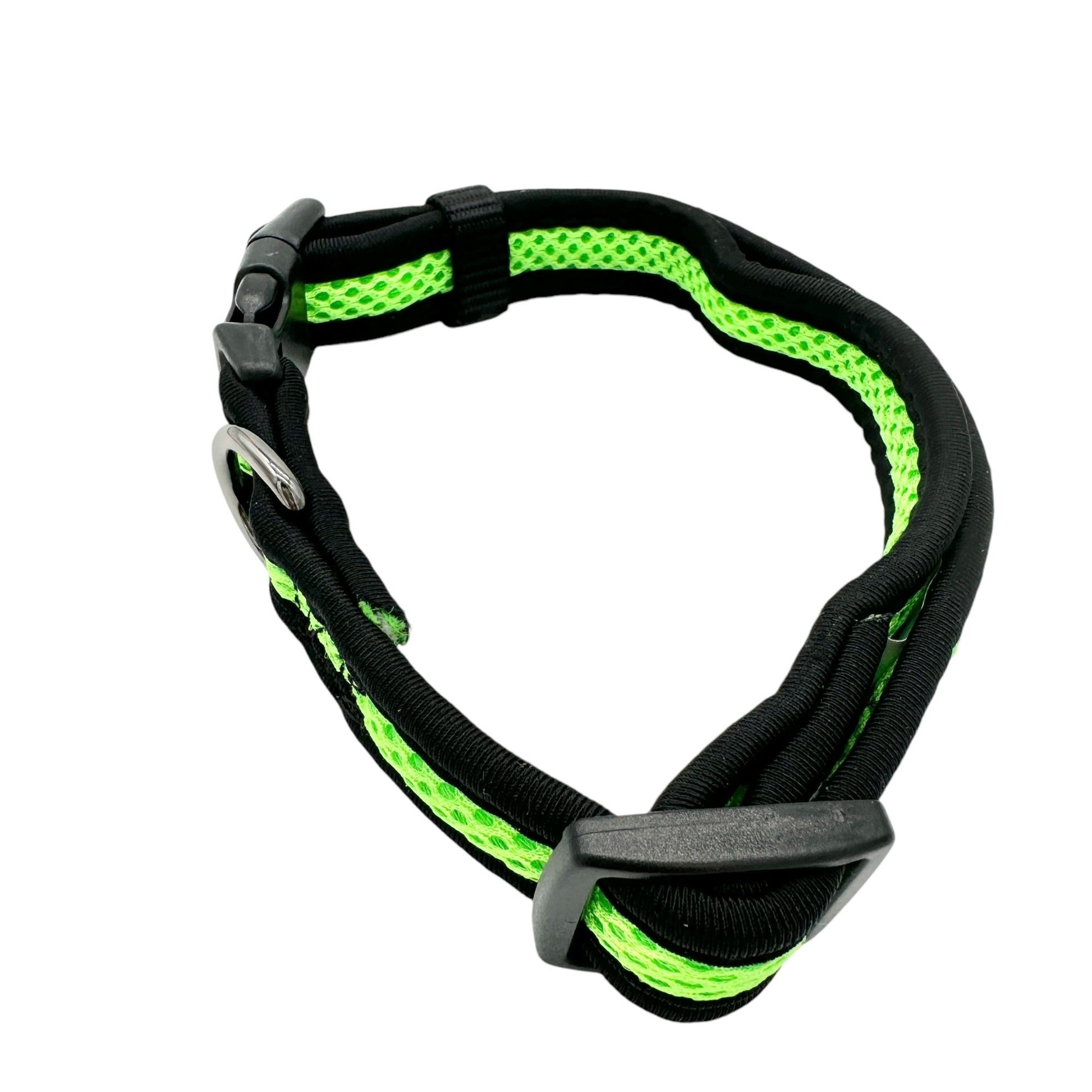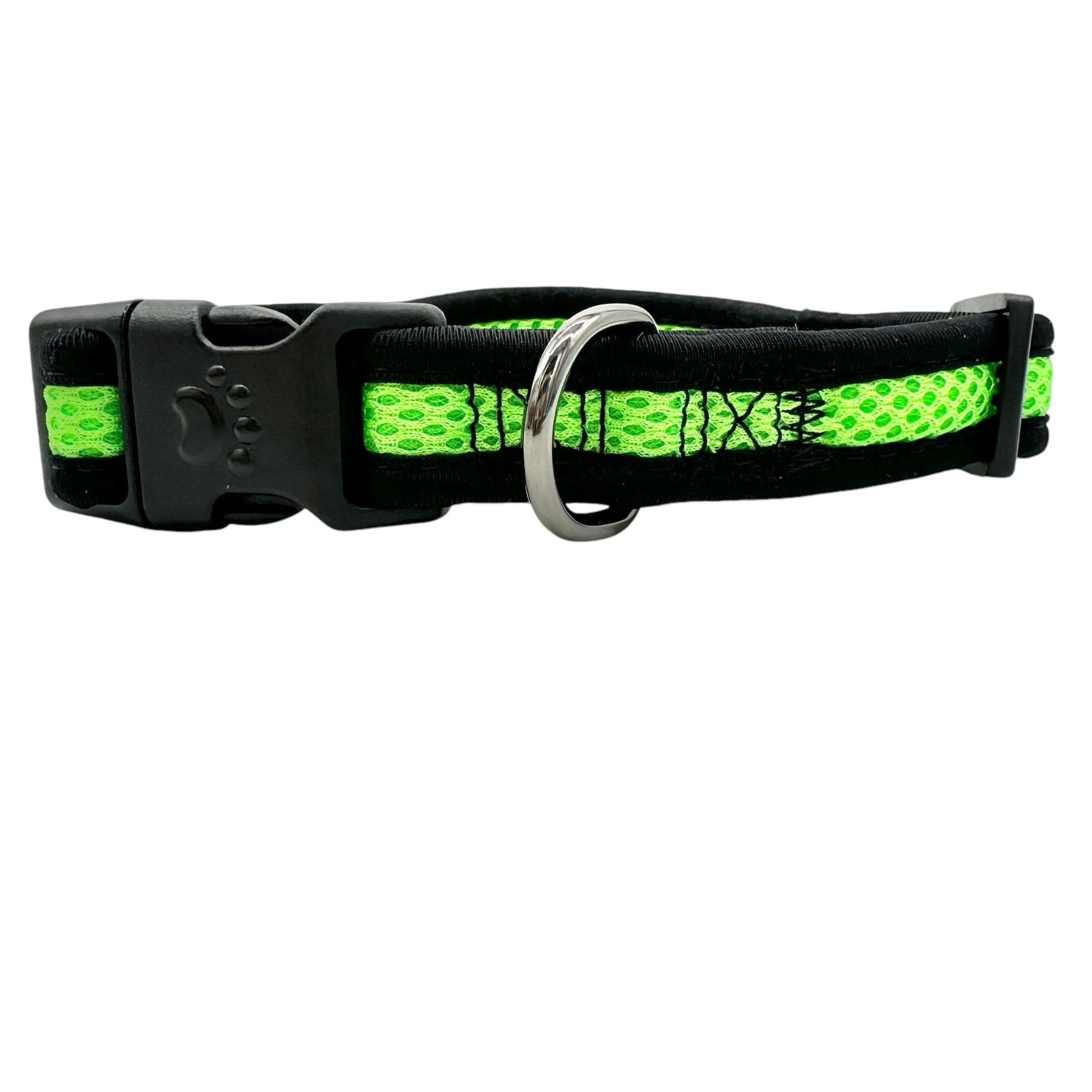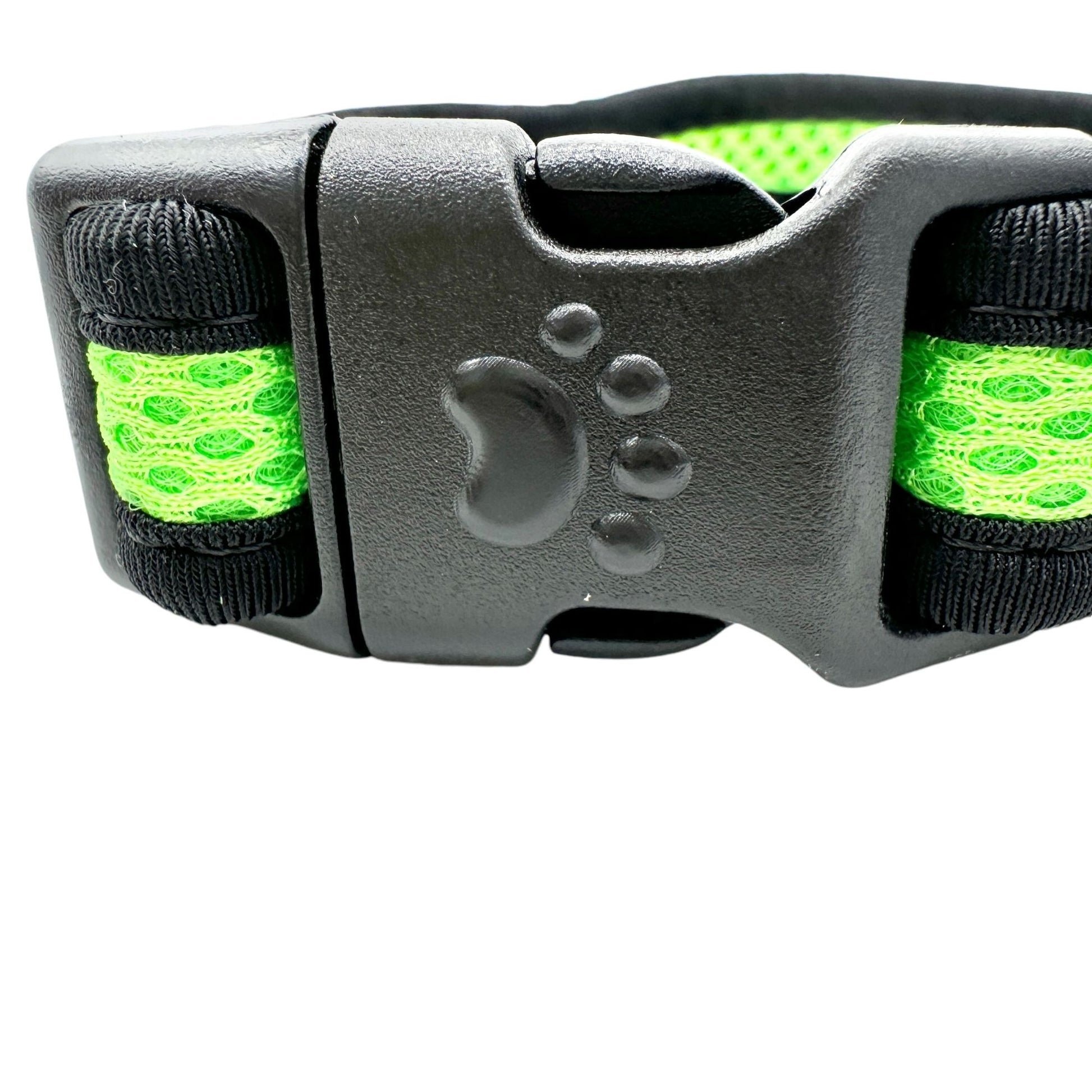 Dog Collar Medium Adjustable Black Green Mesh with Paw Print Buckle