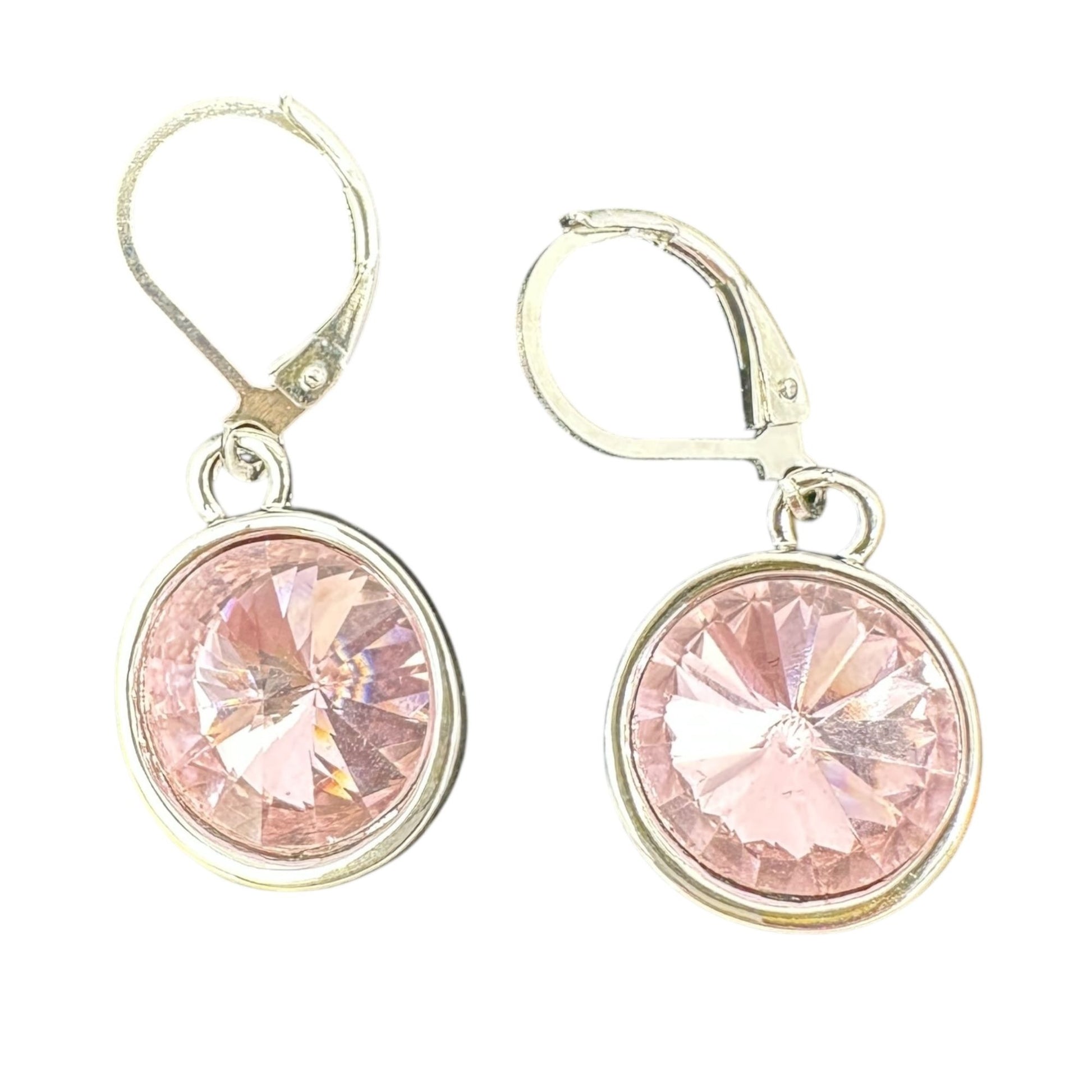 Earrings Pink Crystal and Silvertone Round Leverback Fashion Jewelry NIP
