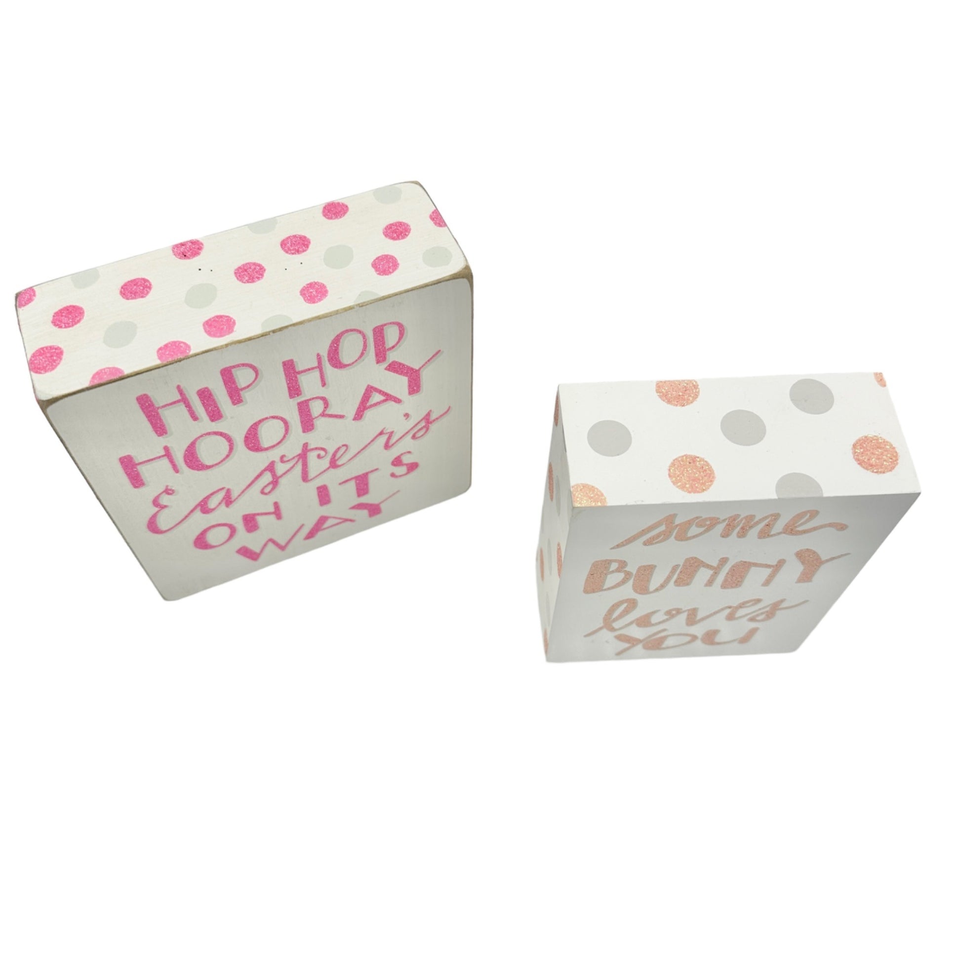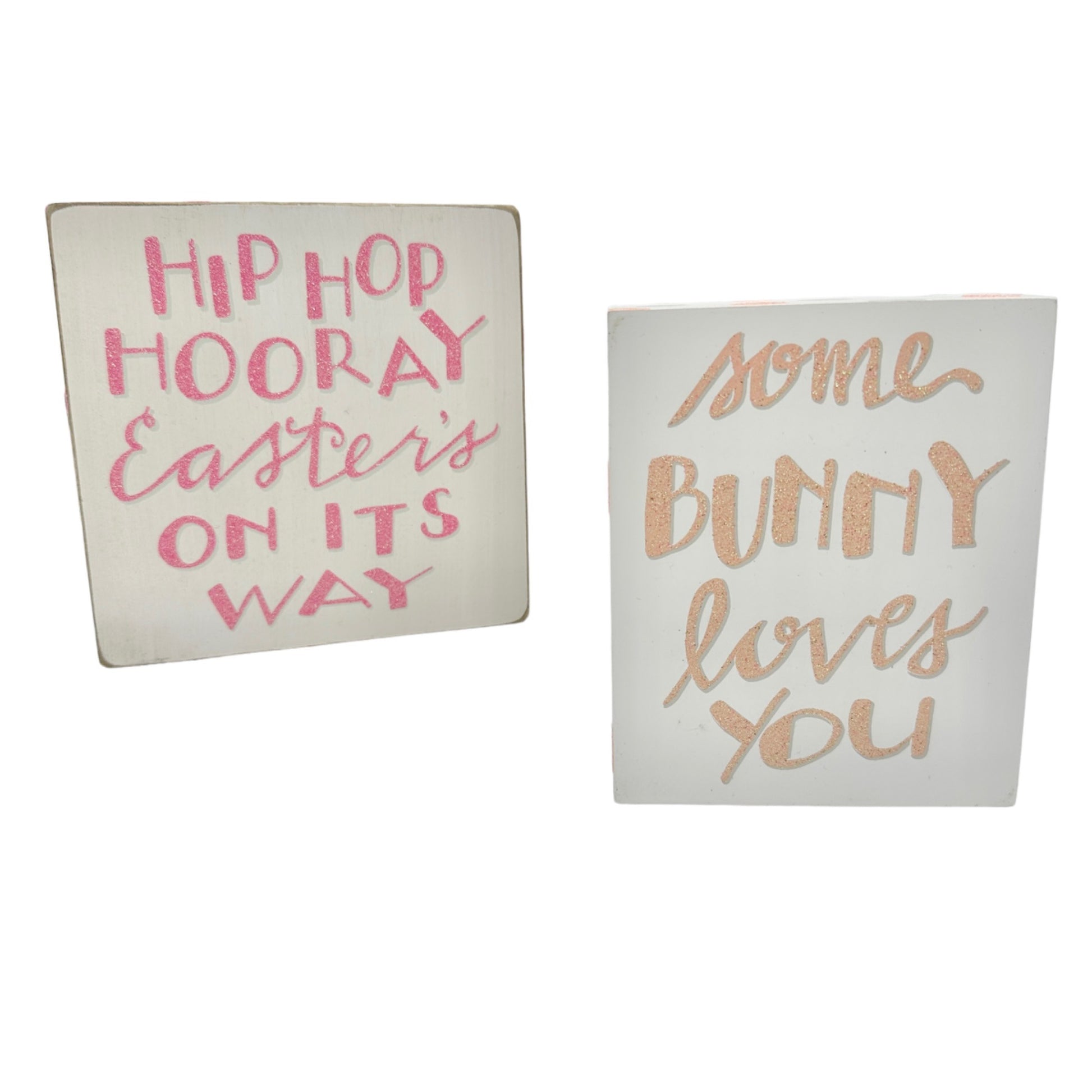 Easter Wooden Box Signs Pair Primitives By Kathy White Pink Glitter - pair of great Easter signs perfect for Spring!