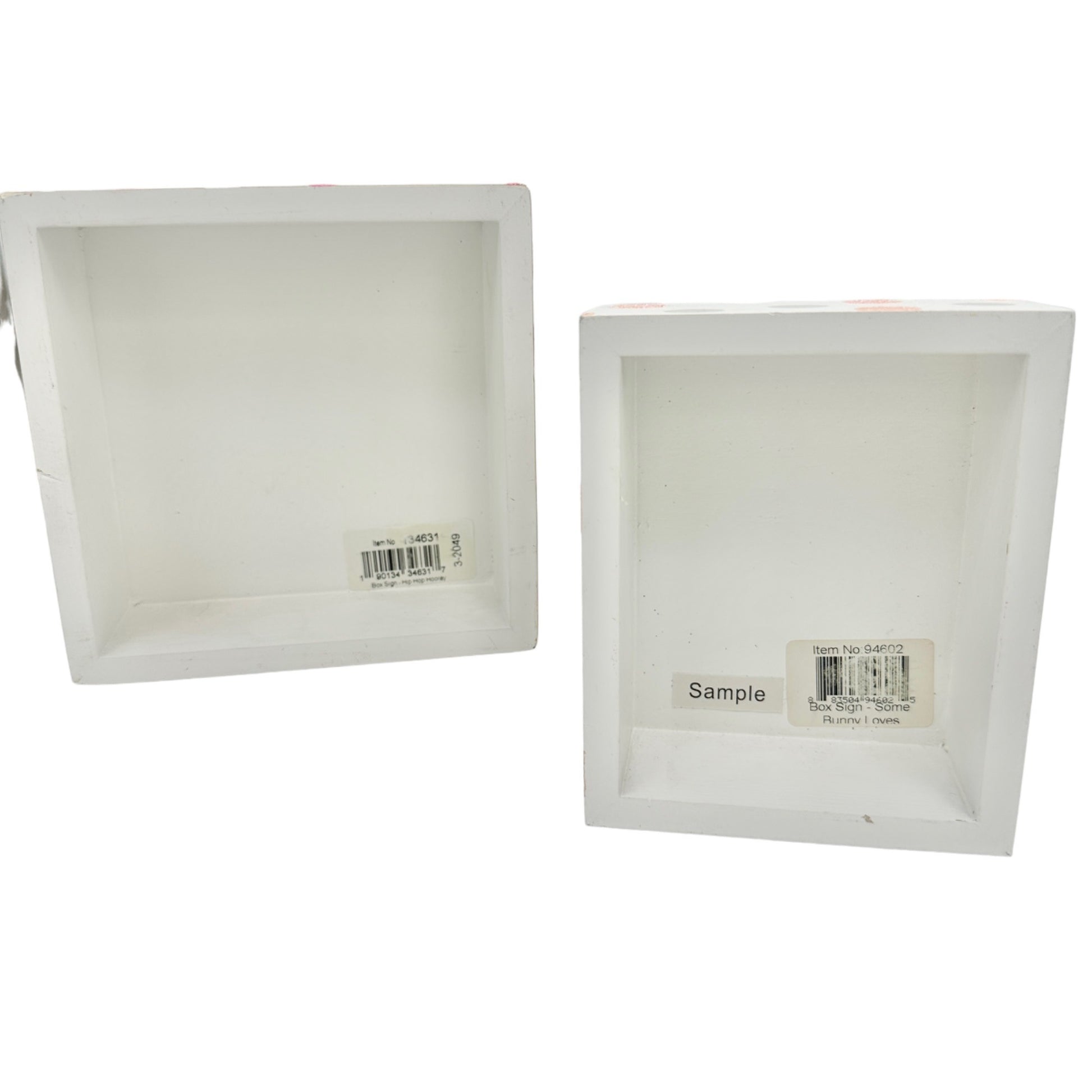 Easter Wooden Box Signs Pair Primitives By Kathy White Pink Glitter New
