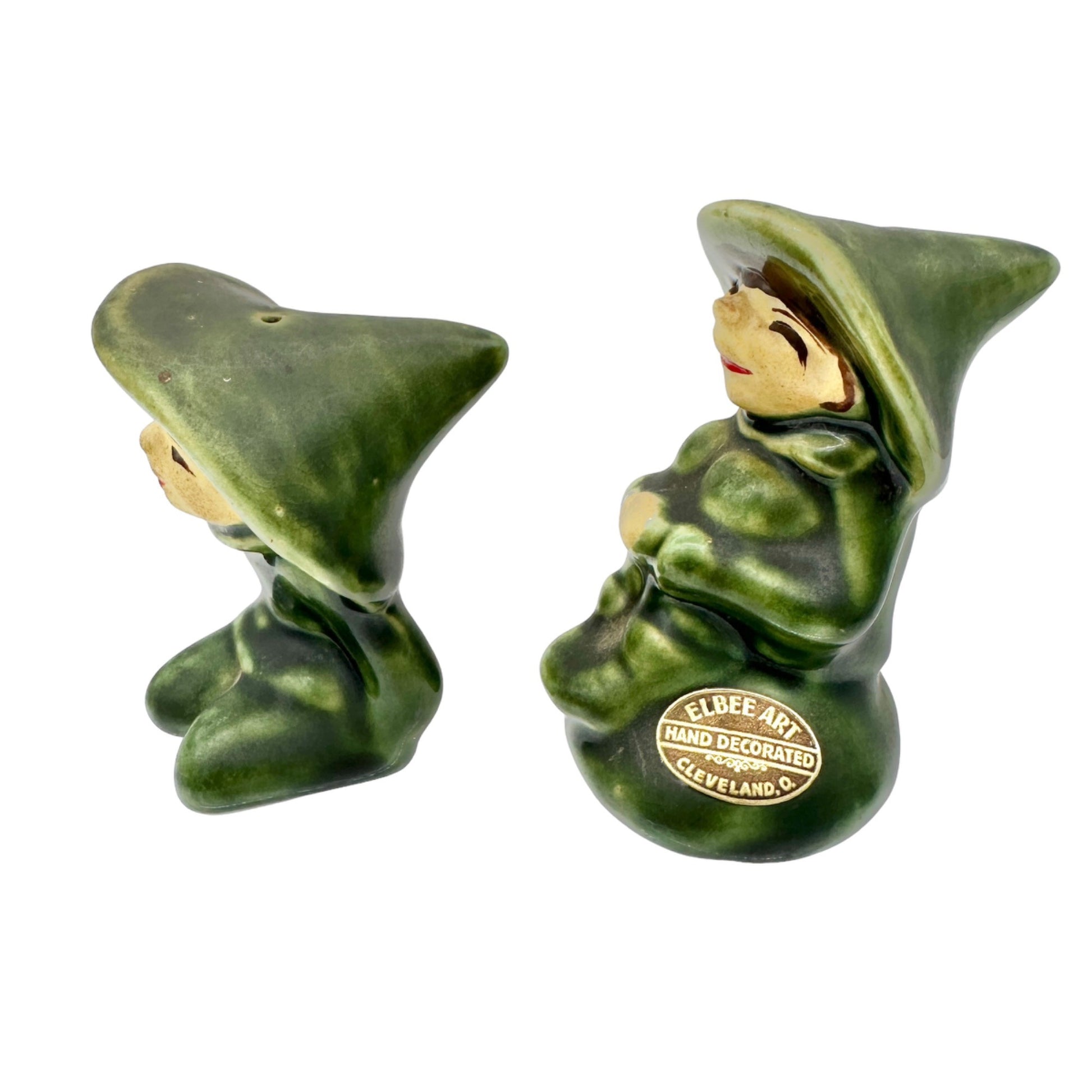 Elbee Art Vintage Salt & Pepper Shakers Set Pixie Elf Pottery Cleveland OH