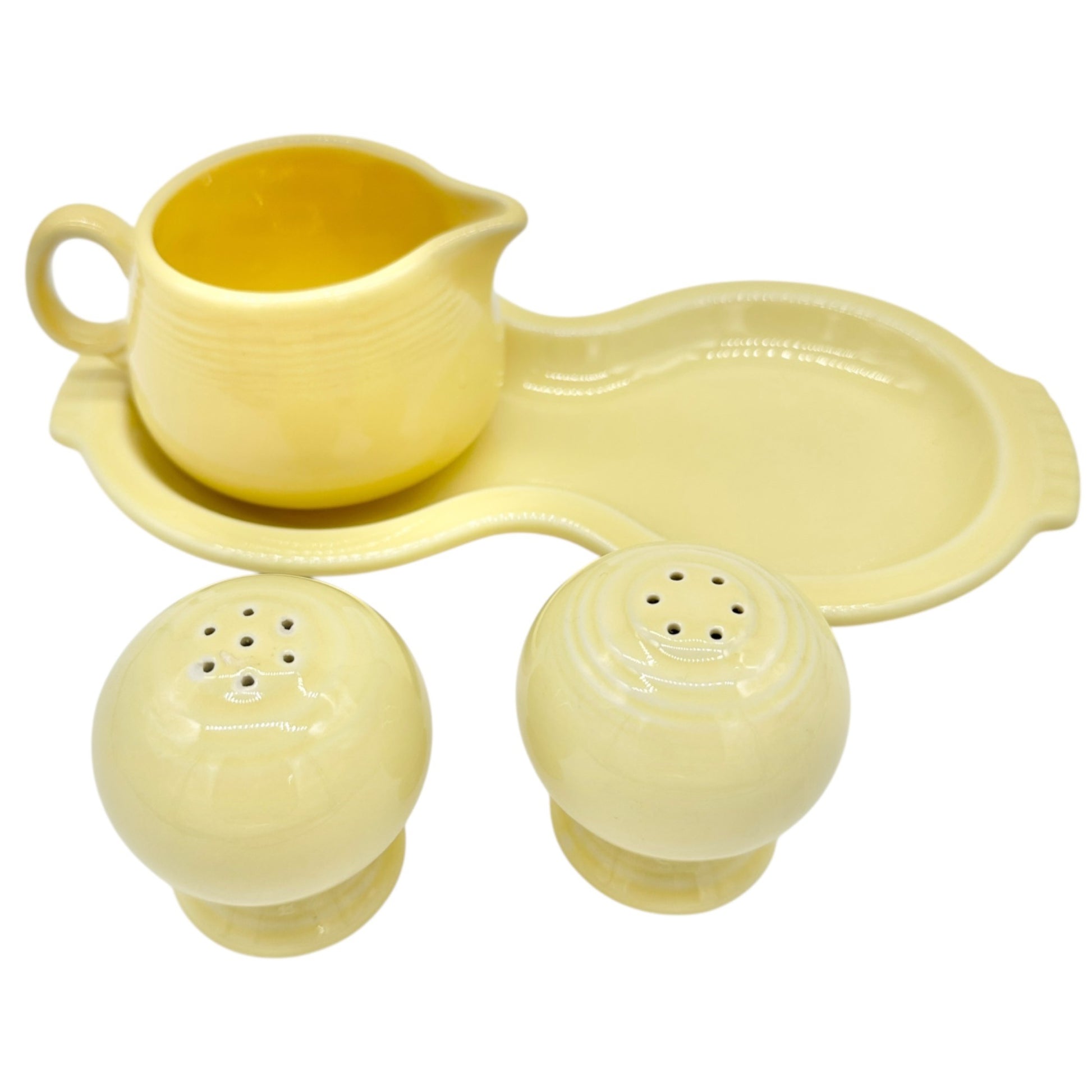 Fiesta Vintage Yellow Salt and Pepper Shakers Creamer with Tray 4pc Set