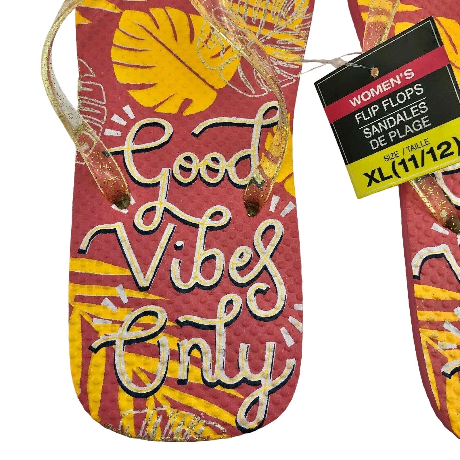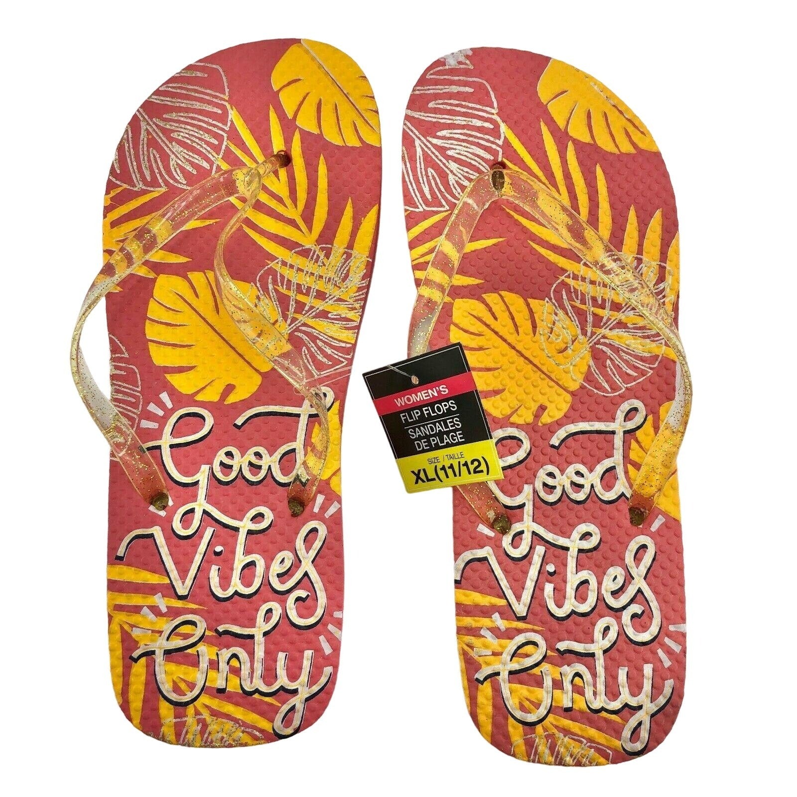 Flip Flops Good Vibes Only Womens XL (11-12) beach pool camping casual NWT