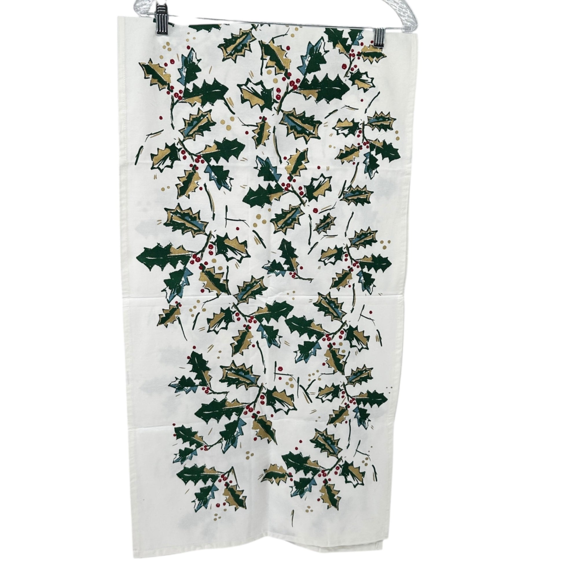 • Features holly and berries design