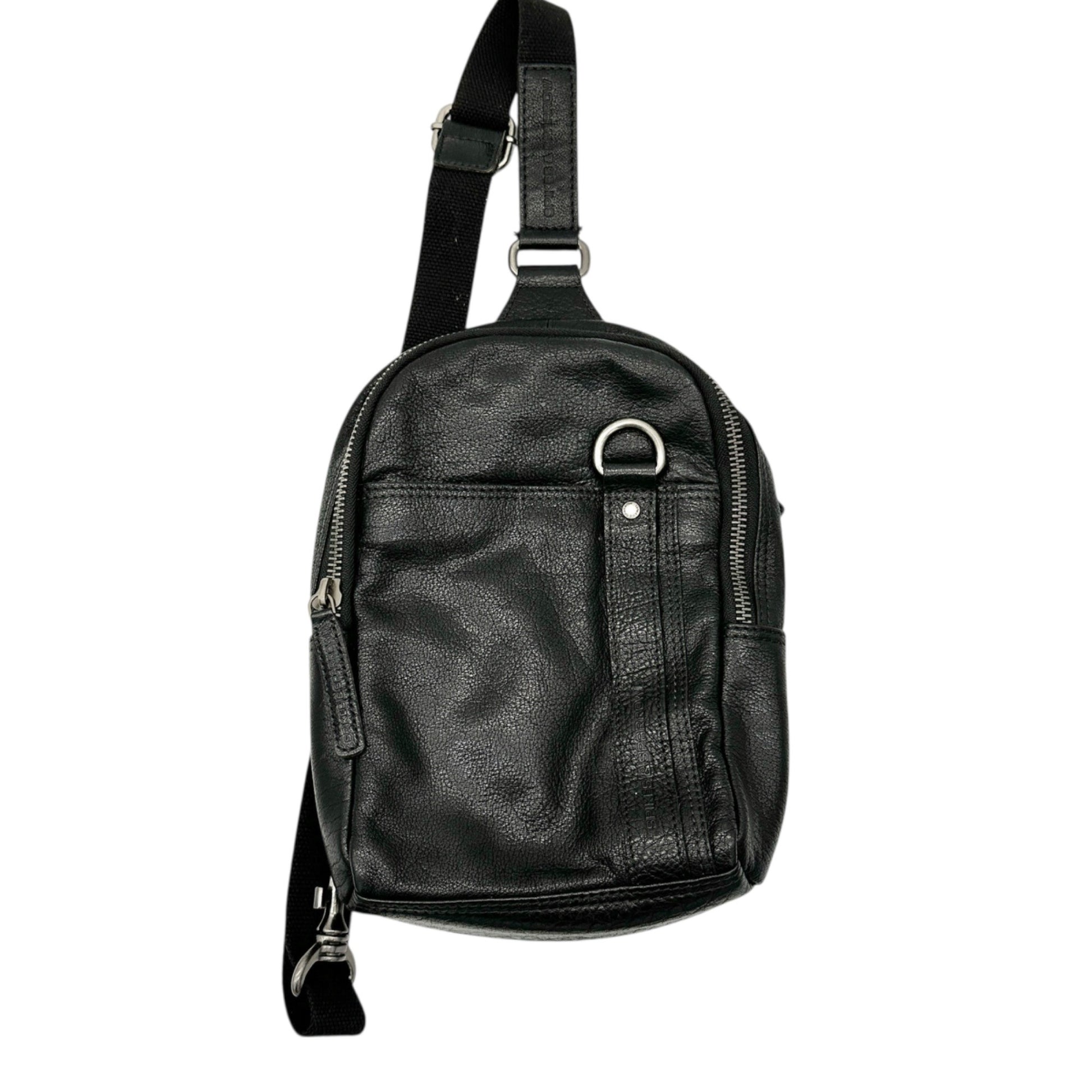 Genuine Leather Black Sling Backpack With Adjustable Strap Spikes & Sparrow