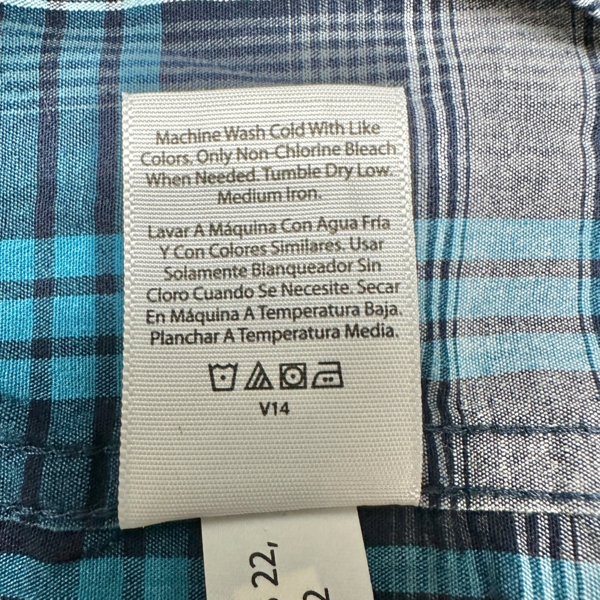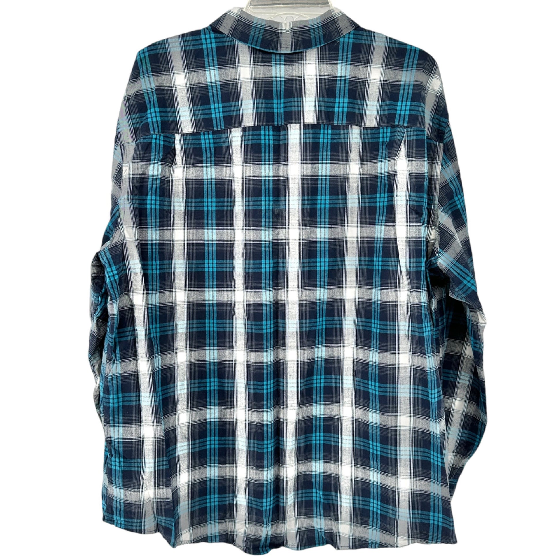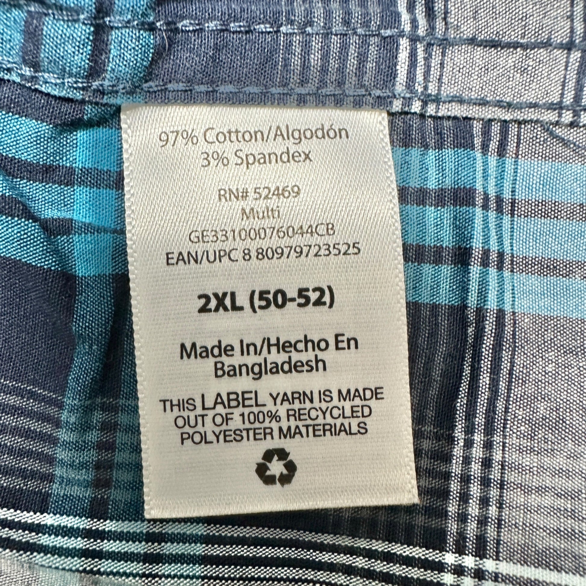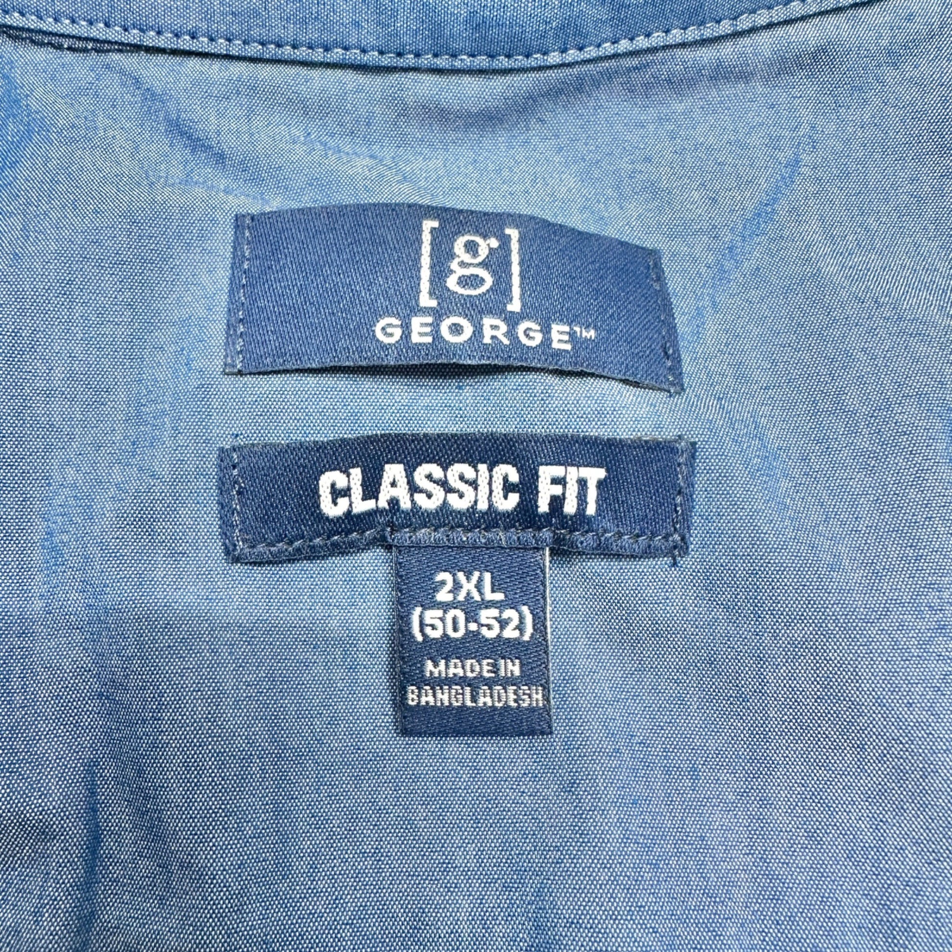 George Classic Fit Plaid Shirt Mens 2XL 50-52 Blue Gray LS Button-Down Collar