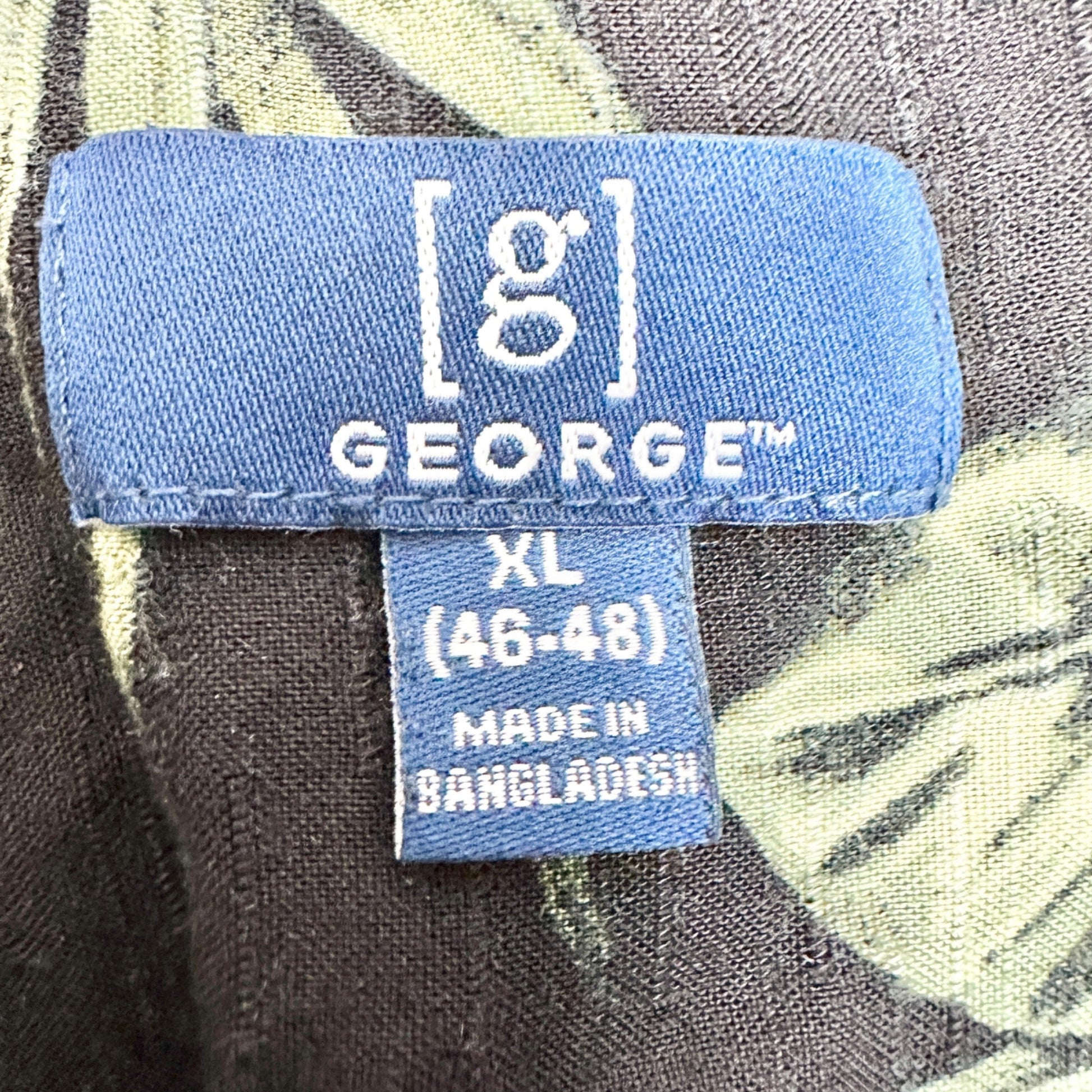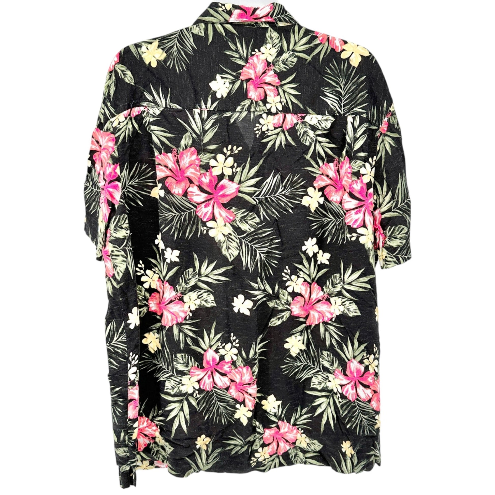 George Hawaiian Shirt Mens XL Black With Pink Floral Print Rayon SS Button-Up