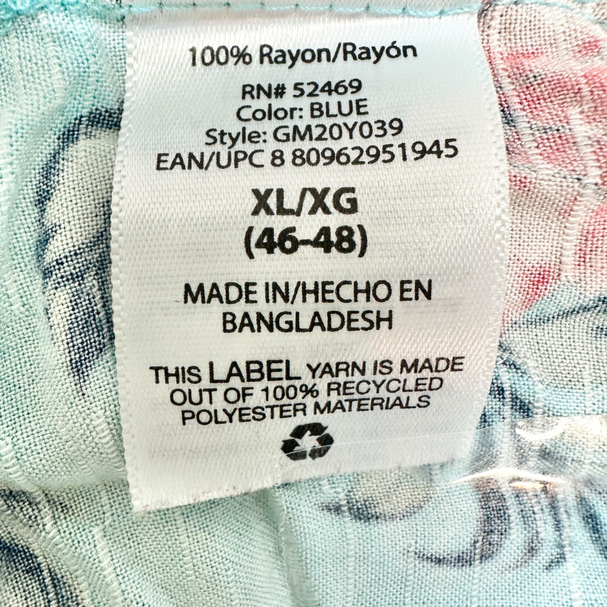 George Tropical Hawaiian Shirt Mens XL Lt Blue Pink Hibiscus Sailboats Rayon SS