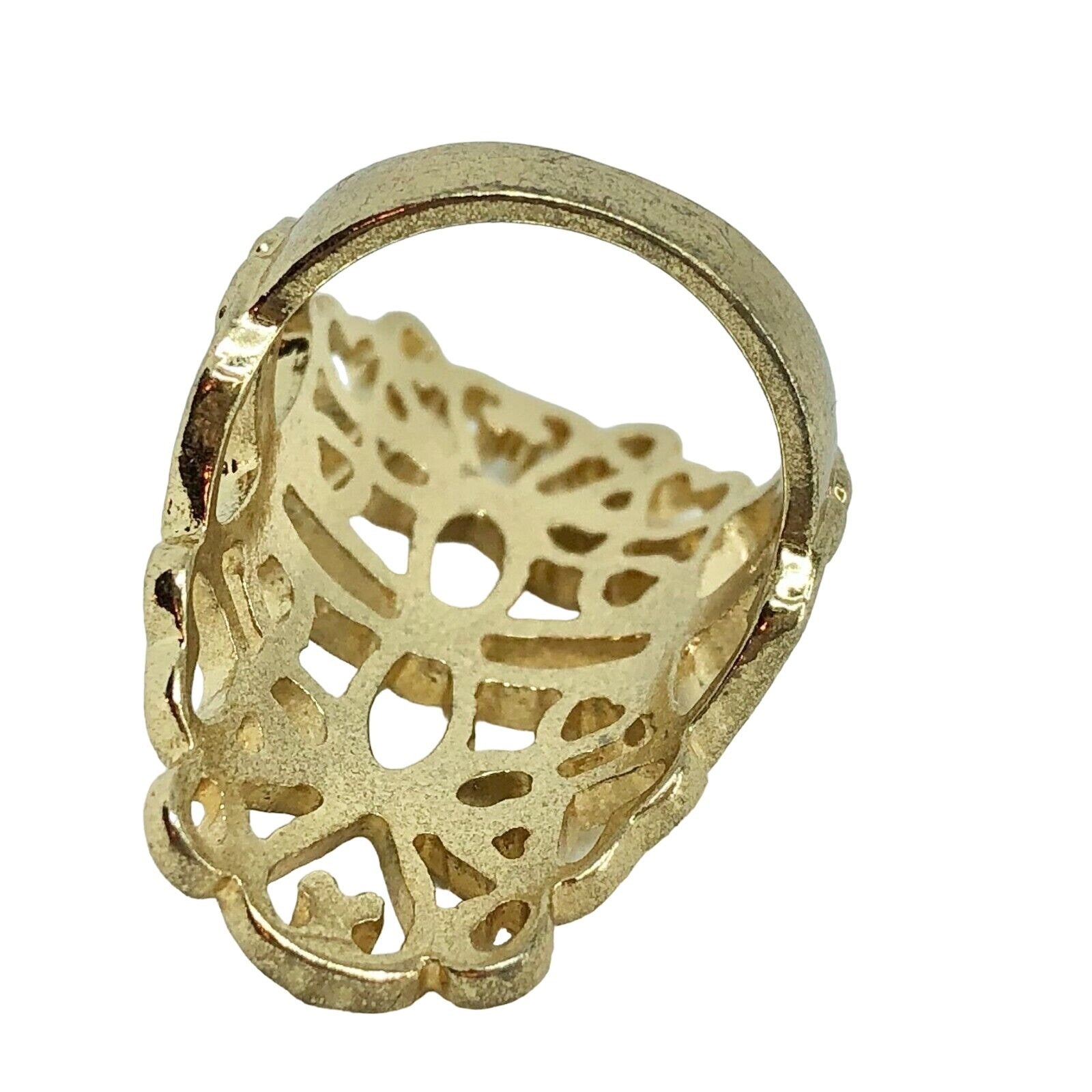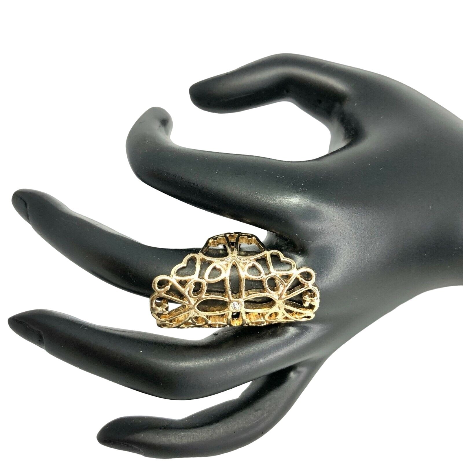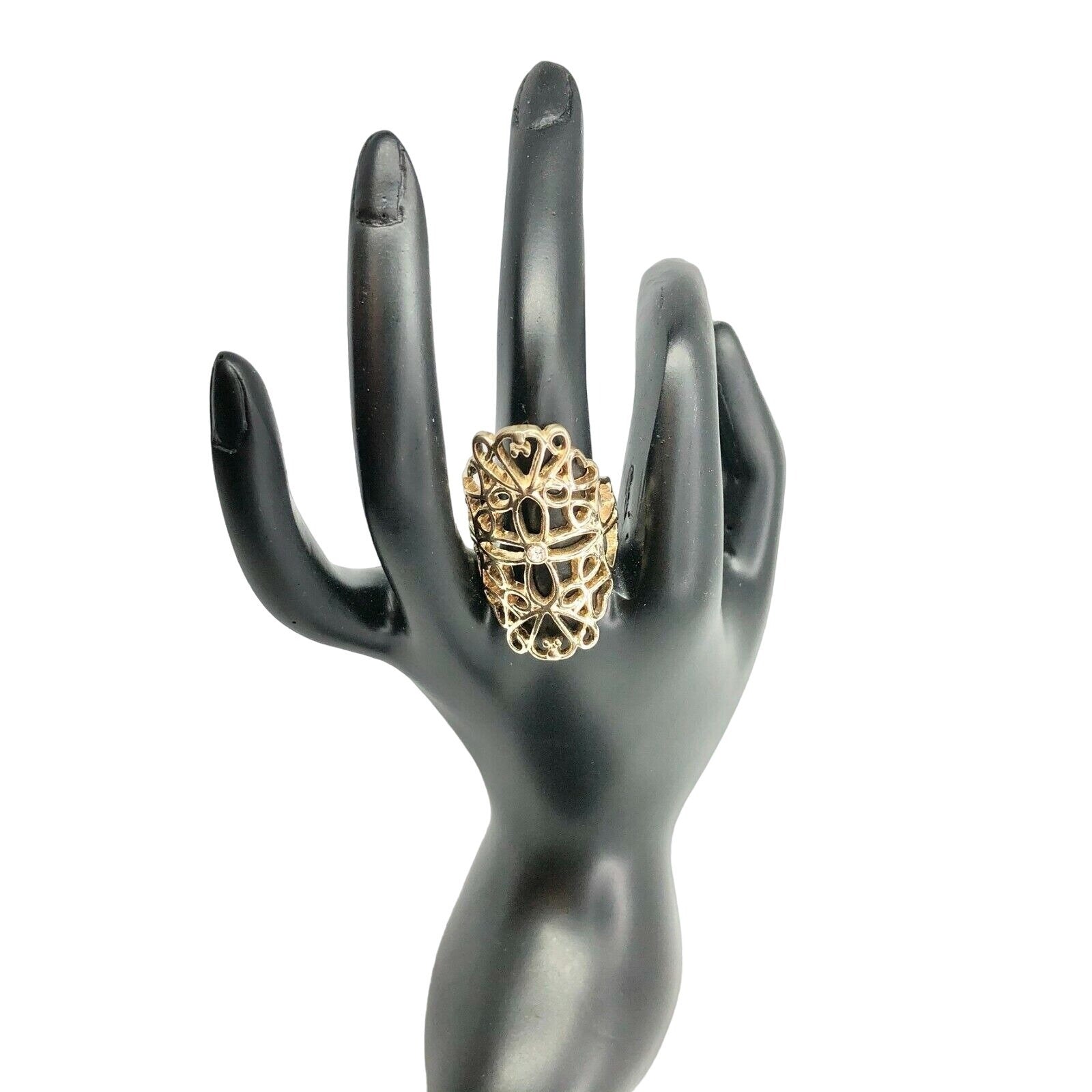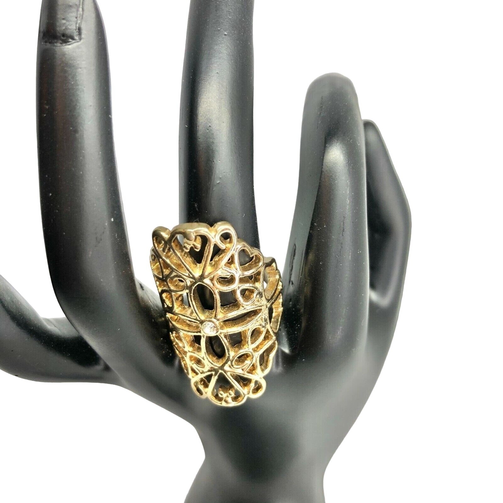 Goldtone Filigree With Crystal Ring Womens Size 6
