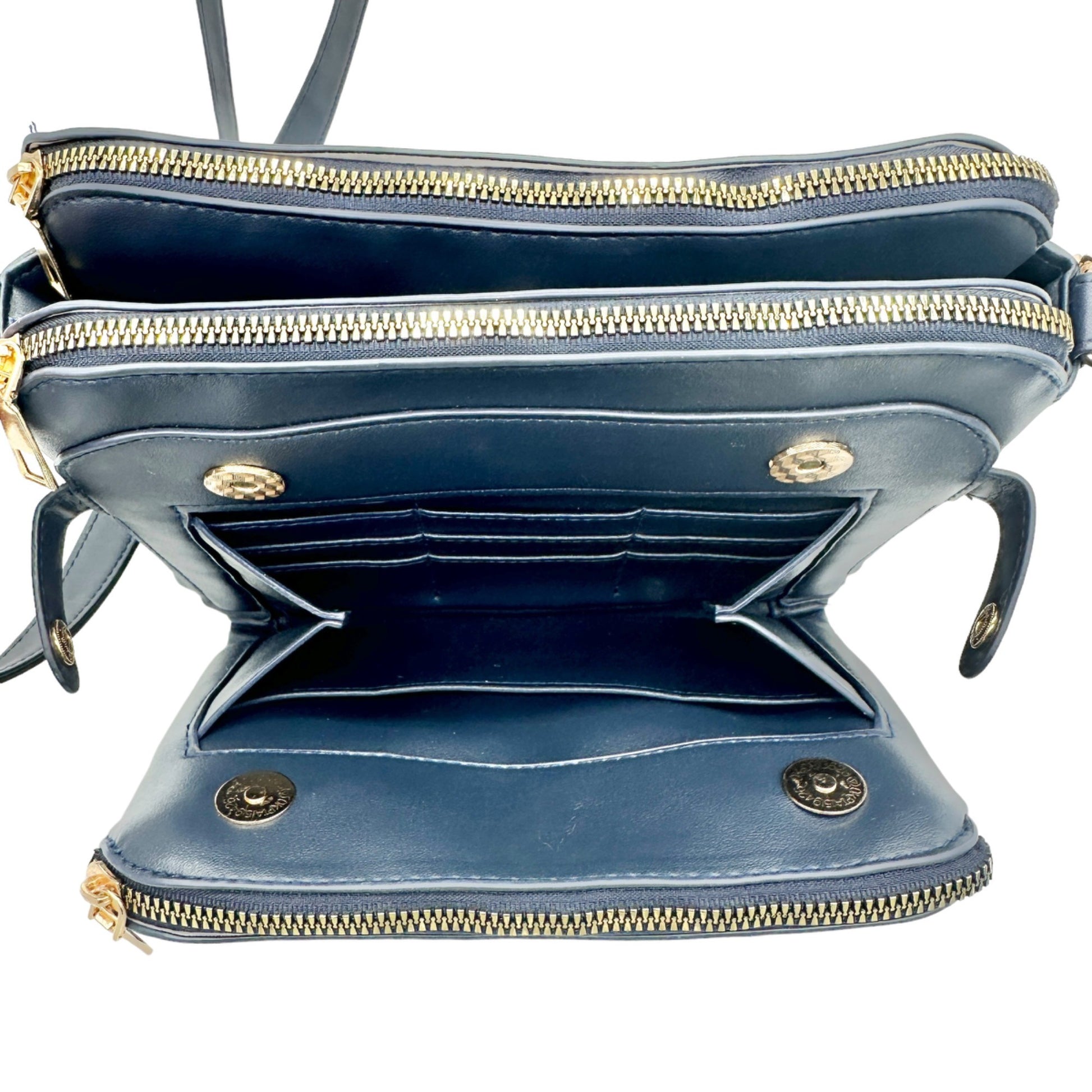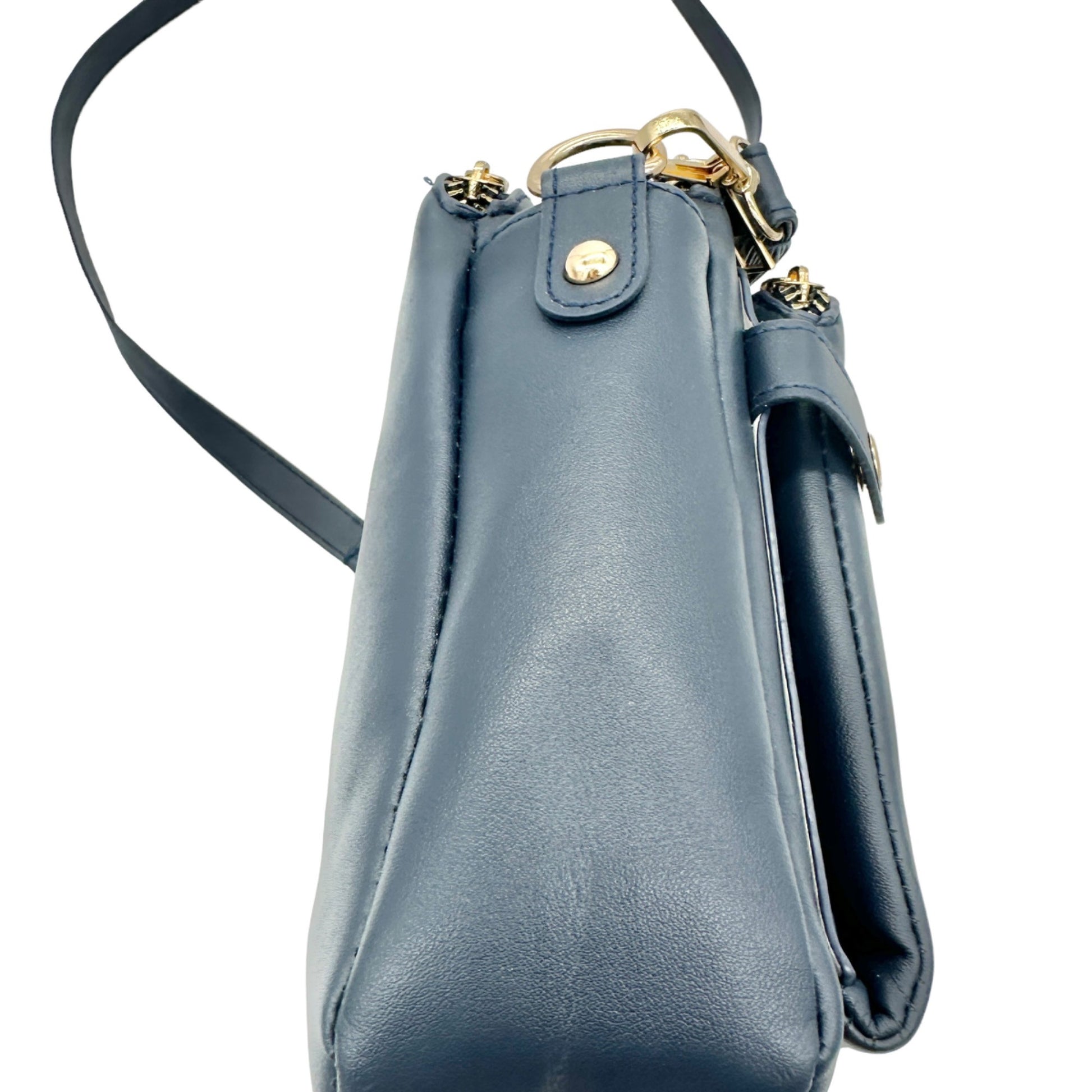 Handbag 10 x 7 x 3.5 Navy Crossbody Adjustable Strap 3 Sections Card Holders EUC