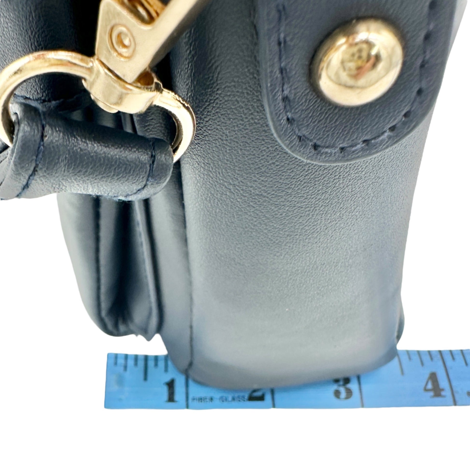 • Gold Hardware, Navy blue bag