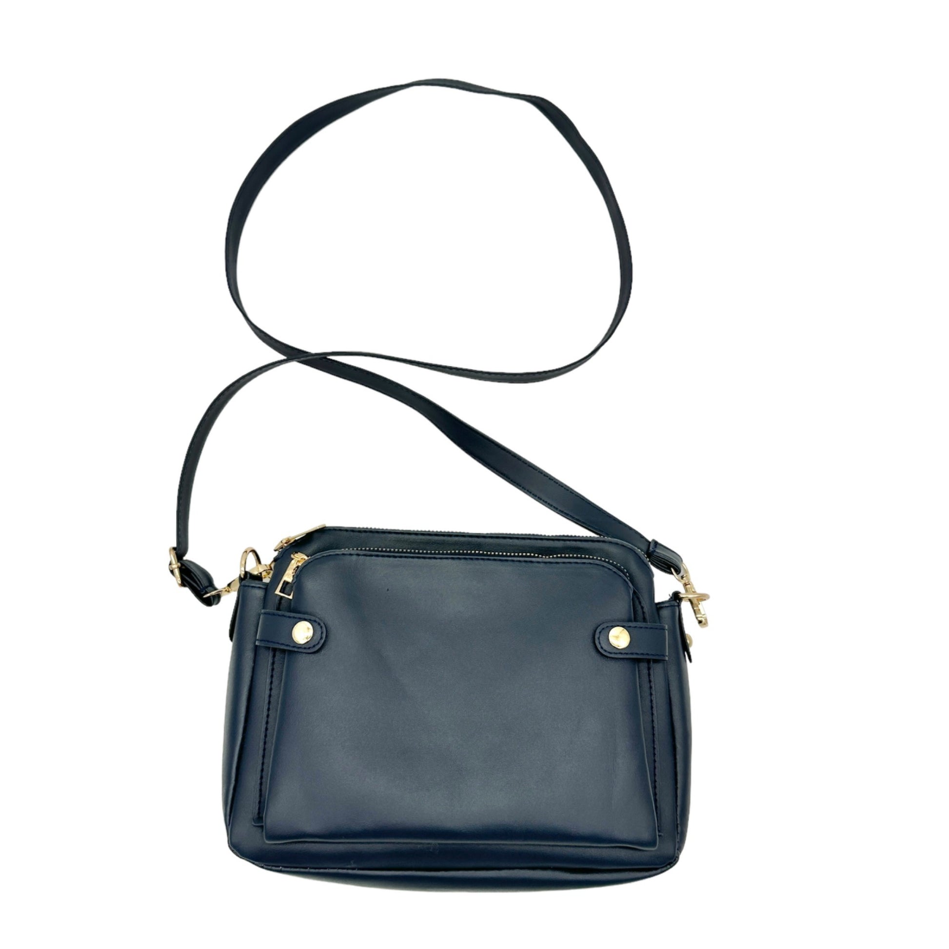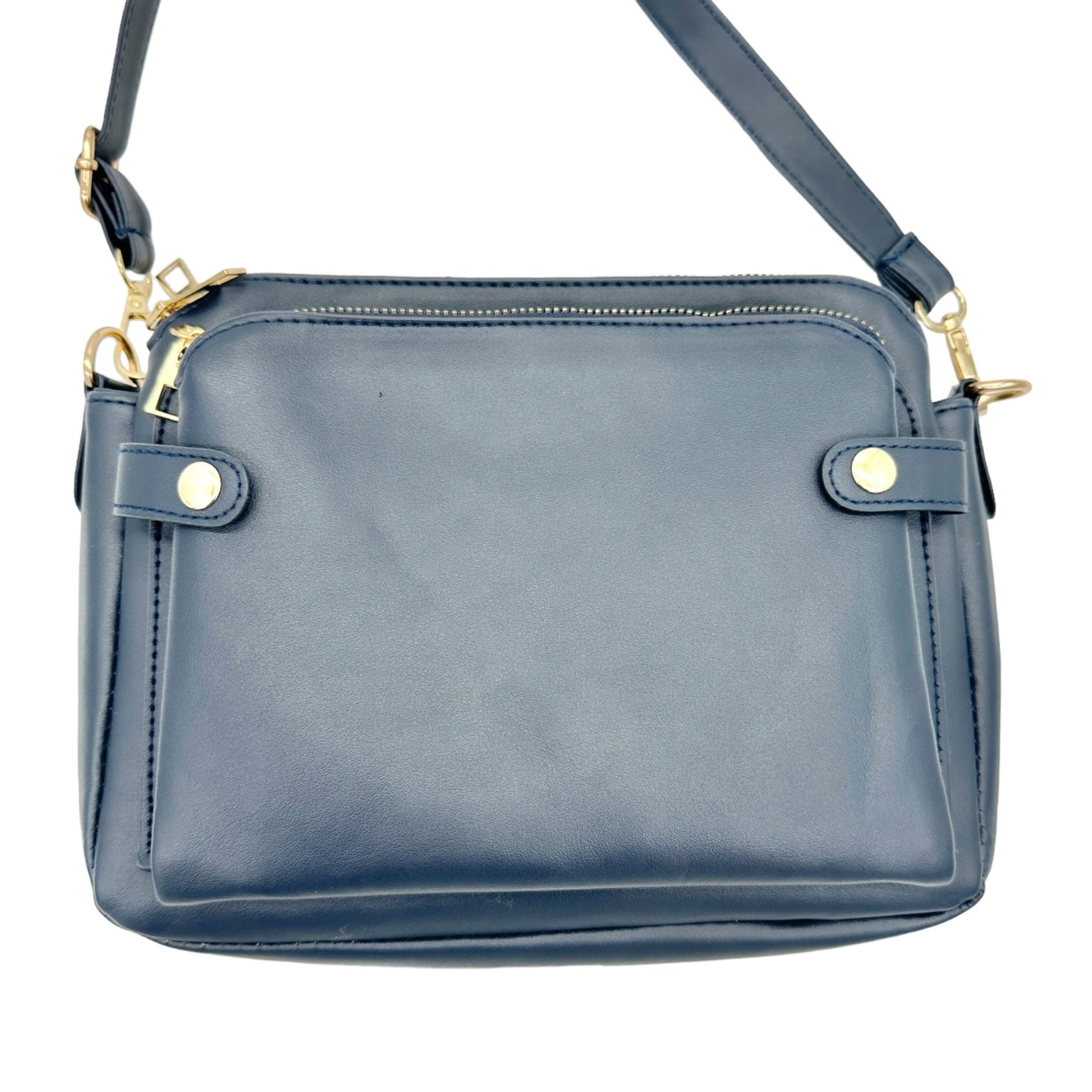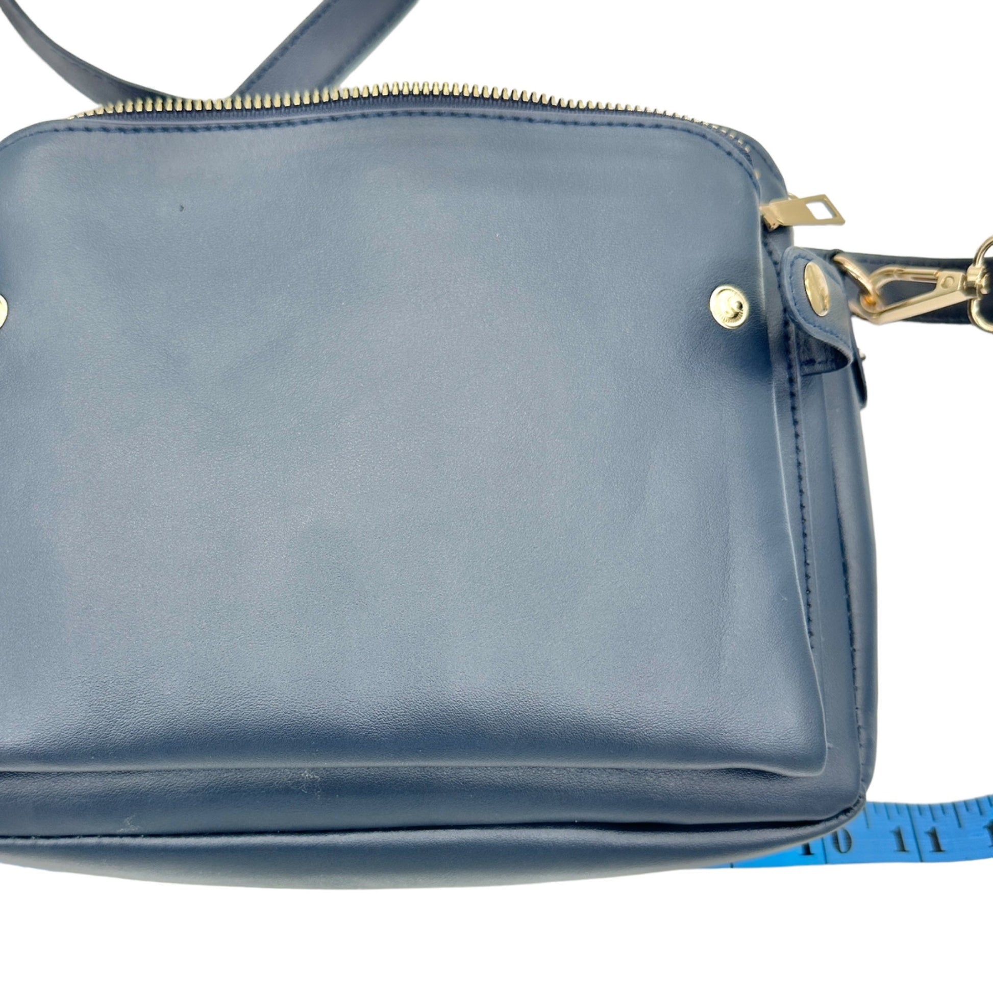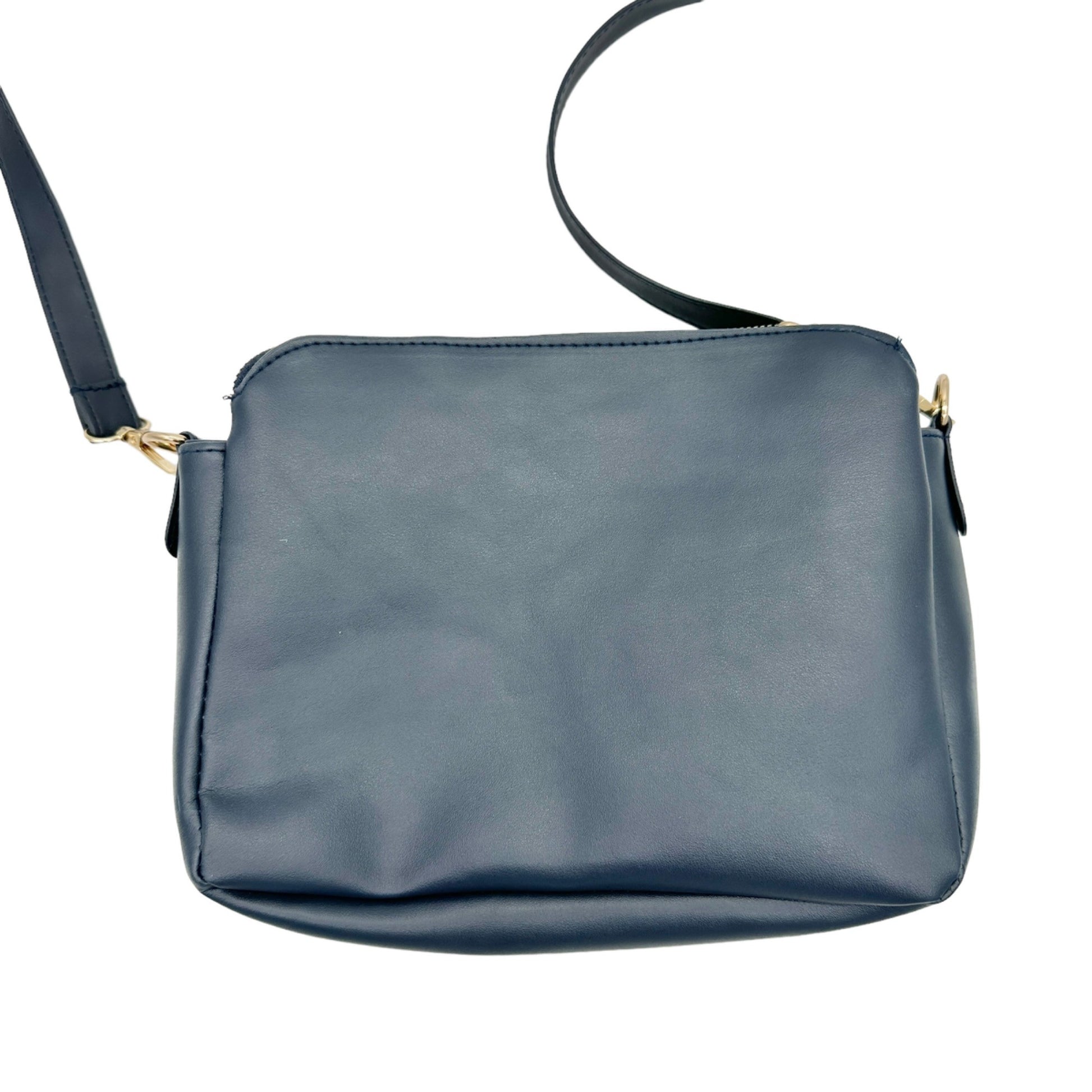 Handbag 10 x 7 x 3.5 Navy Crossbody Removable Adjustable Strap 3 Sections Card Holders Interior Pockets Gold Hardware EUC - with different sections, pockets and card holder slots, this is the perfect travel and work bag.