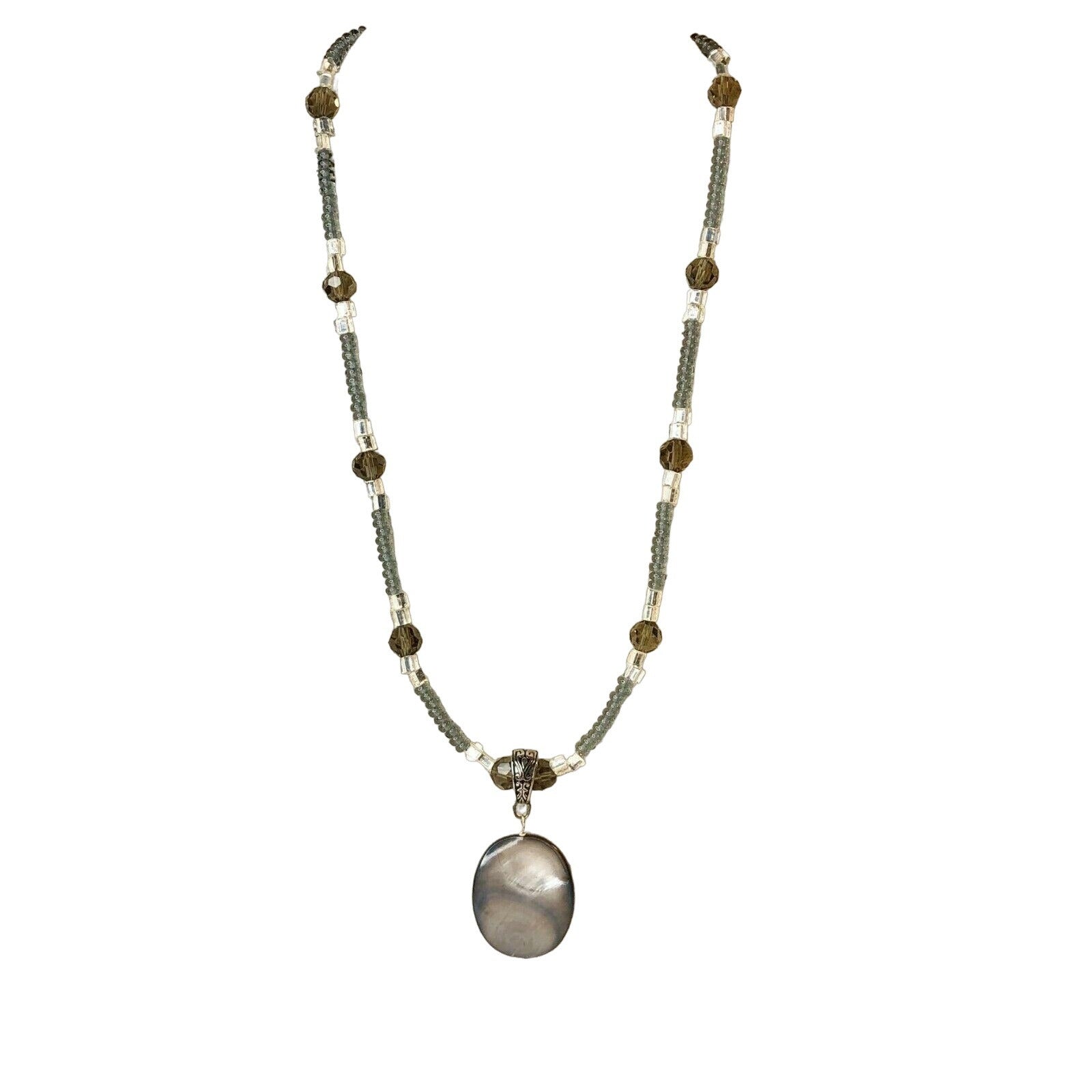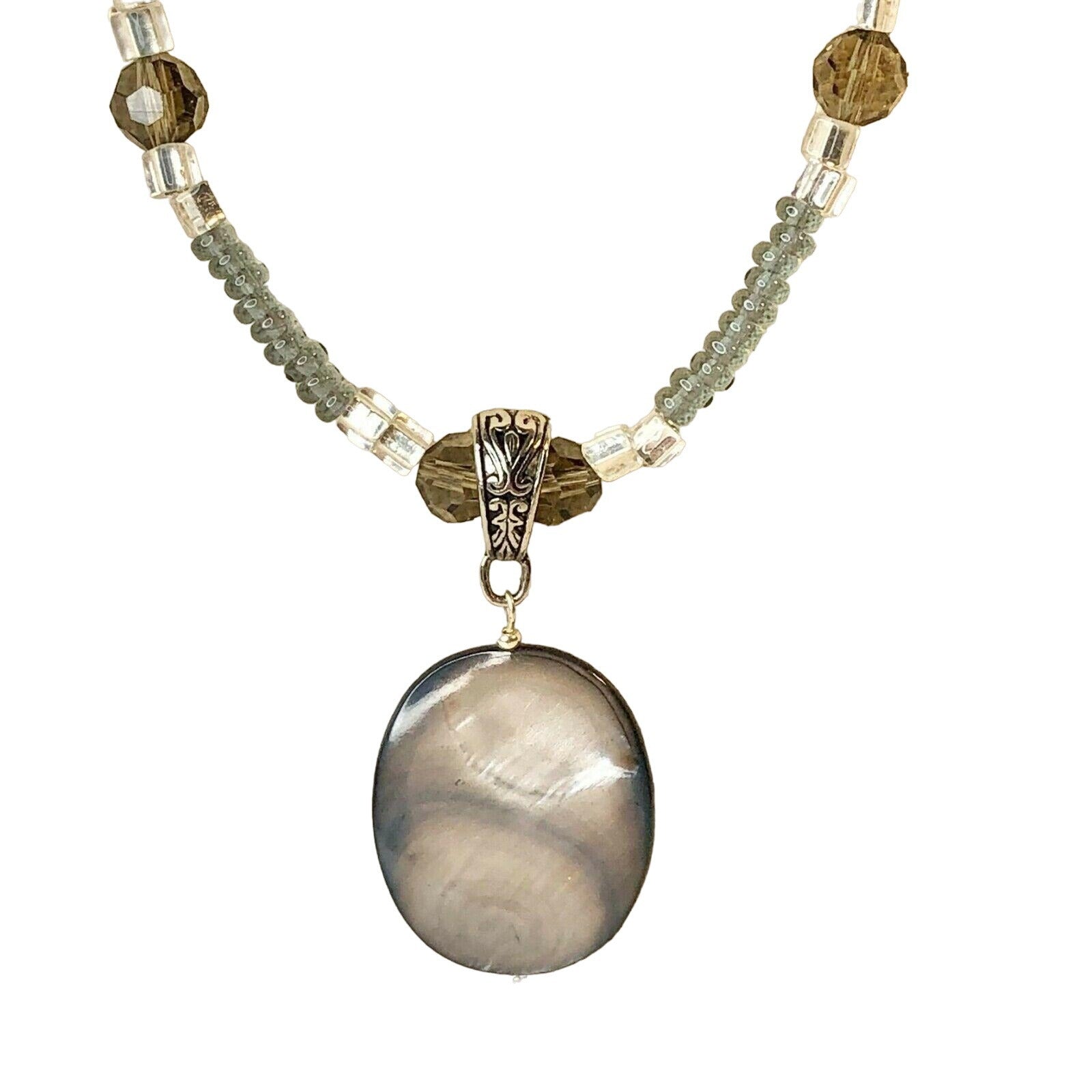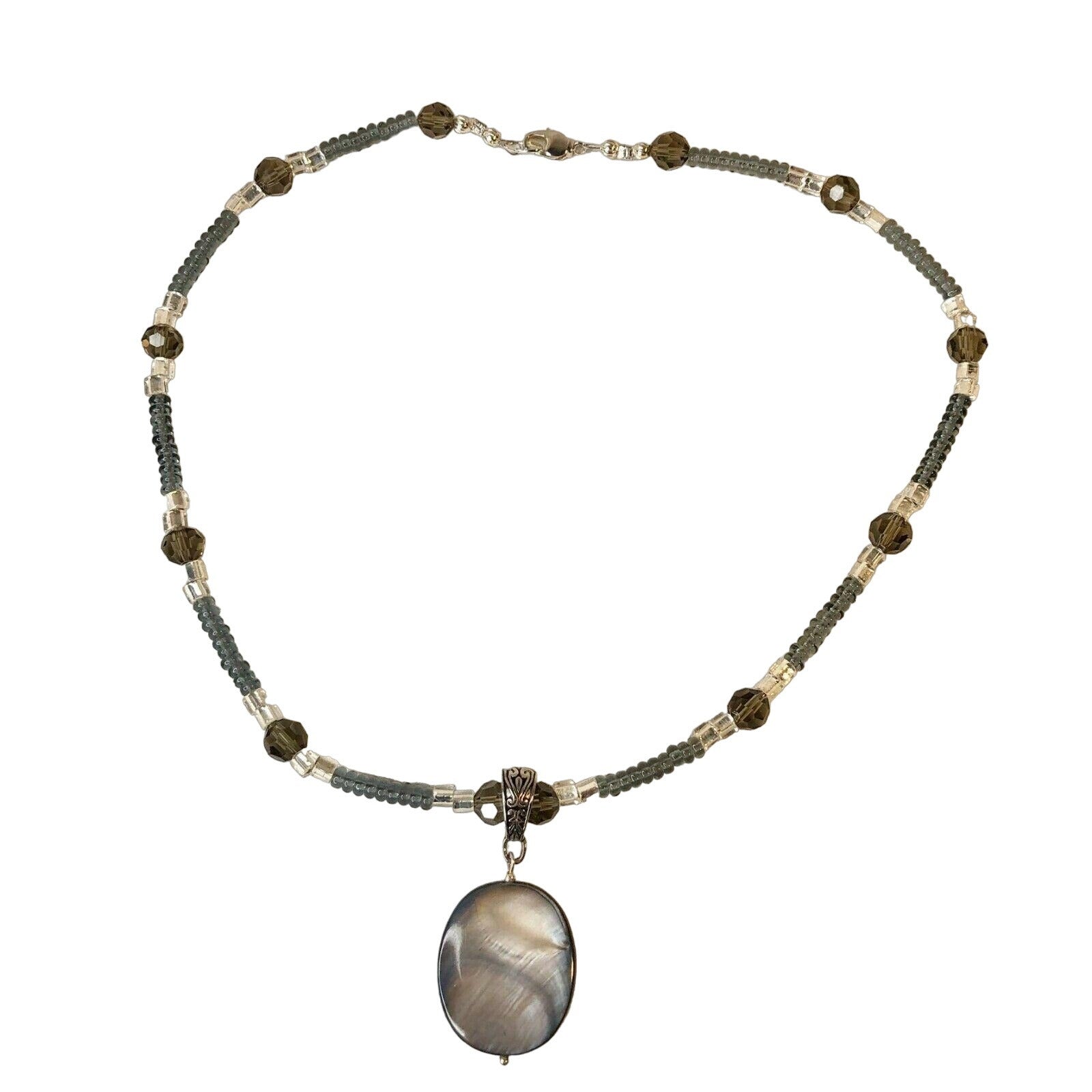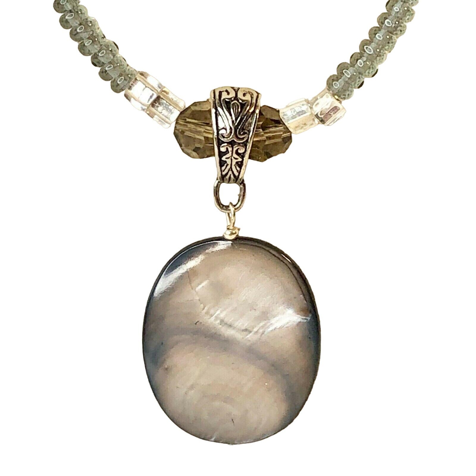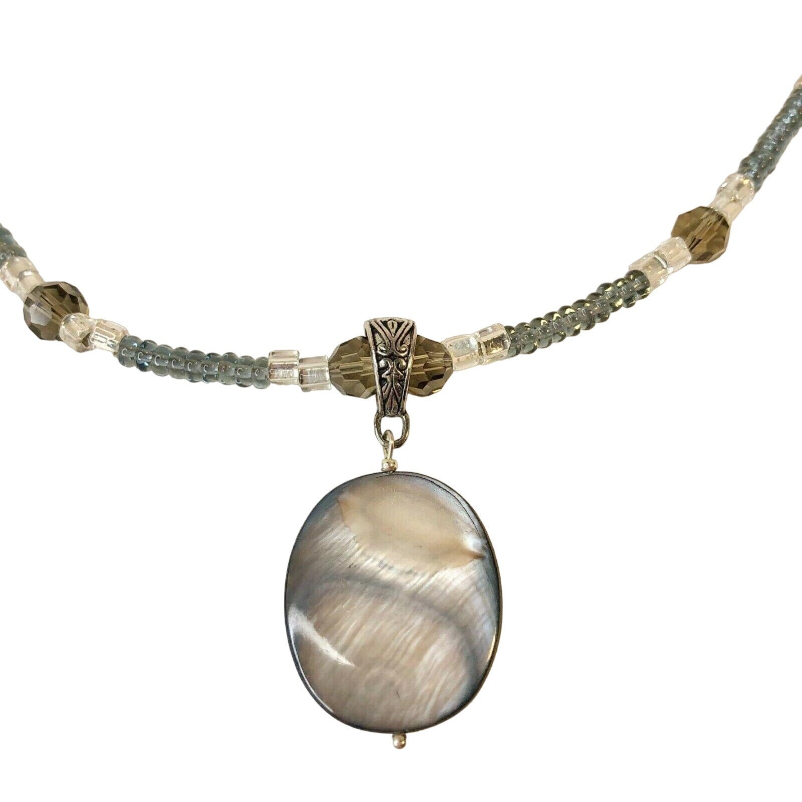 Handcrafted Beaded Necklace Blue Stone Pendant - This handcrafted pendant necklace has a very interesting swirly dark blue stone bead. You have to check the photos to see how beautiful it is.