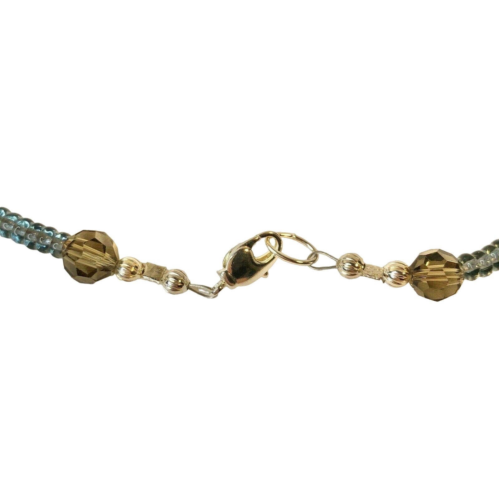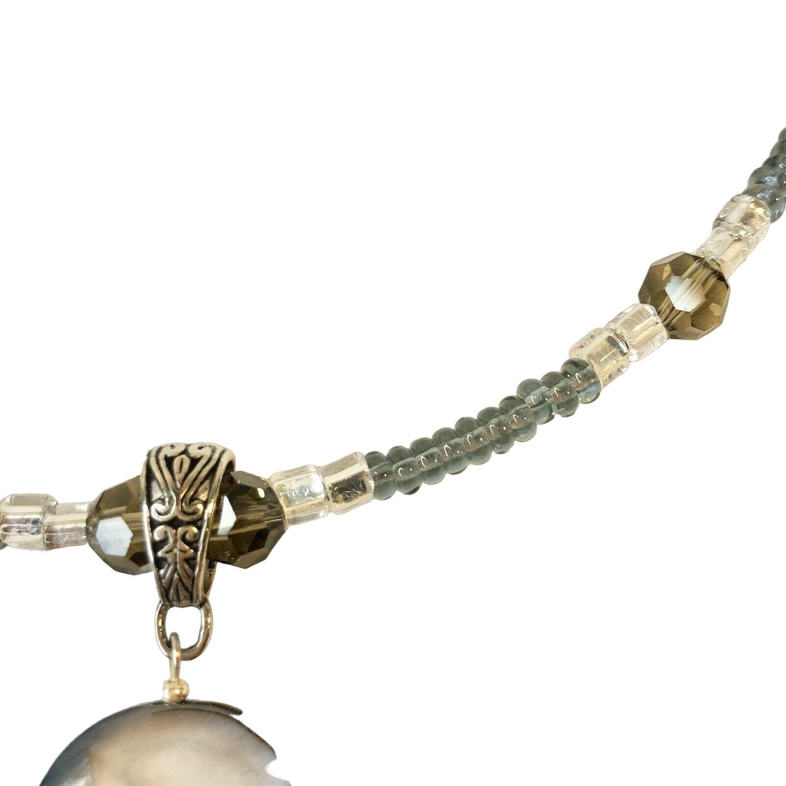 Handcrafted Beaded Necklace Blue Stone Pendant with Beads Gorgeous Jewelry NEW