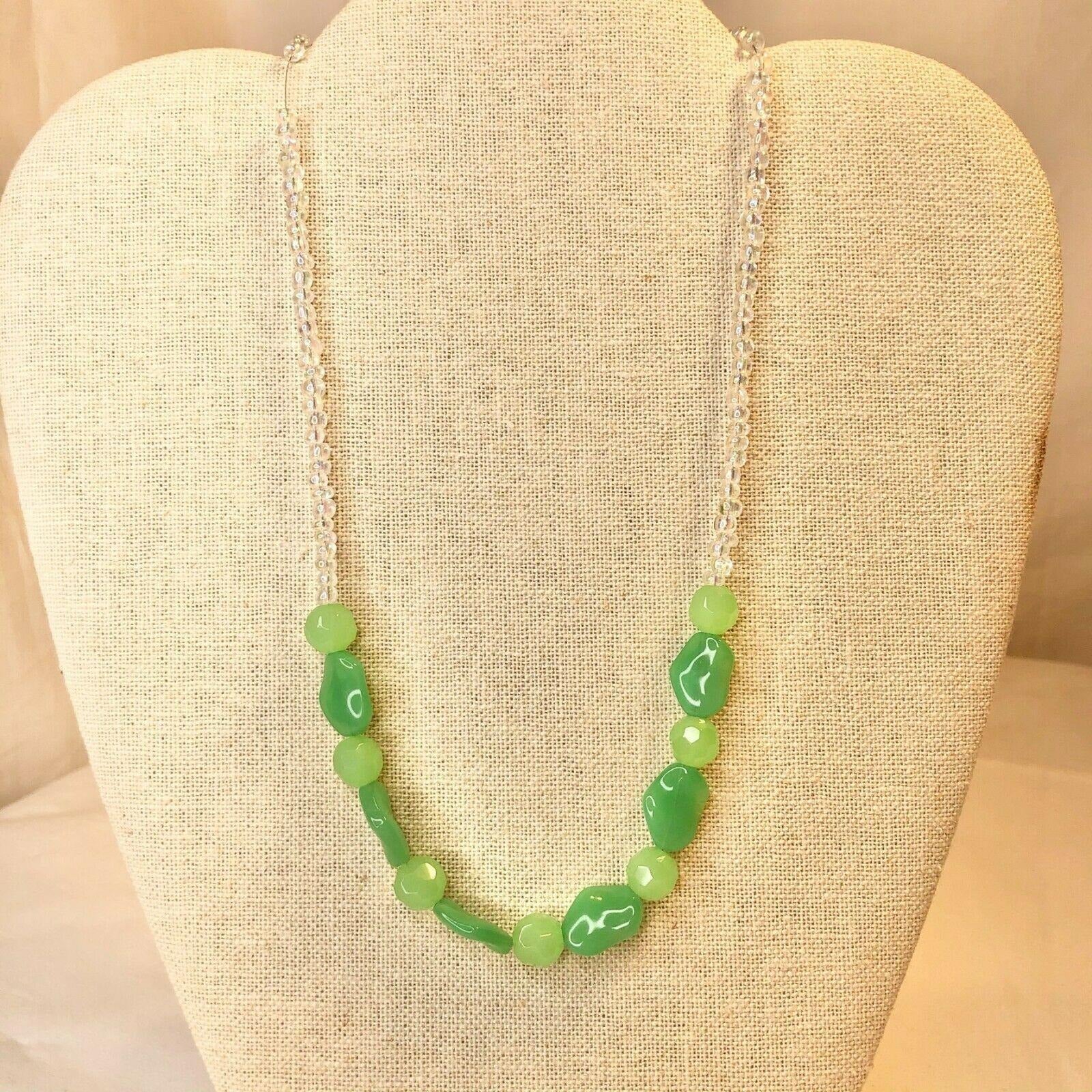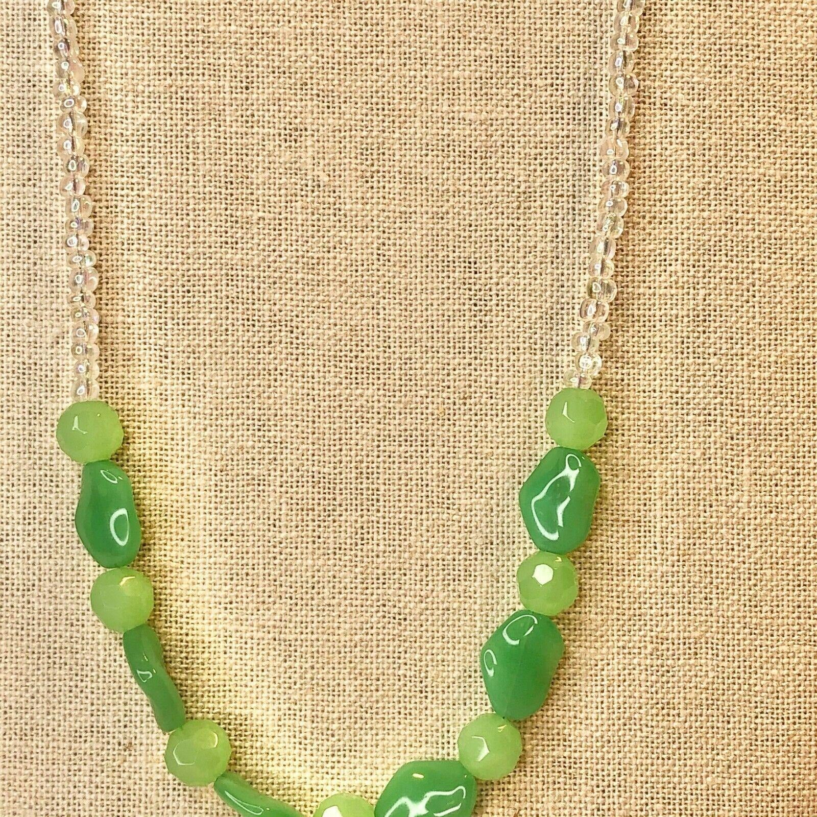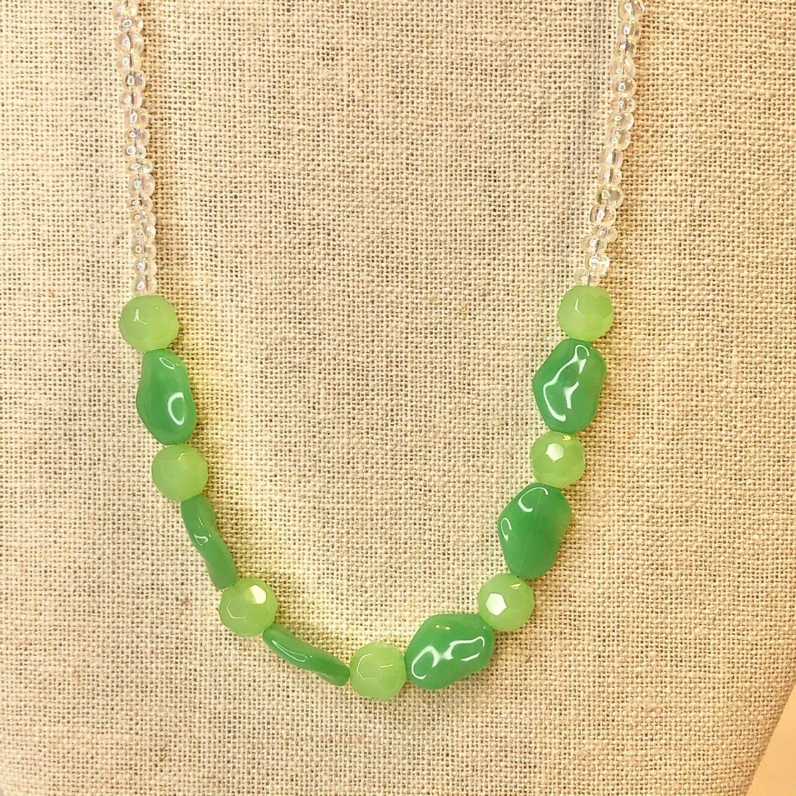 Handcrafted Beaded Necklace Green & Clear Beads Pop Spring Jewelry NEW