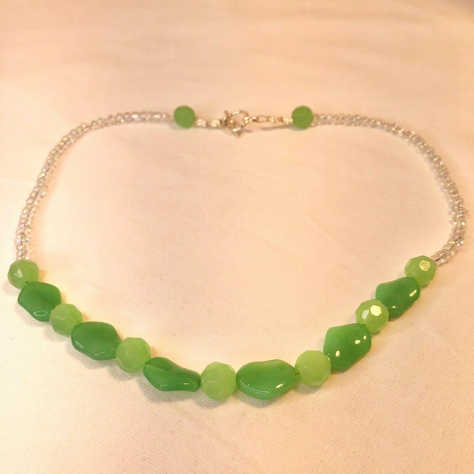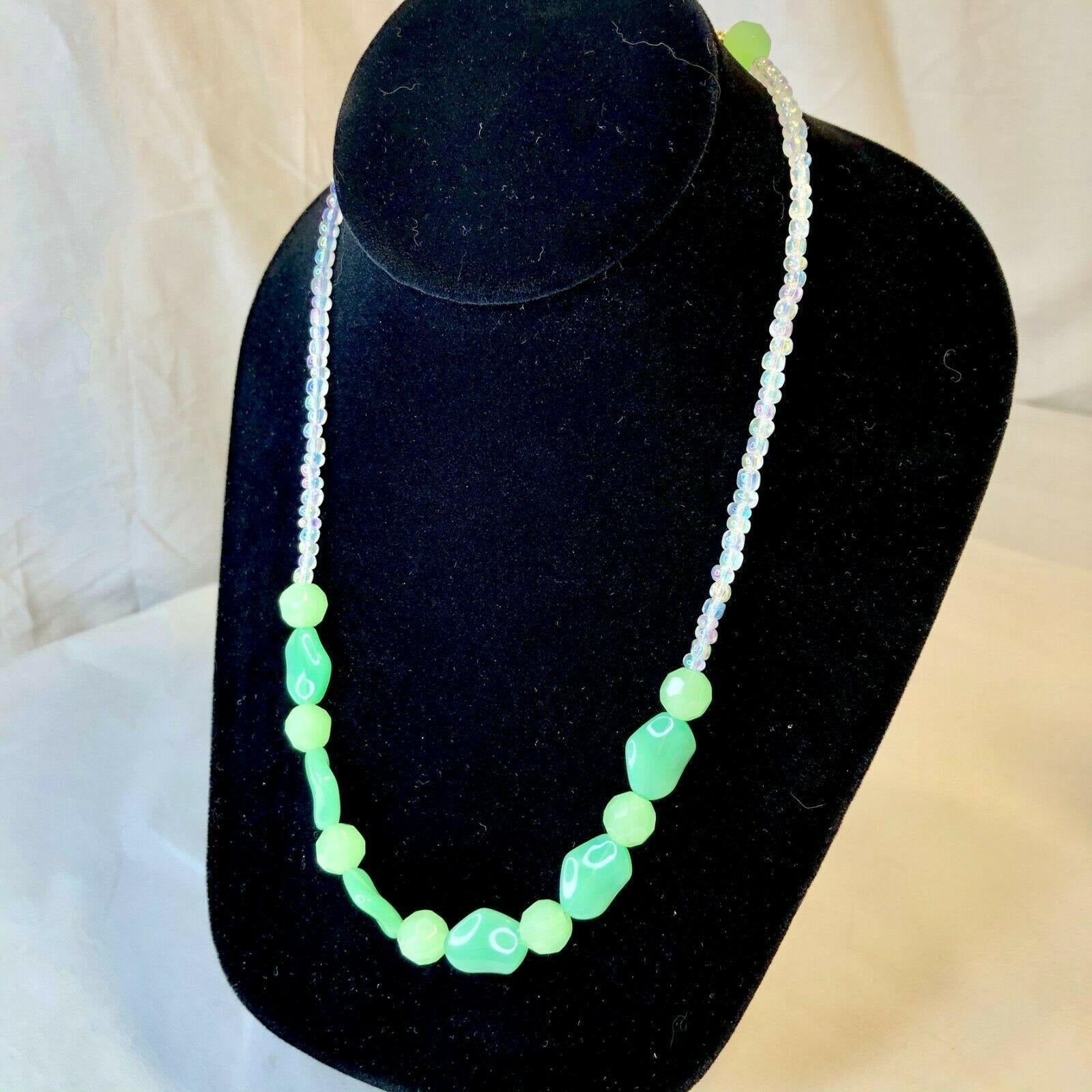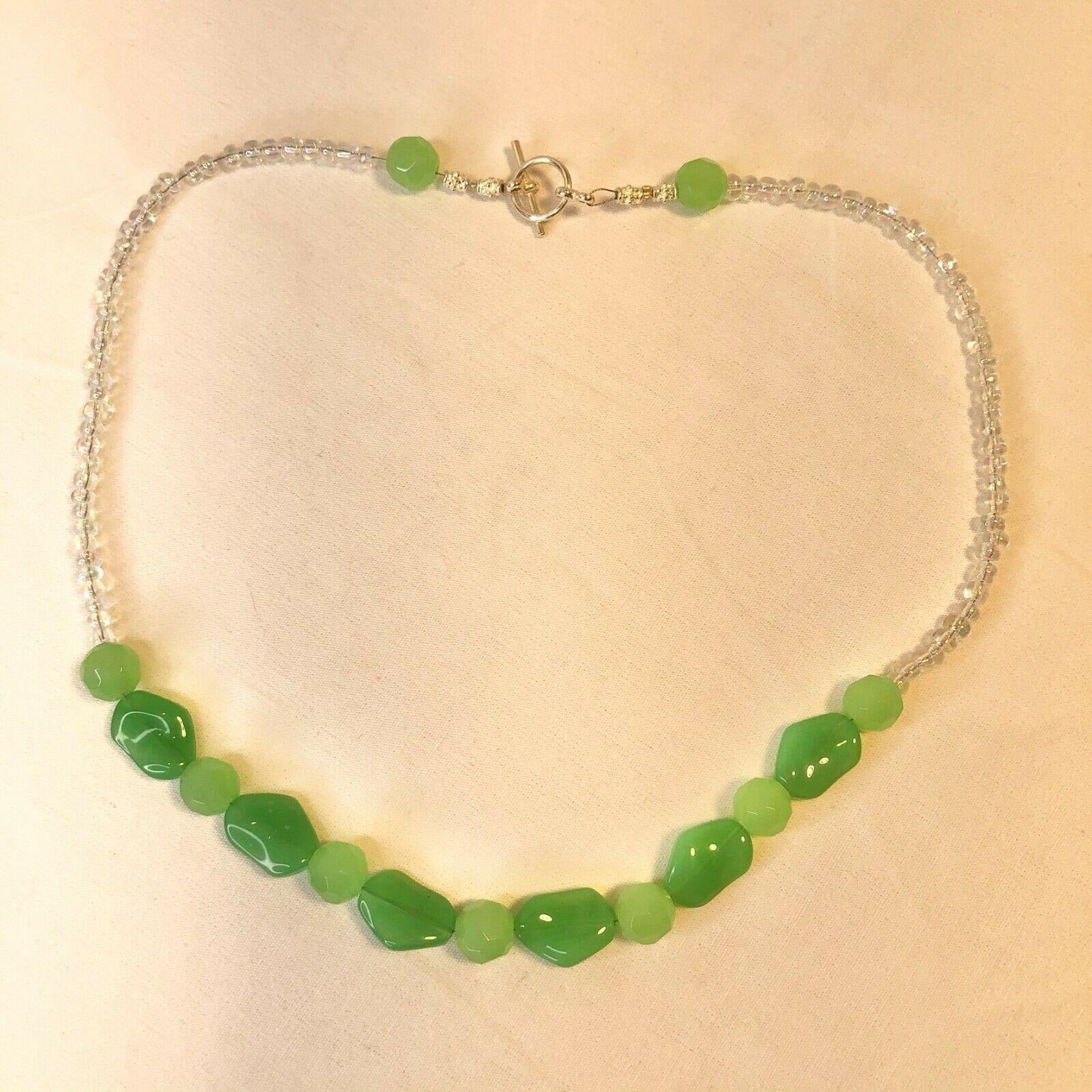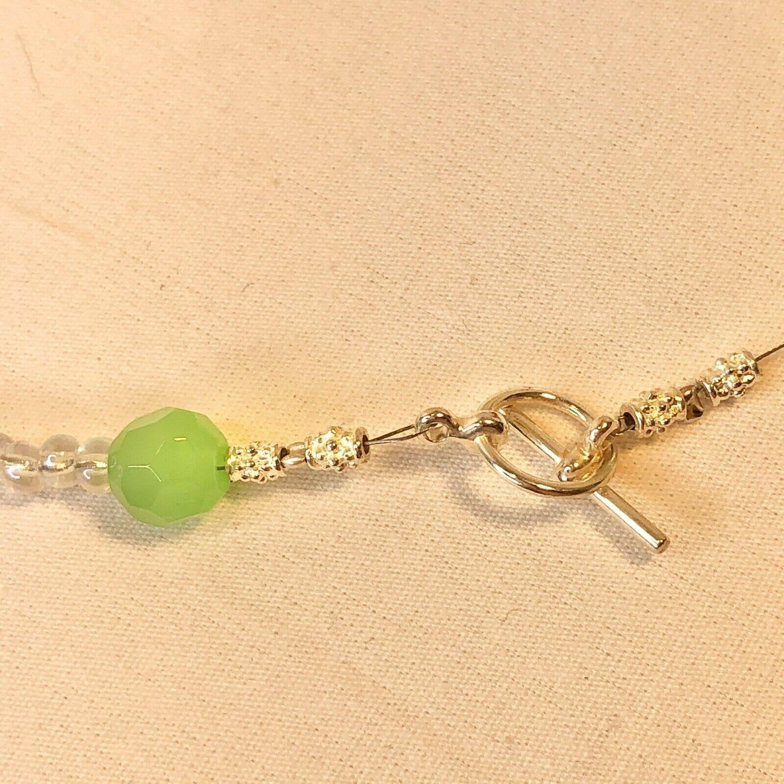 Handcrafted Beaded Necklace Green & Clear Beads Pop Spring Jewelry NEW