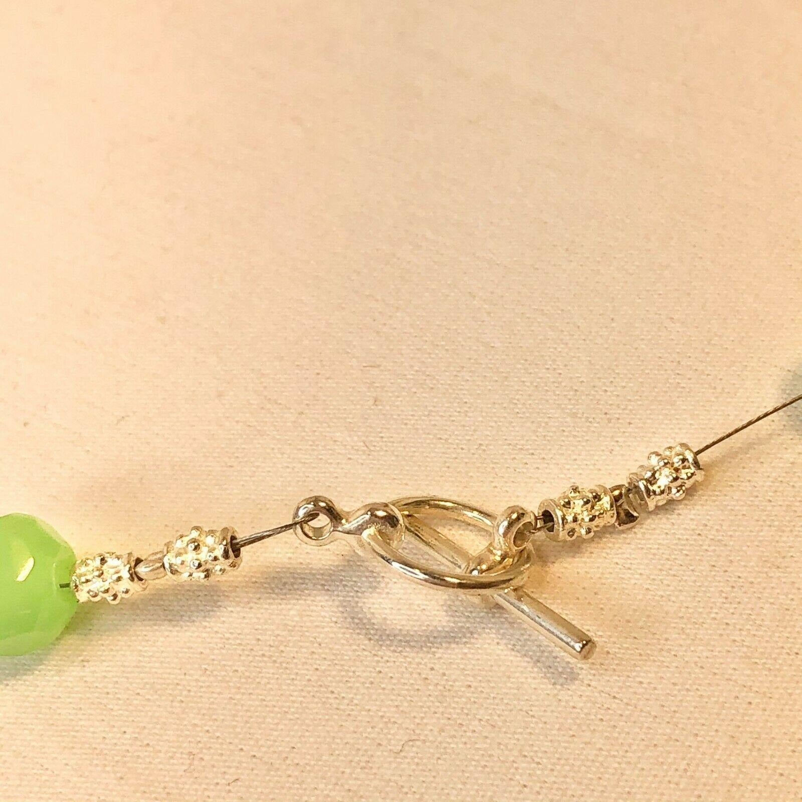 The green pops in this handcrafted glass bead necklace bringing to mind spring!