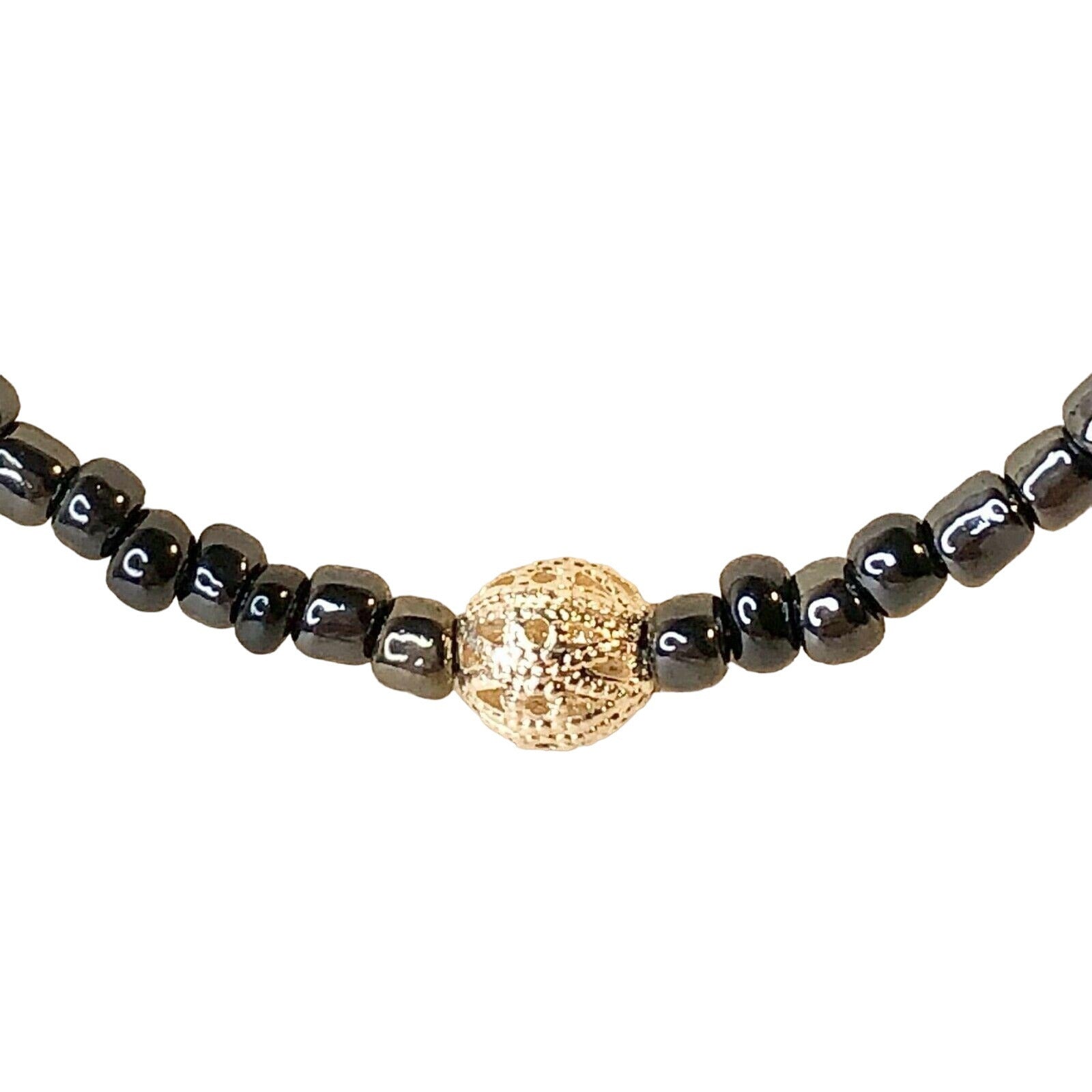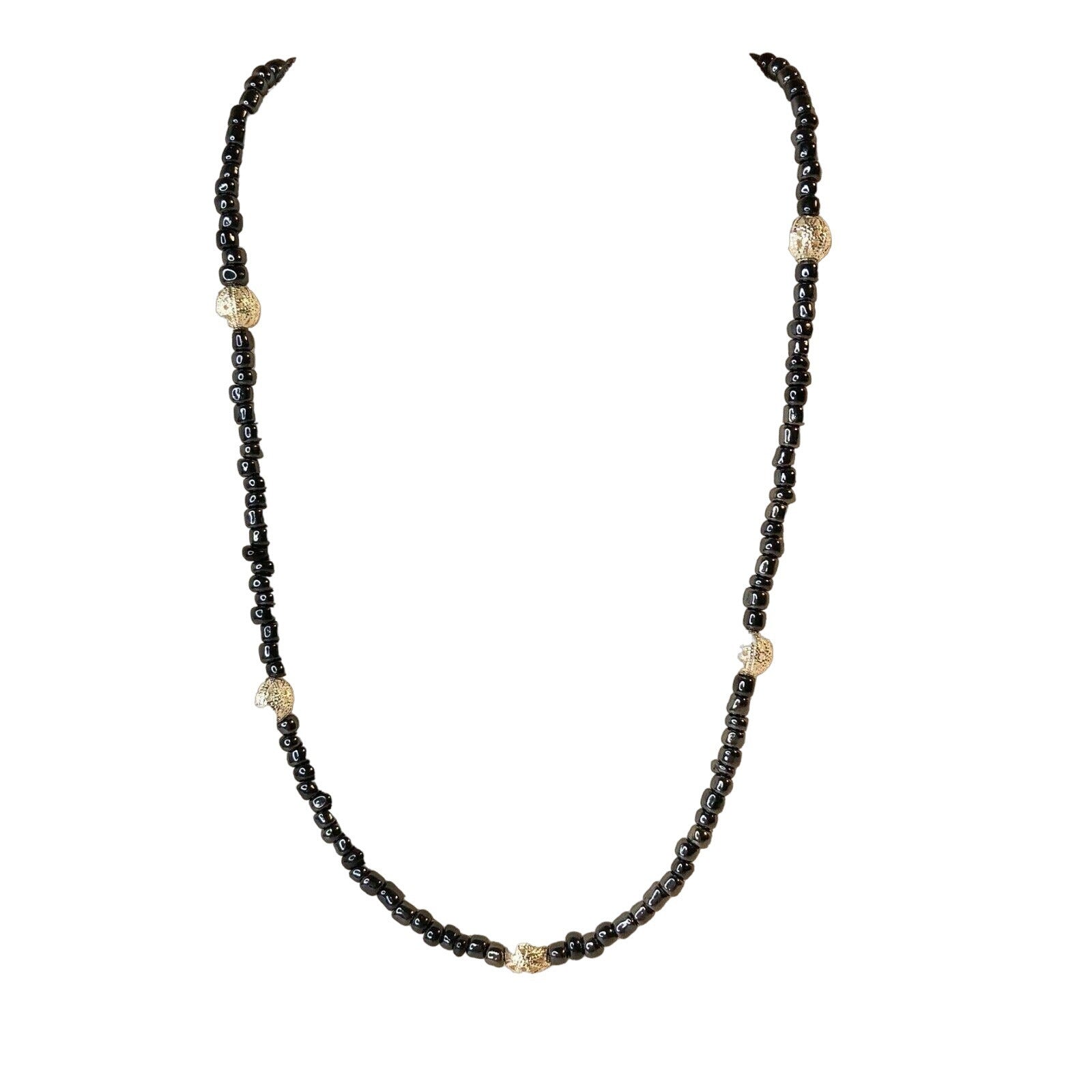 Handcrafted Beaded Necklace Pewter Colored Beads with Silver Accent Beads - This simply elegant handcrafted bead necklace in pewter and silver would look great in anything from shorts to jeans to dressy!
